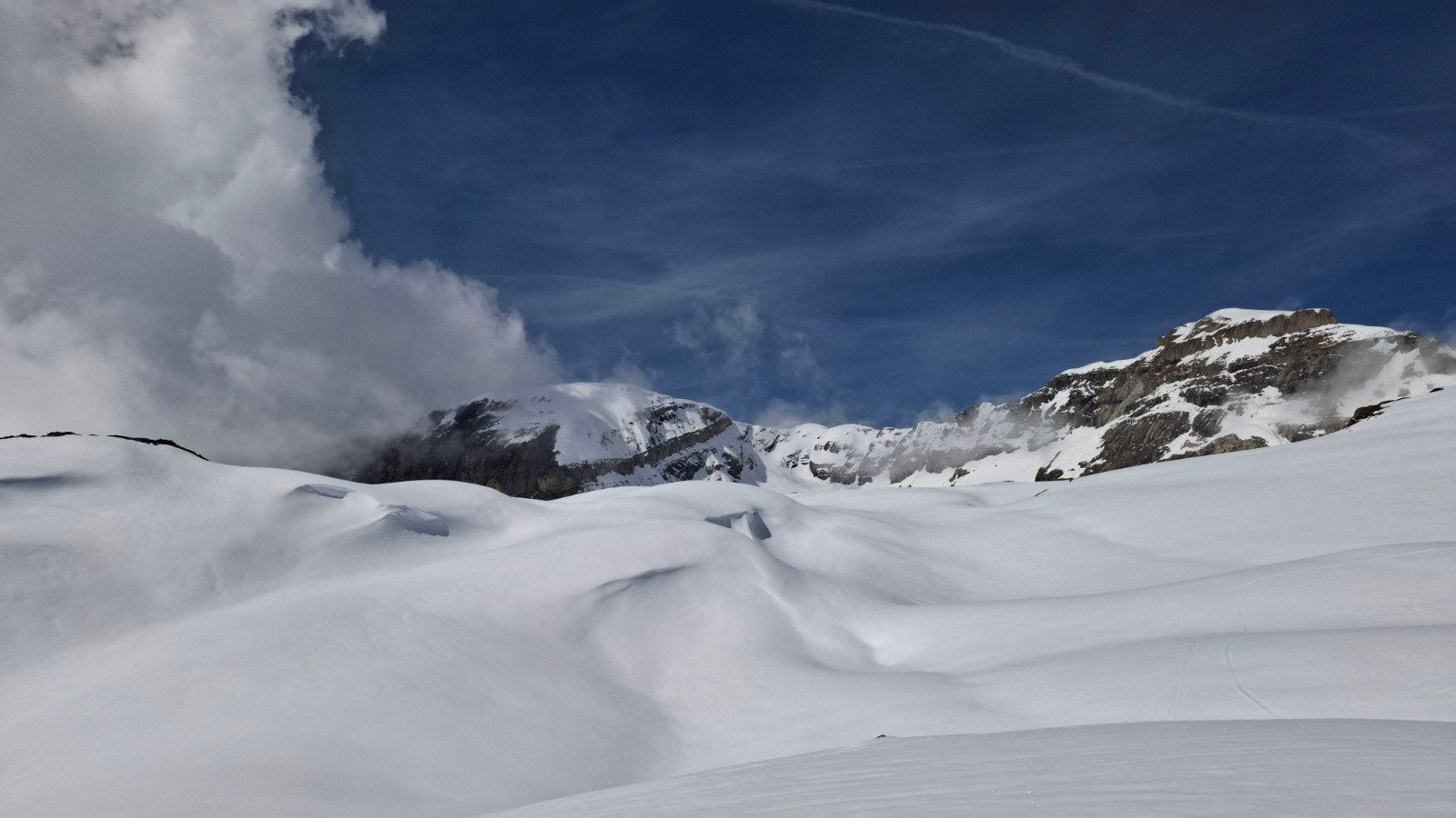Conditions nivo et activité avalancheuse : très bon regel, un peu de poudre > 2200m, transfo parfaite vers 12h00 côté désert de Platé, ras sur l'itinéraire, anciennes coulées avec gros blocs sous les barres dominant le sentier d'été chalets de Platé/ col du Colonney