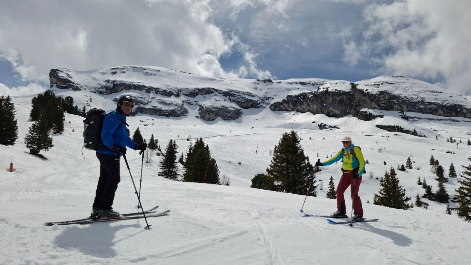 Conditions pour le ski : très bon regel, pistes béton à la montée à 8h30, qq cm de fraiche au dessus de 2200m ; 5cm de poudre sous la tête des Lindards puis moquette 5* dans le vallon de Platé, pistes parfaitement revenues