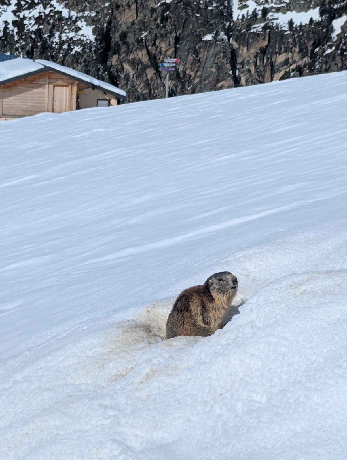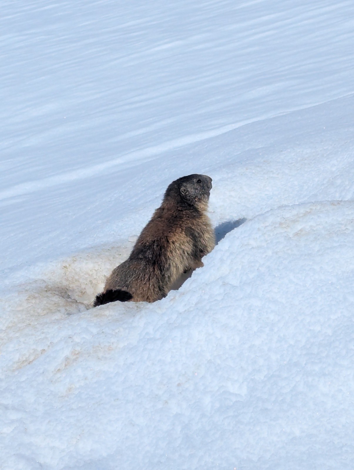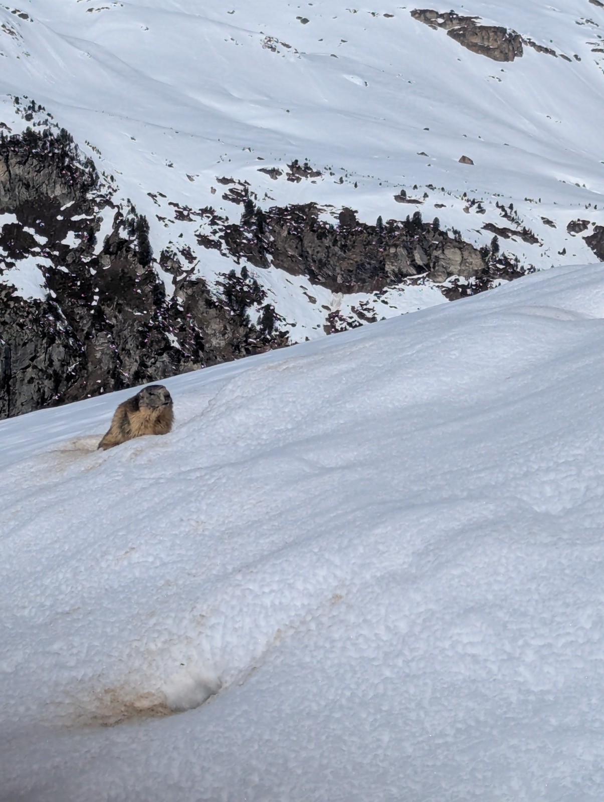 Les marmottes sont ressorties, ainsi que les bouquetins et chamois (tribus rencontrées au col du barbier la semaine dernière avant les précipitations). On peut les voir en conservant un environnement calme, ils sont curieux !