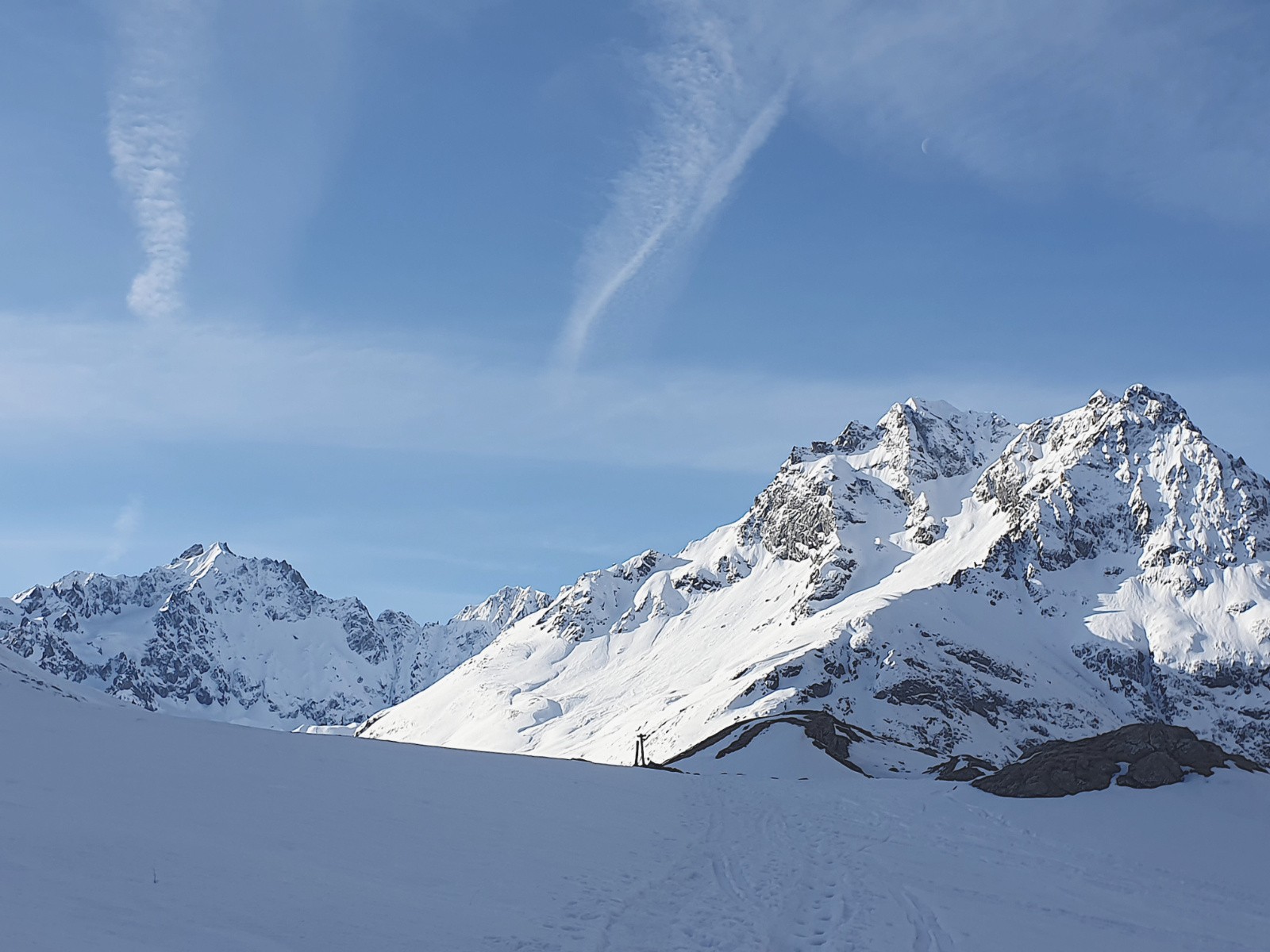 Météo/températures : Doux, sans vent, Iso 0° vers 2500m, grand beau puis petit voile de cirrus puis grand beau dans l'après-midi.