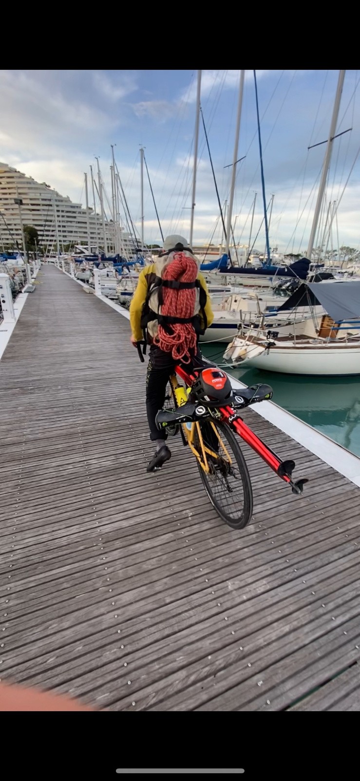 Départ à 5h pour un tour en mer à la voile (peu de vent) - départ du port à vélo jusqu'à saint jeannet - Grande voie (Arrête sud) - Vélo Saint jeannet --> pont du countet (durée 5h)