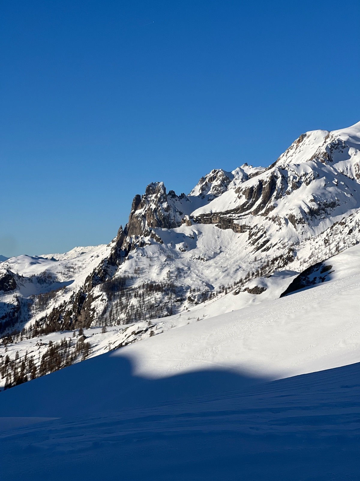Montée tranquille en sud, j'hésite avec la face nord de la tête des lauzieres et le joli petit couloir mais je maintiens ma position, pas de pente aujourd'hui 😝