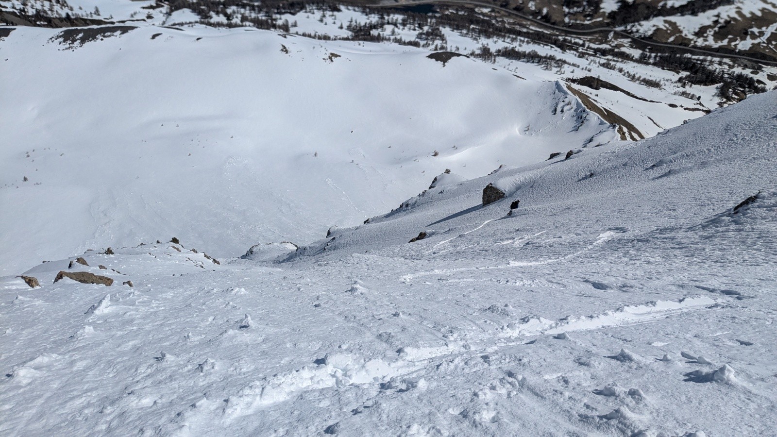 Partis avec Yoann pour le rideau, on signe un demi tour dans la traversée pour accéder à la pente principale, quelques accus en place pas énorme et visible mais vu l'exposition je n'accepte aucun doute et préfère mettre un véto.