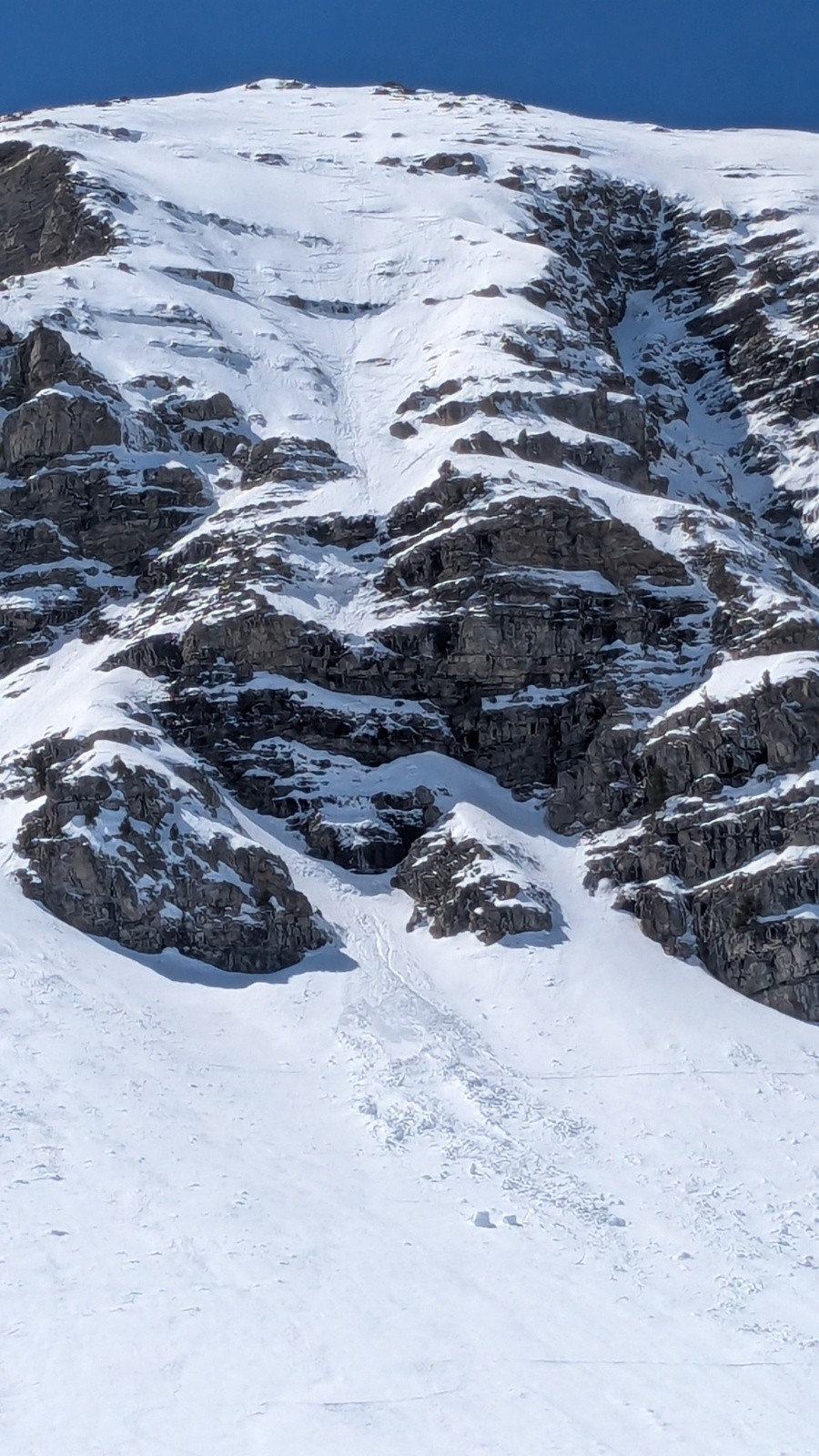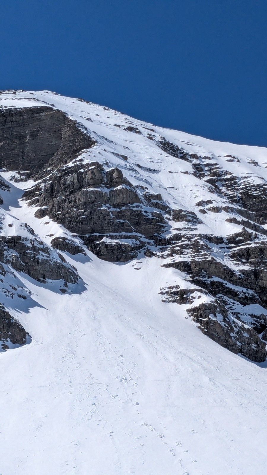 Descente dans le rideau dans une neige agréable, sacrée ambiance dans cette face! Pour un 5.1 c'est solide faut tenir sur ses jambes et rester concentré quand même. Alors c'est pas très long mais c'est exposé et soutenu. Magnifique!