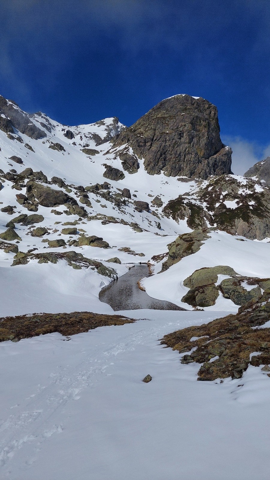 Je visais la Grande Lauziere, mais mon timing etait trop serré. Apres 1h de portage, je me dis que je stopperai vers 11h max, car ensuite je dois etre au parking pour 13h et y a presque 1h de rando pedestre, voir moins si je peux descendre vers 1700m. Arrivé au lac vers 9h, je gagne le col de pra ou ca commence a souffler par rafale. Mais il fait plutot frais. La neige reste dure sur toute la montée. Arrivée dvt la Grande Lauziere, les couloirs Nord en neige surement trop beton et trop pentu ne me dise rien. Je bascule coté pente Est de la Grande Lance/ Montée OK mais parfois les 5 / 10 de poudre alourdie tombée la veille zippe sur le fond dure... mais ca monte bien. Arrivé vers 2600m environ je stoppe, pic nic et redescend coté Sud et Est ou la neige est lisse mais encore tres ferme/carton doux, mais pas du tout decaillée. Puis redescente tranquille jusqu au lac, sans trop d encombre, meme si à l aplomb du lac, 2 petites zones pierreuses doivent se negocier. Arrivé en bordure du lac sans soucis, leger dechaussage pour rebasculer coté Gresivaudan et apres en tirant tout a gauche apres etre passé sous le pipeline, on peut descendre jusqu a 1700m/1600m pour remettre les baskets. Au total, plus frais que prevu, plus de vent que prevu, neige pas geniale, mais belle epaisseur apres le lac du crozet, portage peut etre un peu long, (ratio 600m a pied et 600/700 en ski) mais tres content quand meme , il faisait grand beau et sortie agreable en mode RTT du matin - Le salut a Jean Luc qui a j espere pu gagner la Croix et l autre randonneur qui voulait ralier le habert D Aiguebelle.
