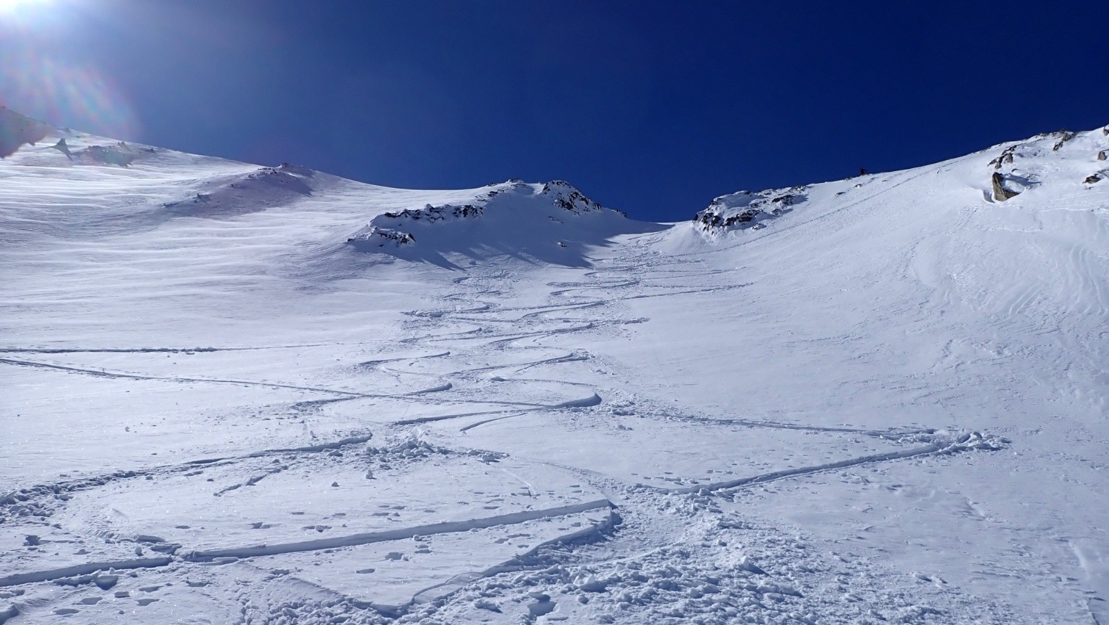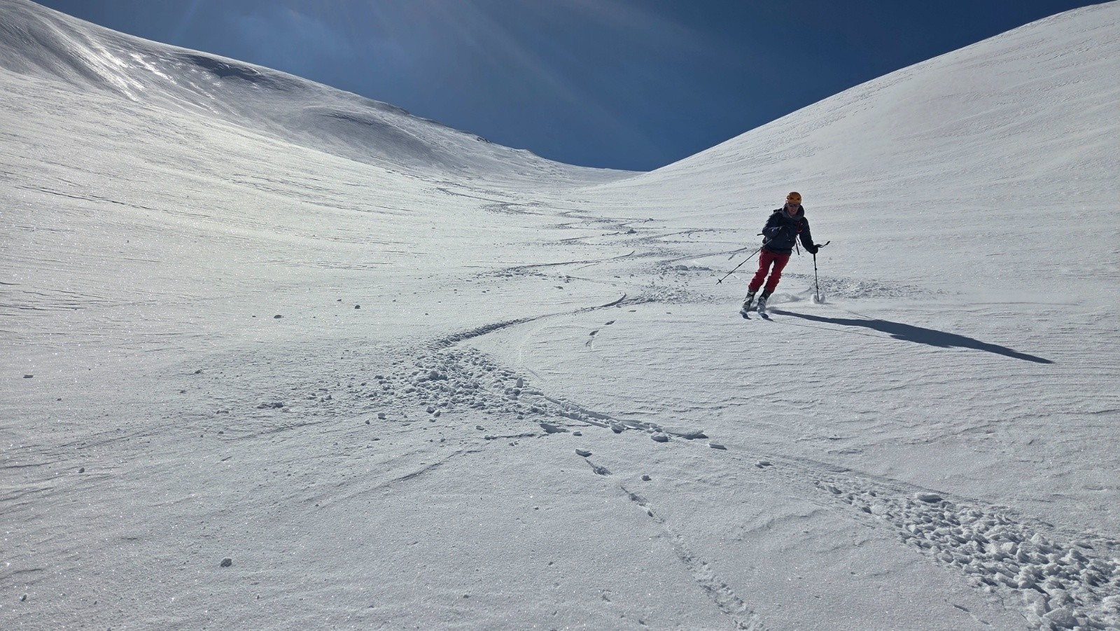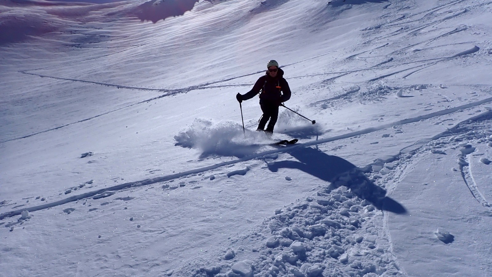 Conditions pour le ski : Poudre sur fond dur ou pas du sommet au goulet, puis dur à 11h en N, mais decaillee parfait en SE et sous 2200 m