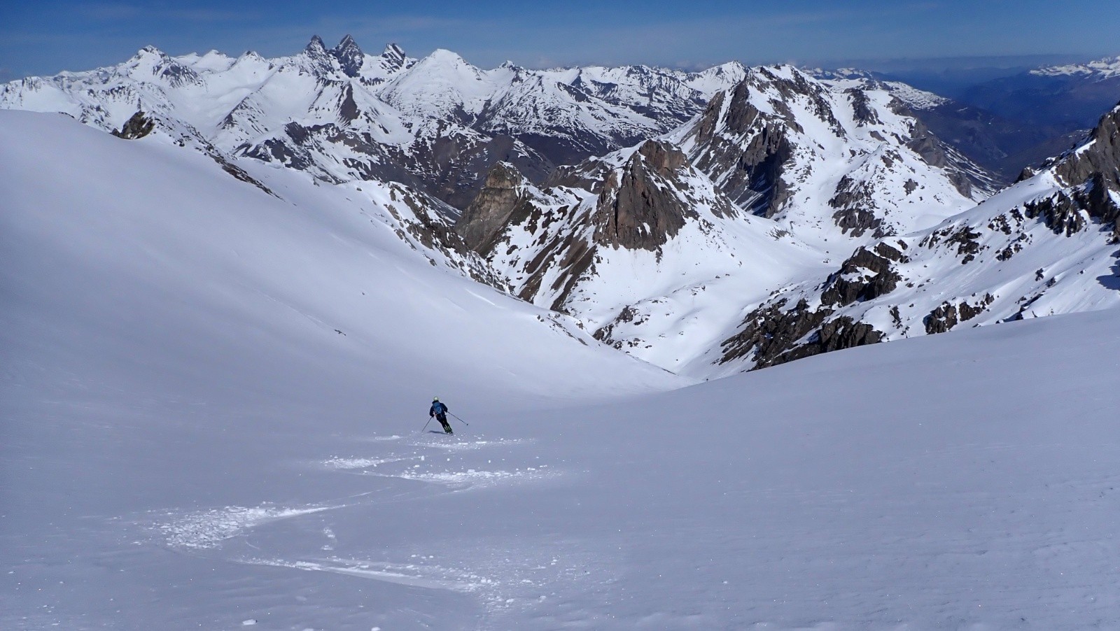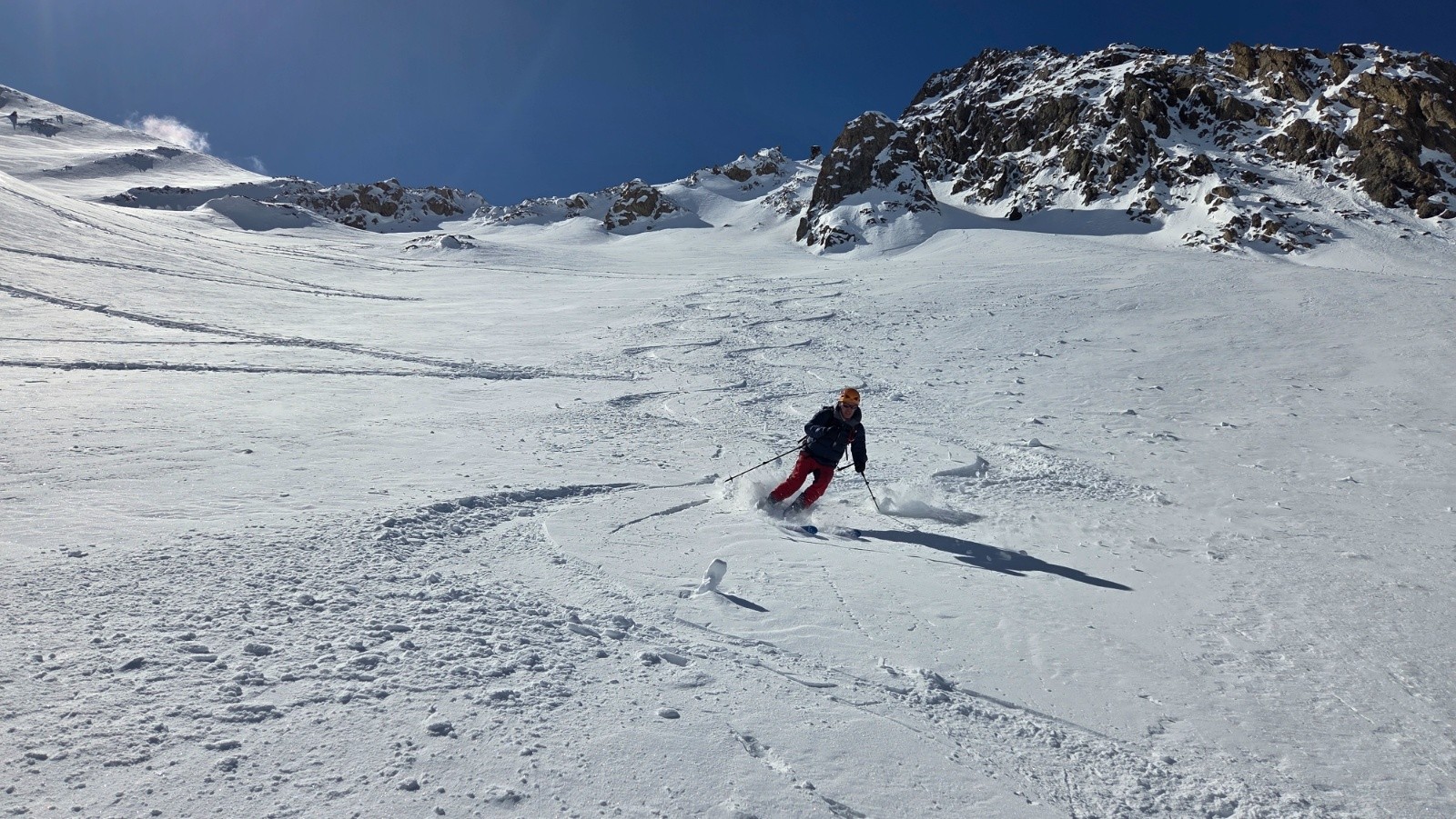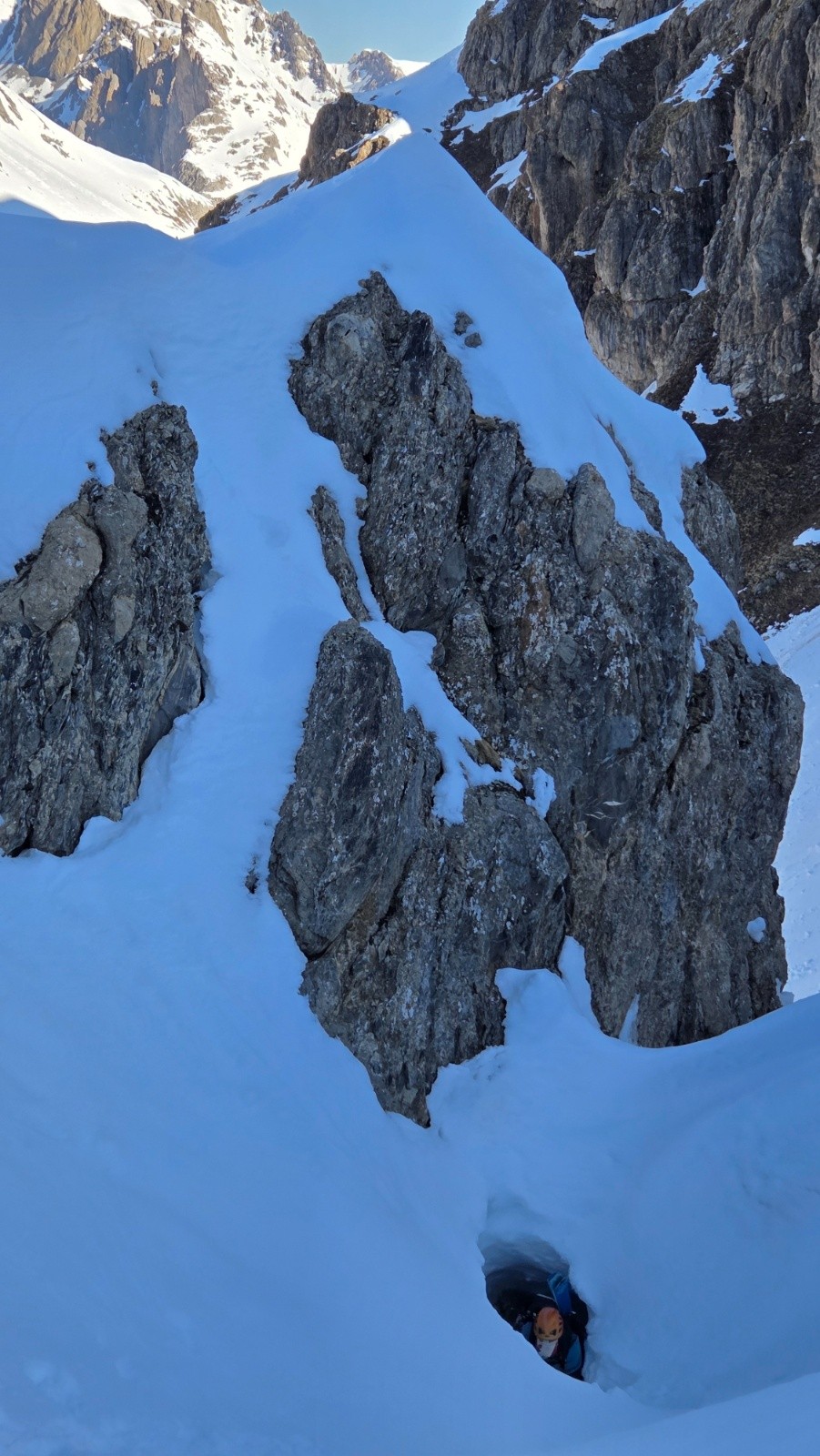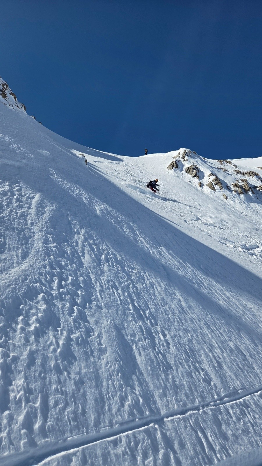 Conditions pour le ski : Poudre sur fond dur ou pas du sommet au goulet, puis dur à 11h en N, mais decaillee parfait en SE et sous 2200 m