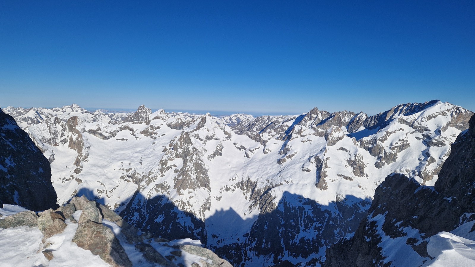 Itinéraire suivi : refuge Adèle Planchard Sommet col des neiges vallon de casse déserte - refuge de l'Alpe. L'accès à l'arête passe bien par la normale. Énorme panorama en haut !