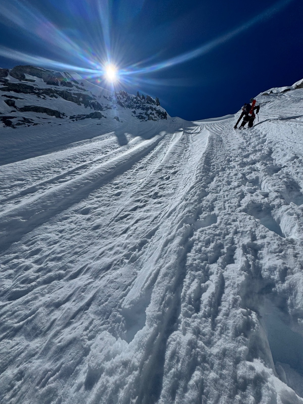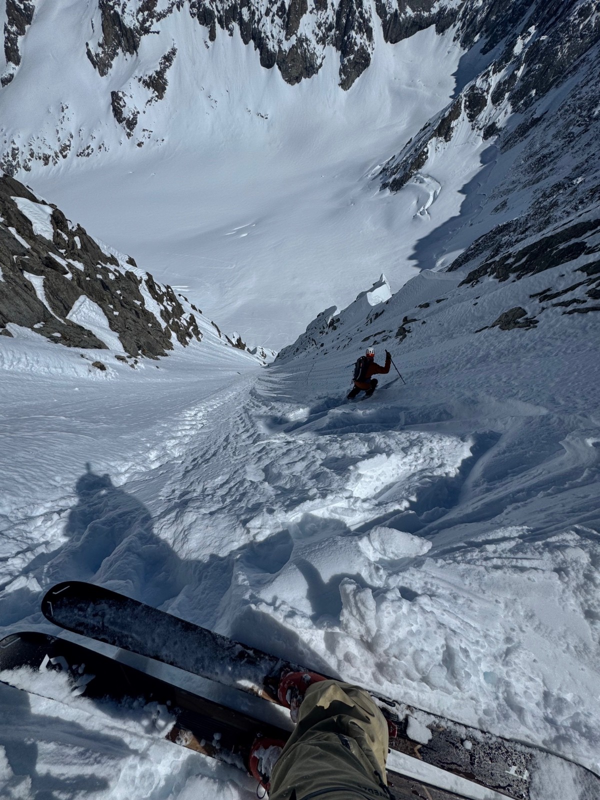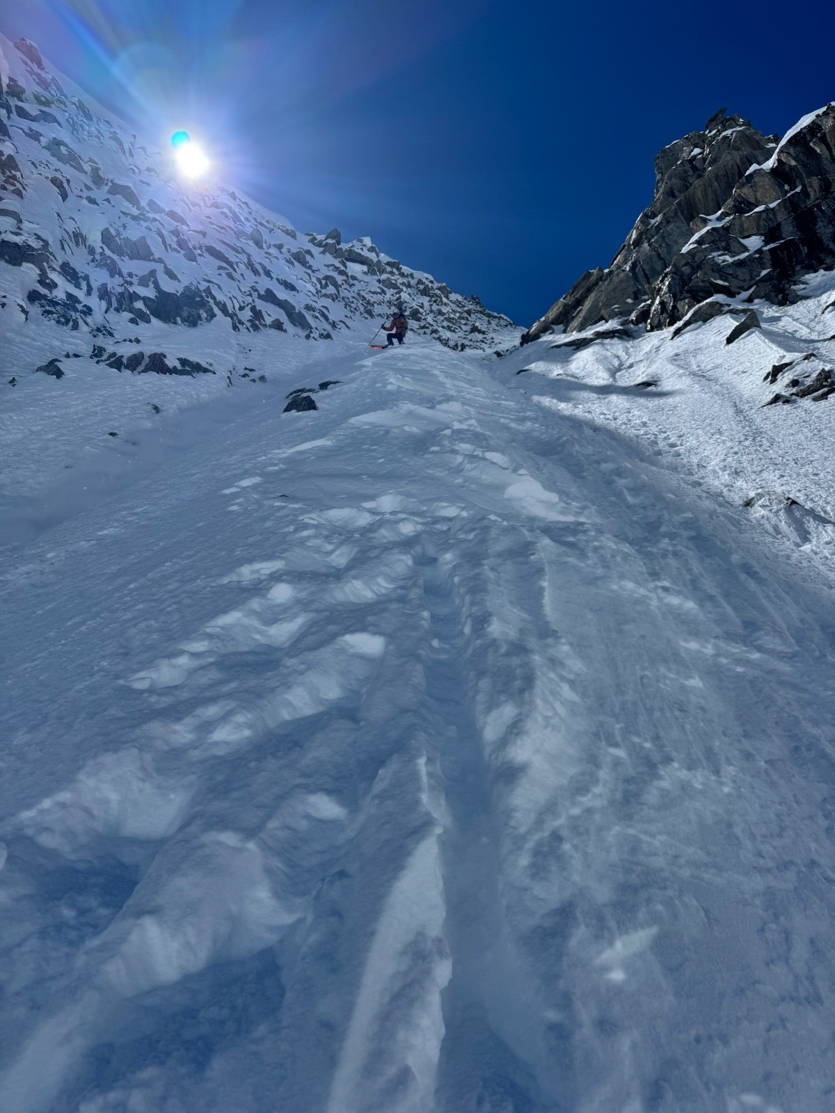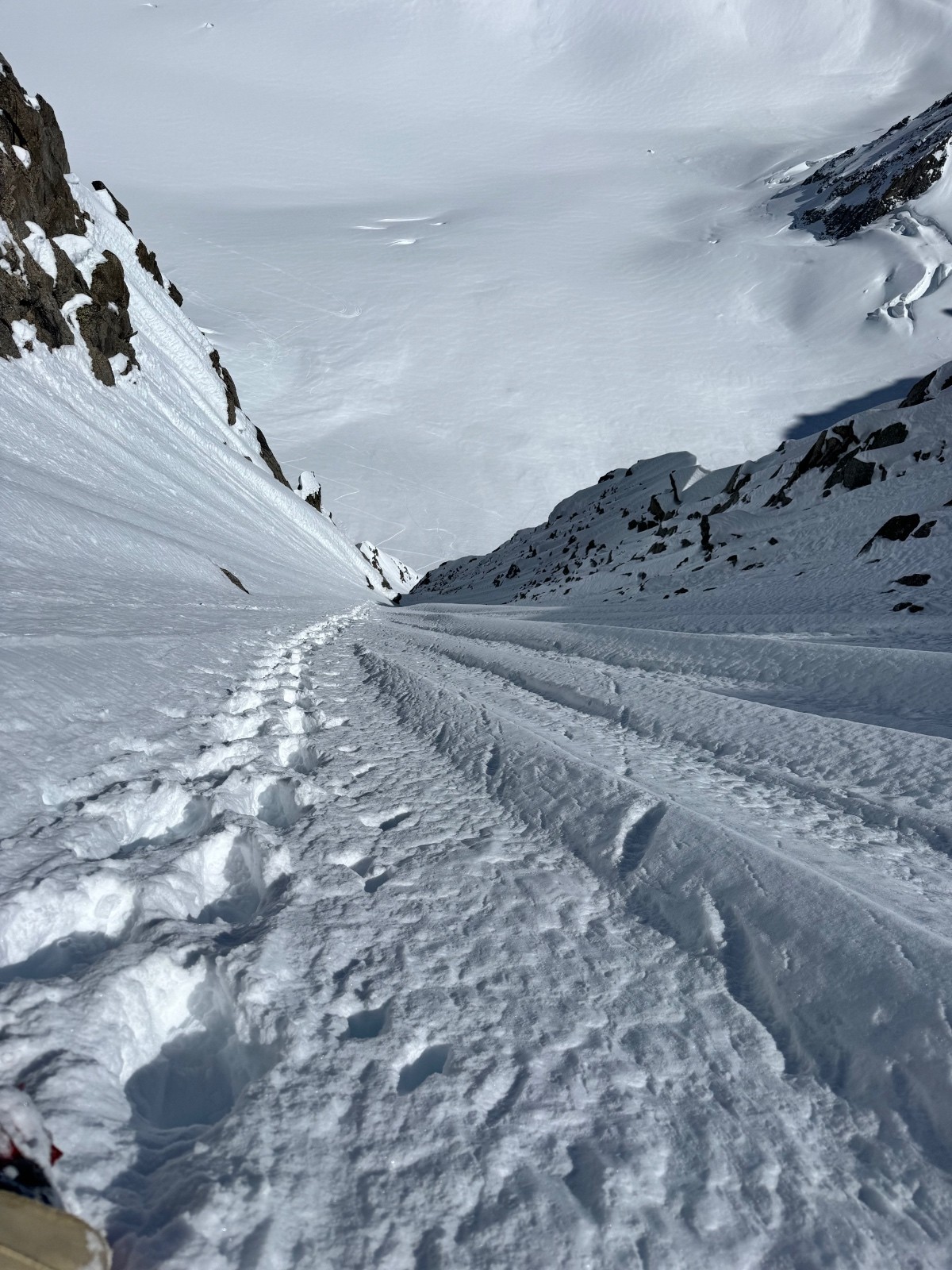 Météo/températures : Beau, pas de vent, très chaud. Gros réchauffement dans les faces. Ça se joue à rien sur l’orientation au soleil pour que ça passe de croûte à poudre 5* ! Il faut viser