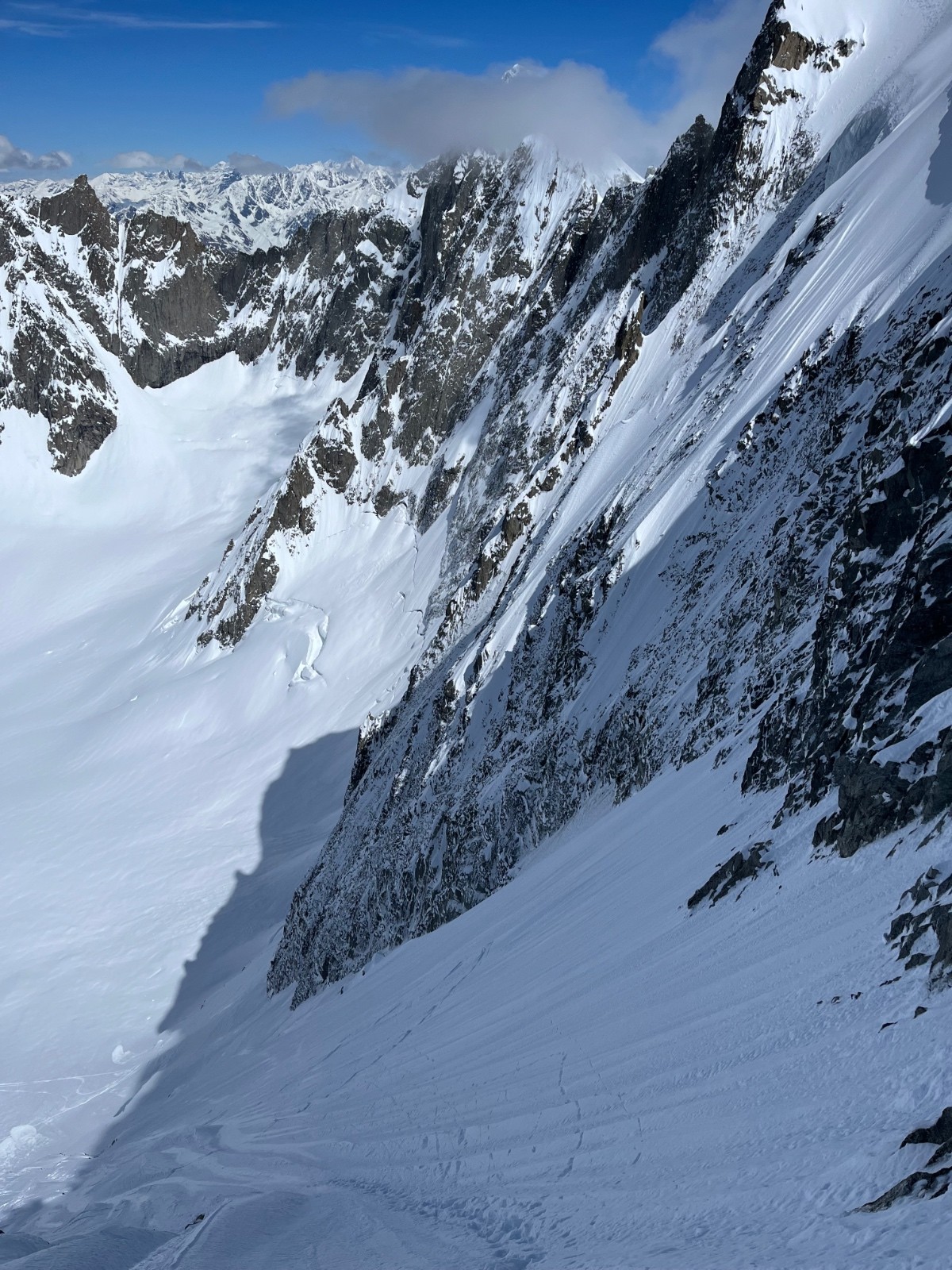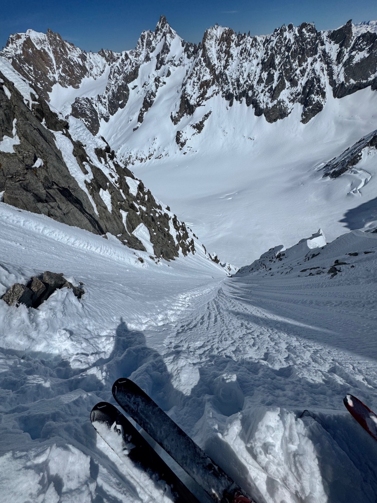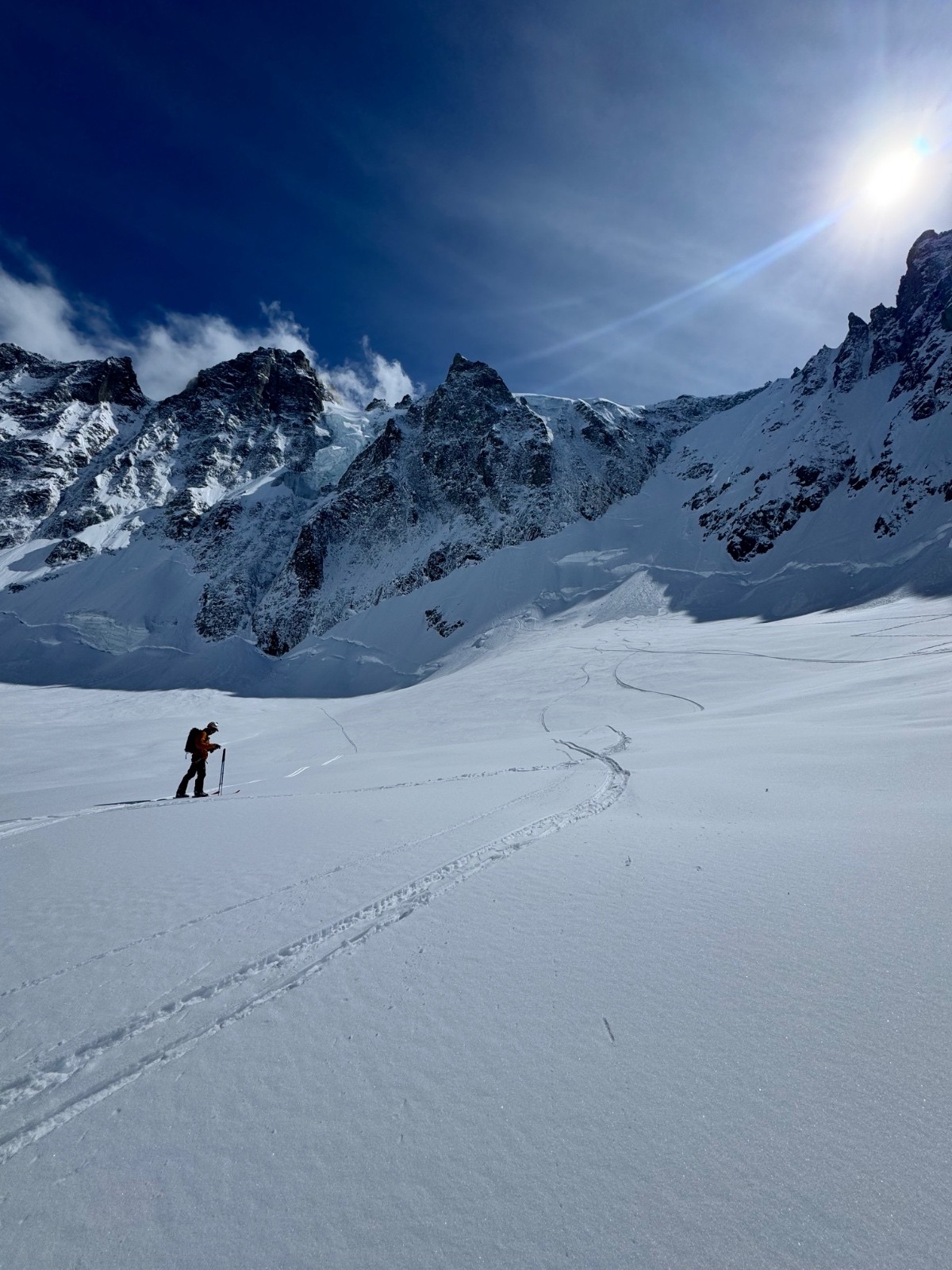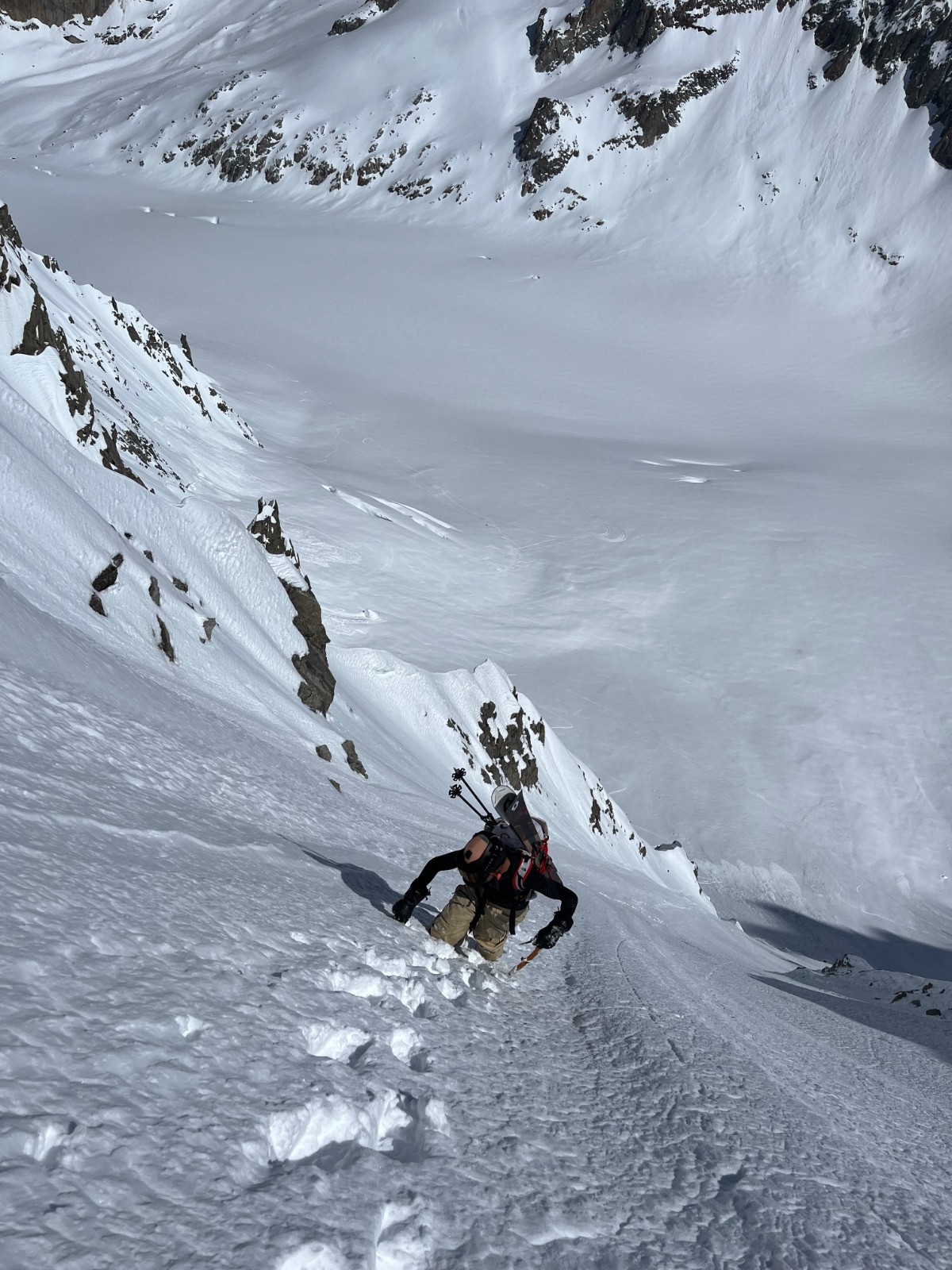 Météo/températures : Beau, pas de vent, très chaud. Gros réchauffement dans les faces. Ça se joue à rien sur l’orientation au soleil pour que ça passe de croûte à poudre 5* ! Il faut viser
