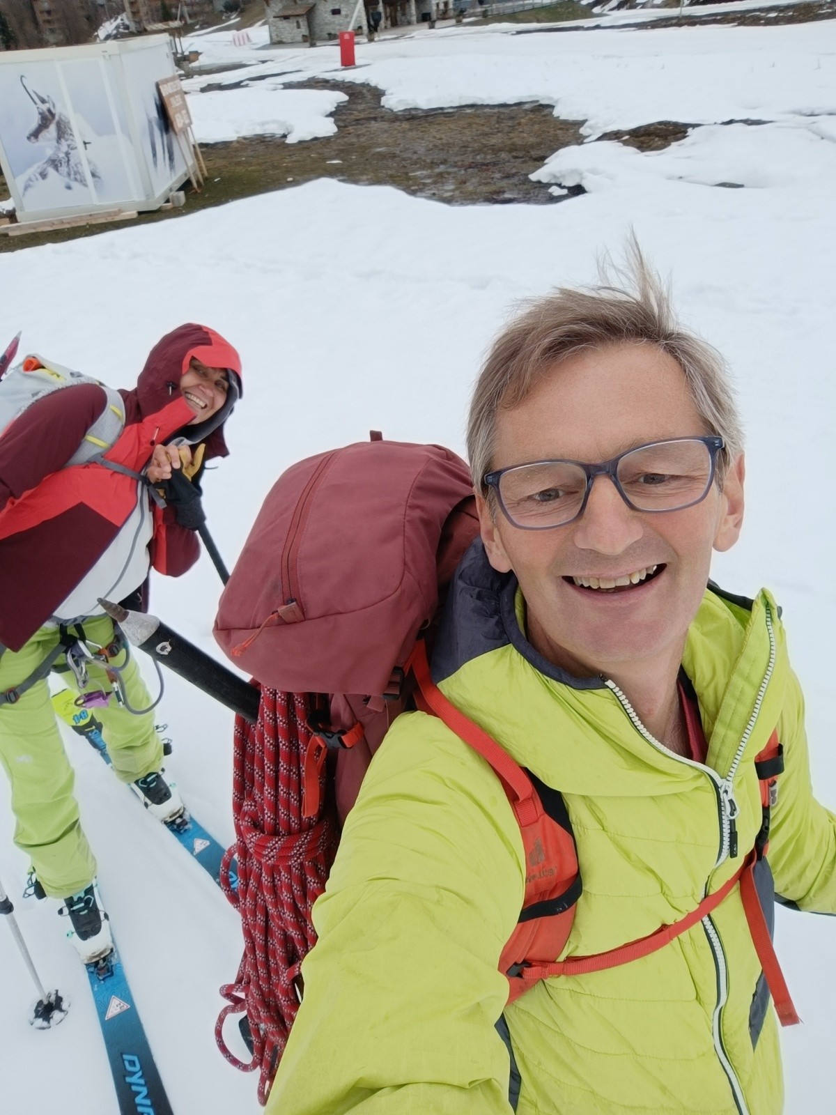La météo annonçait une bonne matinée ensoleillée... À 8h, il neigeait et les sommets bouchés... La neige a cessé de tomber mais aucun retour durable du beau temps prévu...