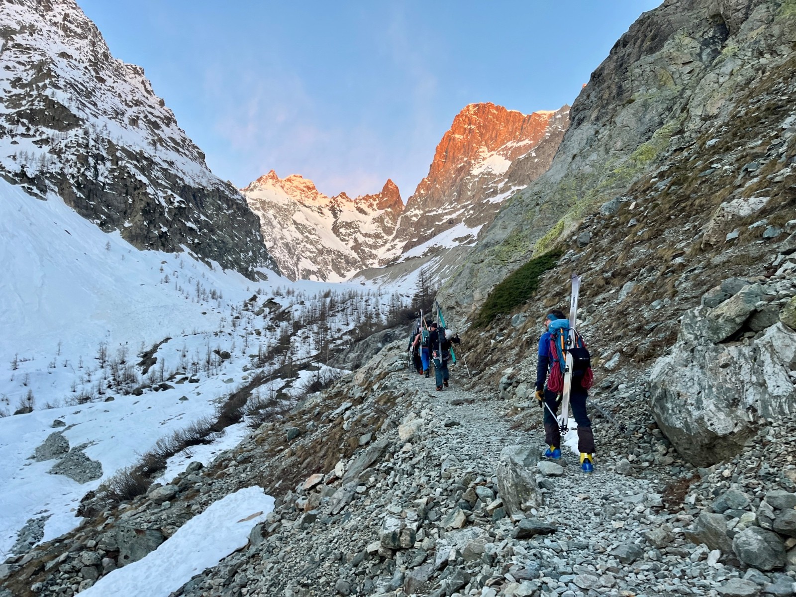 Altitude de chaussage/déchaussage : 1850 m (mais à pieds pour franchir le verrou du Glacier Blanc).