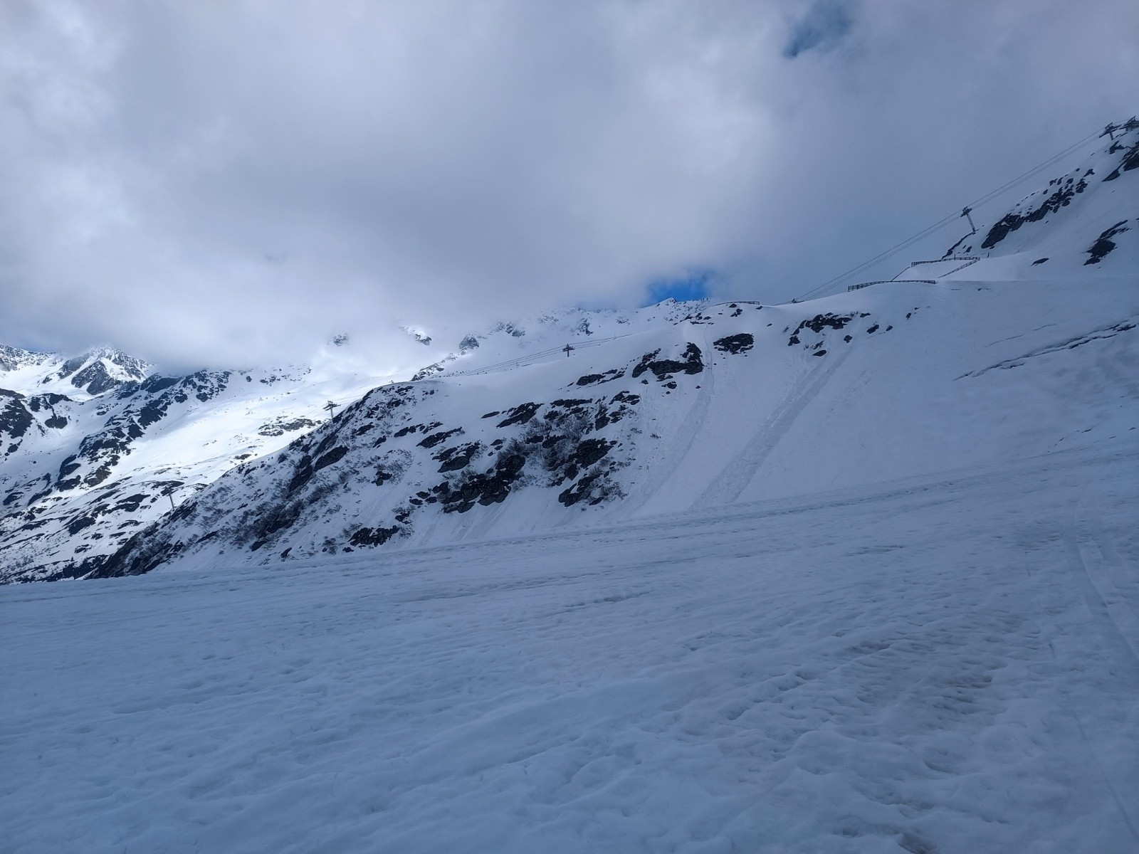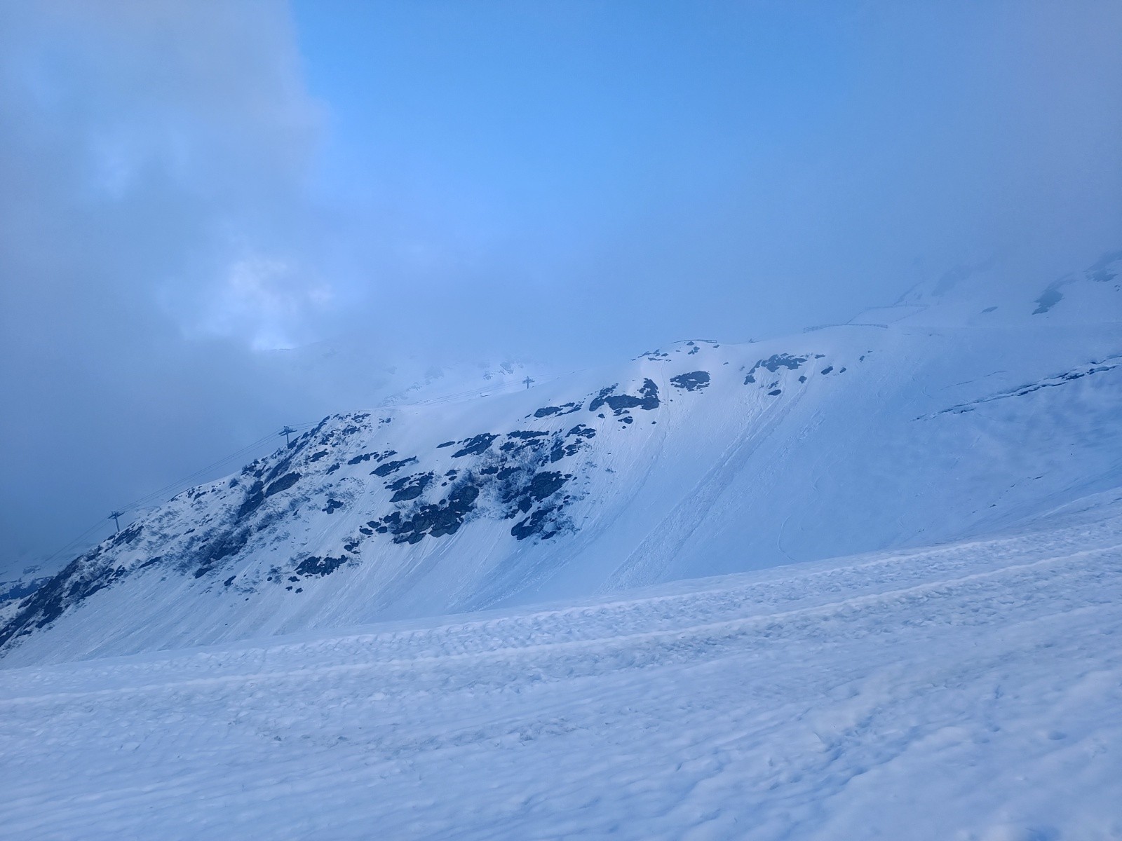 Conditions pour le ski : Plutôt bonne vue l'heure et les horaires, meilleure sur la seconde session, meilleure sur le bas car plus dense et on atteint l'ancienne couche de glace.