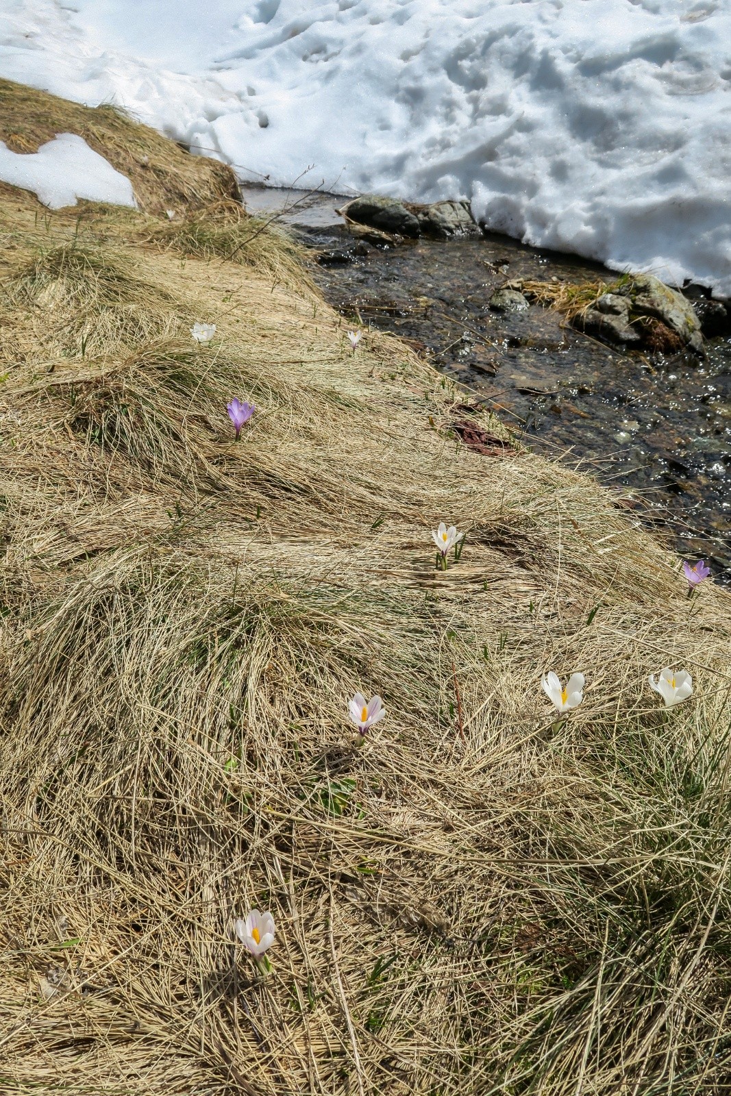 - Descente du col de la Pra et sous le lac : Neige commençant à coller sur le plat à 13h00.