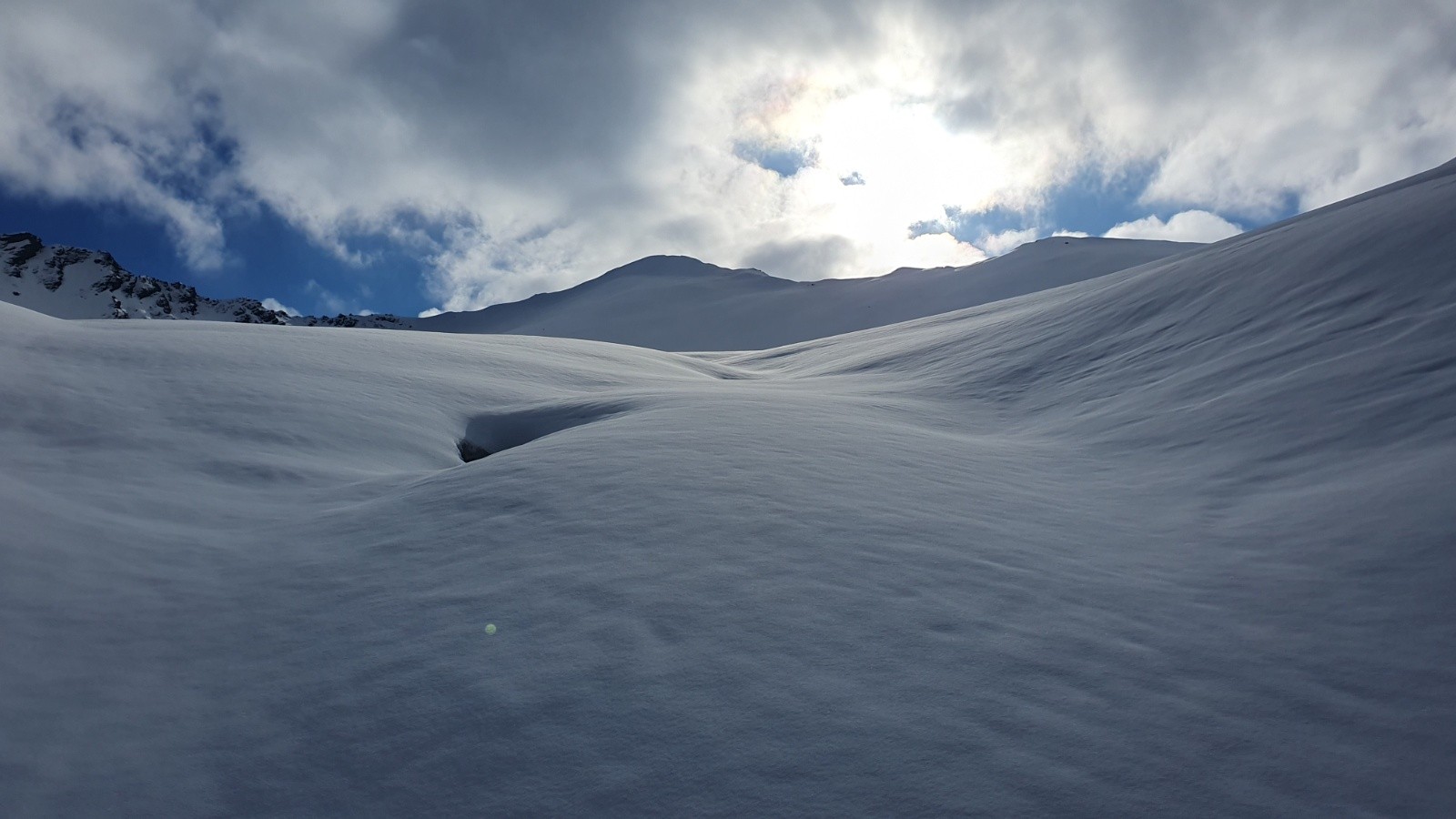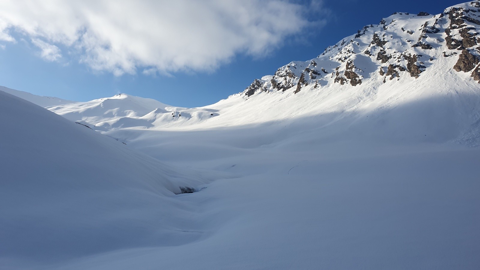 Itinéraire suivi : montée au petit Rochebrune (6h30-10h). Les nuages ont empéché un bon regel. La croûte ridicule au départ s'épaissit avec l'altitude. 1ere descente en sud ouest sur moquette top jusqu'à l'altitude où la croute de regel casse. On repeaute pour 2eme montée au petit Rochebrune. Jolie descente en petite poudre à 11h sur la facette ouest. On s'arrête à la descente sous le pic Lombard pour remonter au pic Lombard par les pentes sud vers 11h30: chaud!