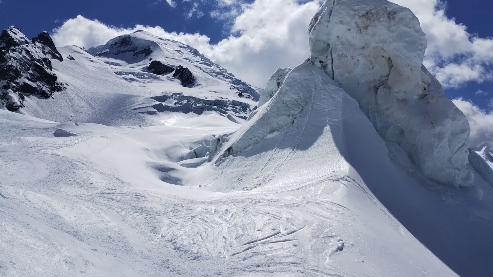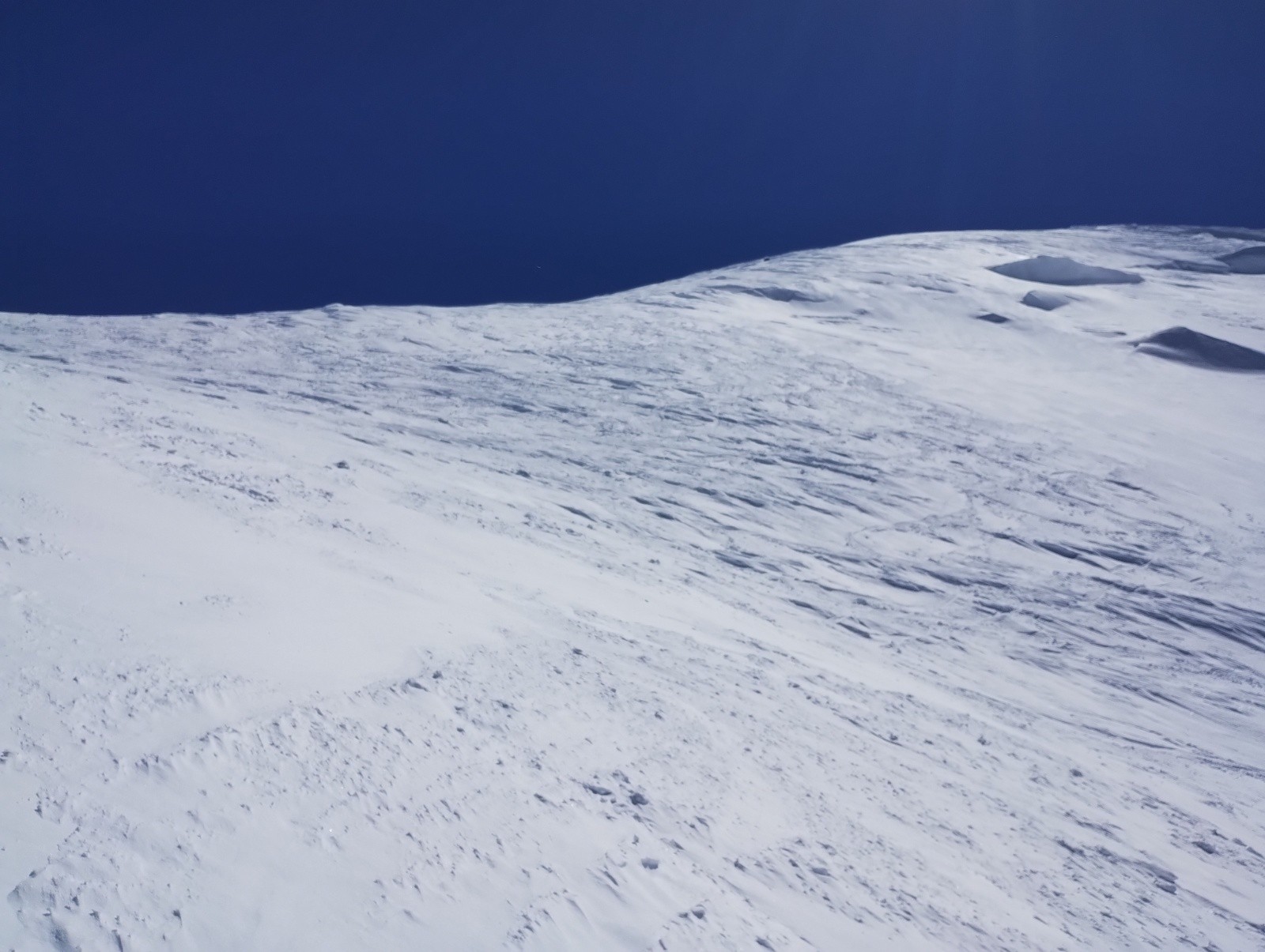 Conditions pour le ski : tout type de neige... gelée en haut ou très travaillée par le vent . Poudreuse dense dans la face nord nord et sur les plateaux...soupe dès 2800 m à 16h00