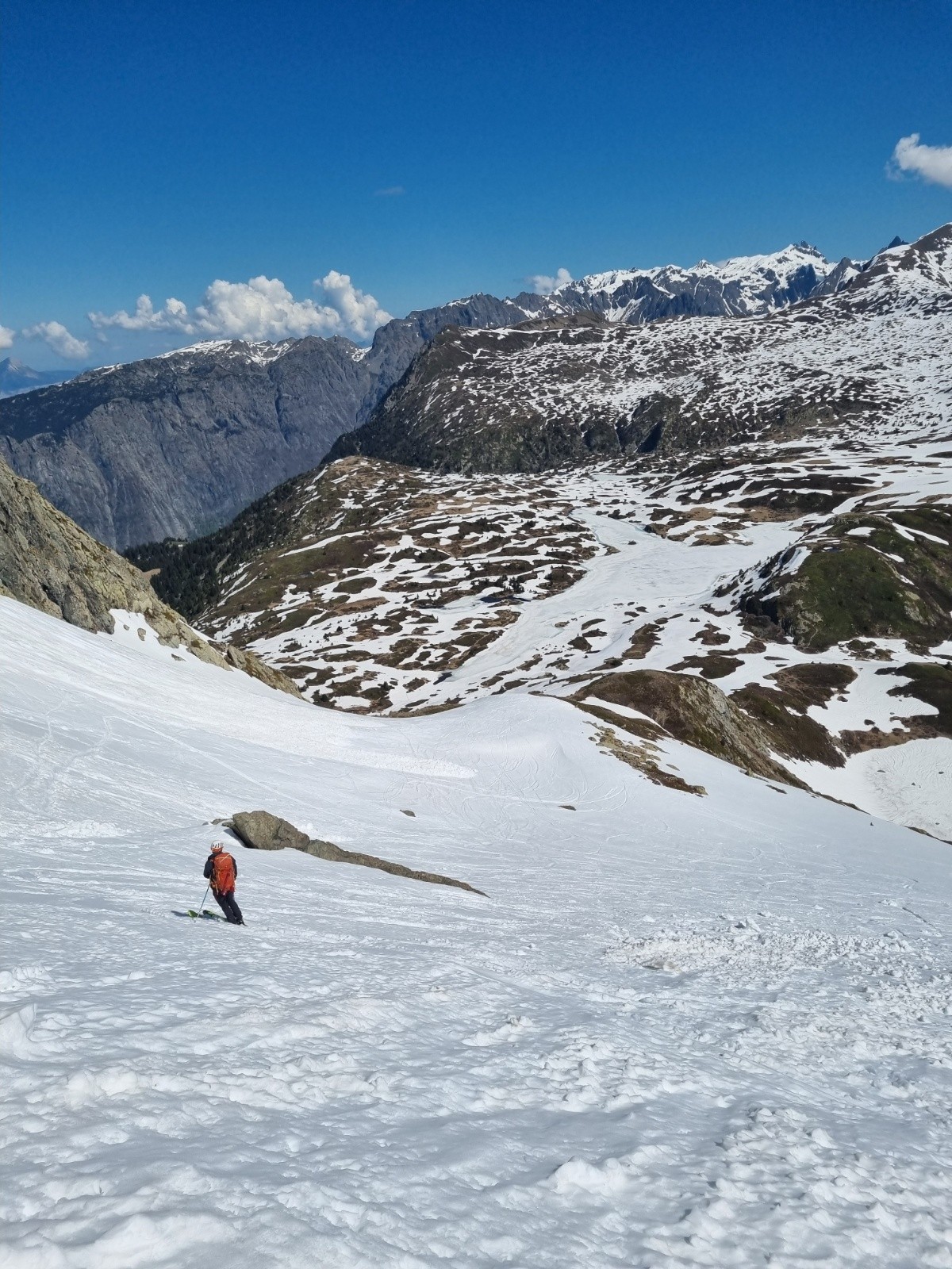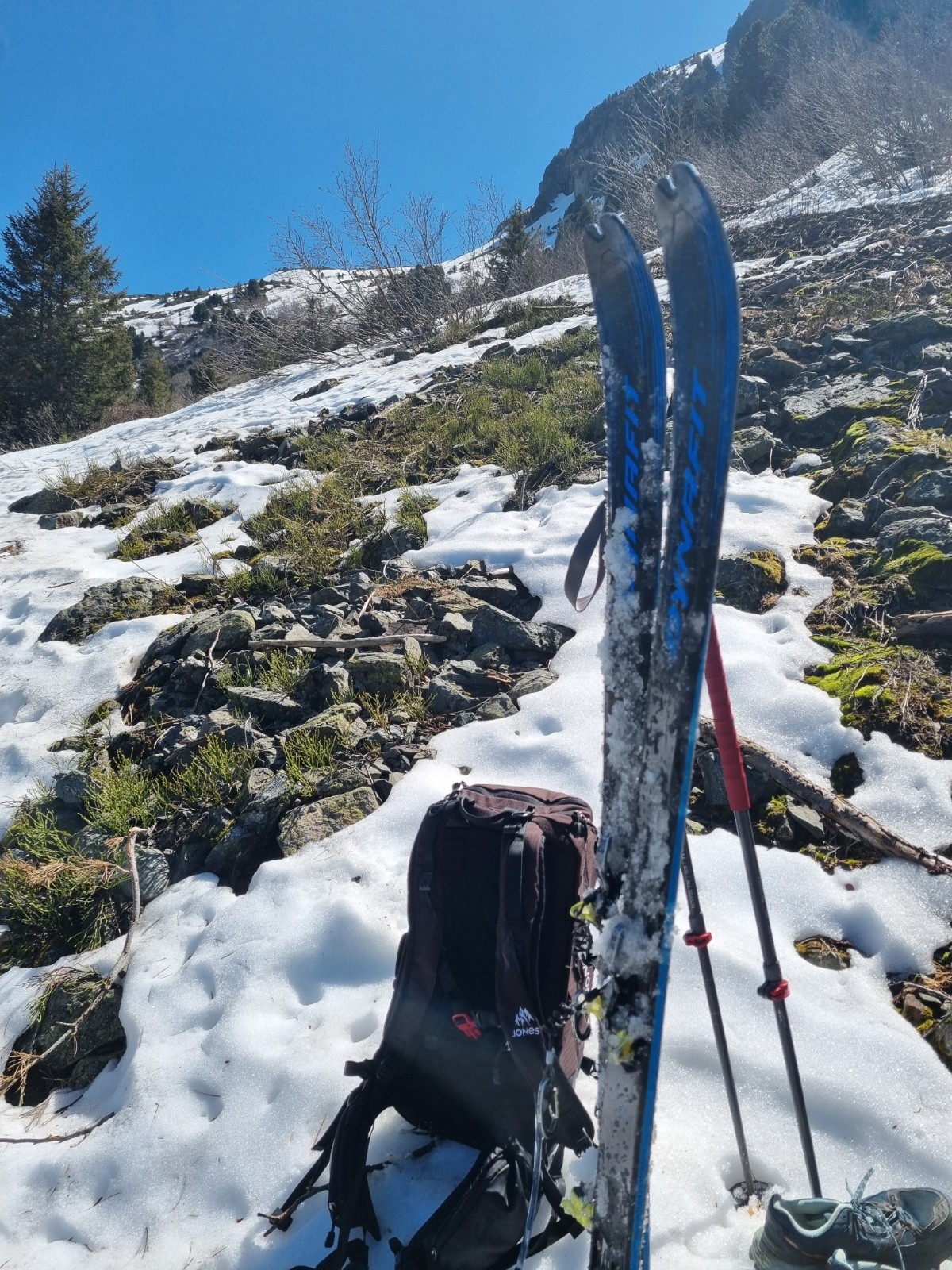 Altitude de chaussage/déchaussage : à peine 300mD+ à la montée, encore moins à la descente après un court déchaussage, ça passe en continu à la moitié du verrou sous le lac fourchu.