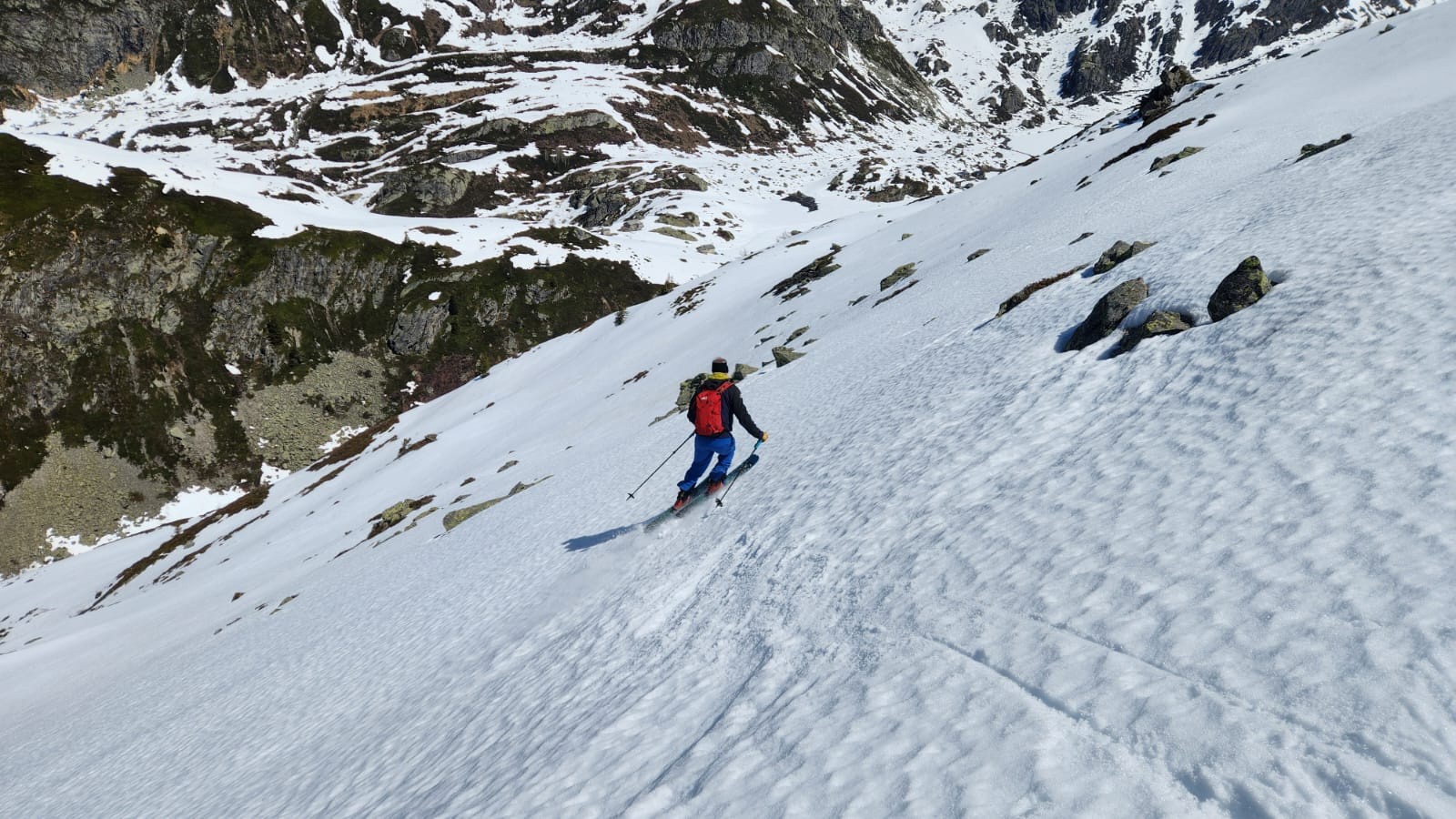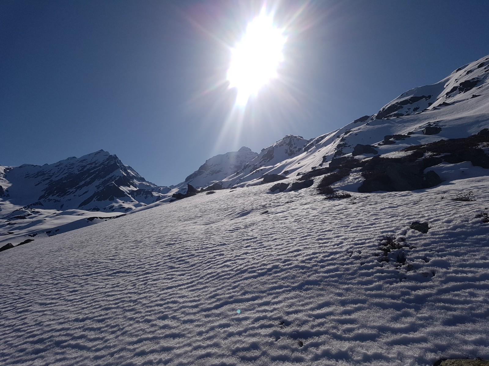 - Attention, sans les couteaux, avec un bon regel, la monté en rive gauche du torrent de la Sassière est tendue et exposée... Par-contre, la descente de cette zone en neige plus ou moins revenue est joueuse et plutôt sympathique. Plus hauts, les vallons s'avalent avec facilité, tout comme la crête qui s'en suit.