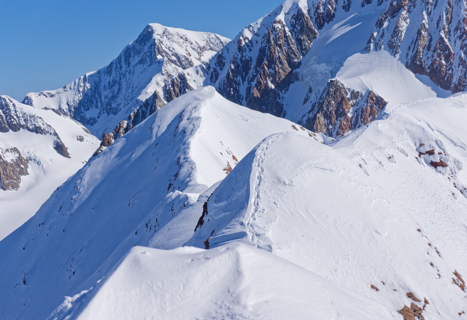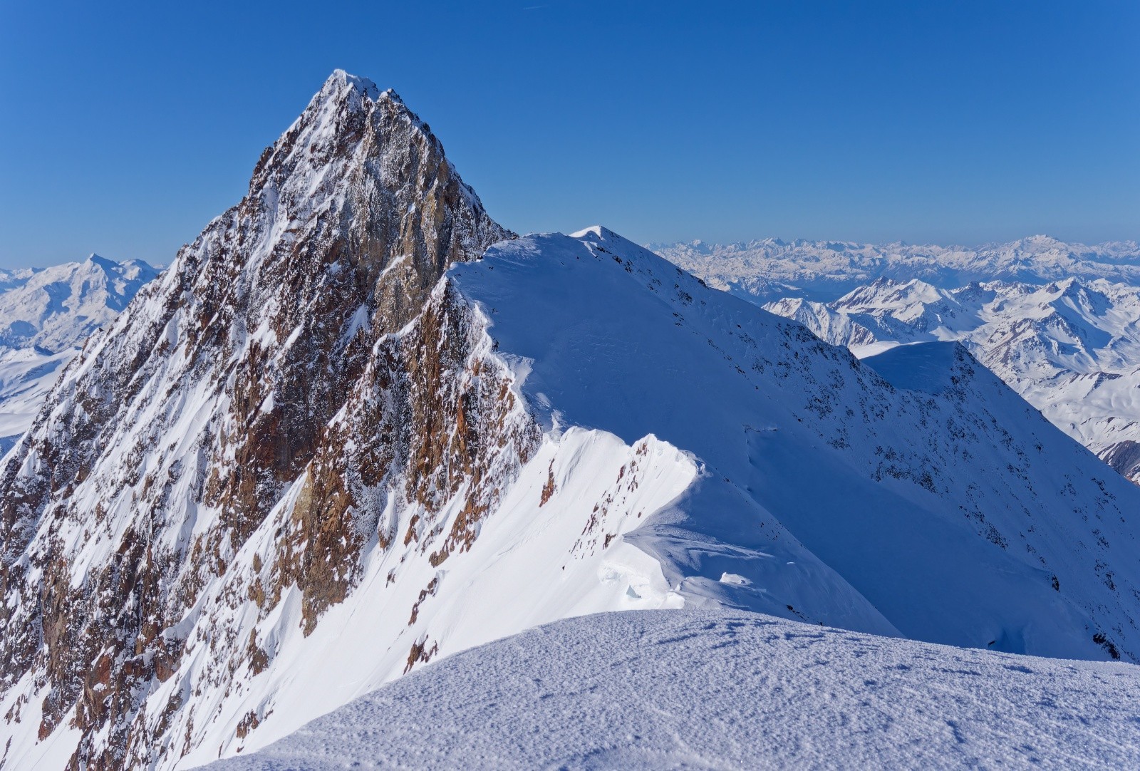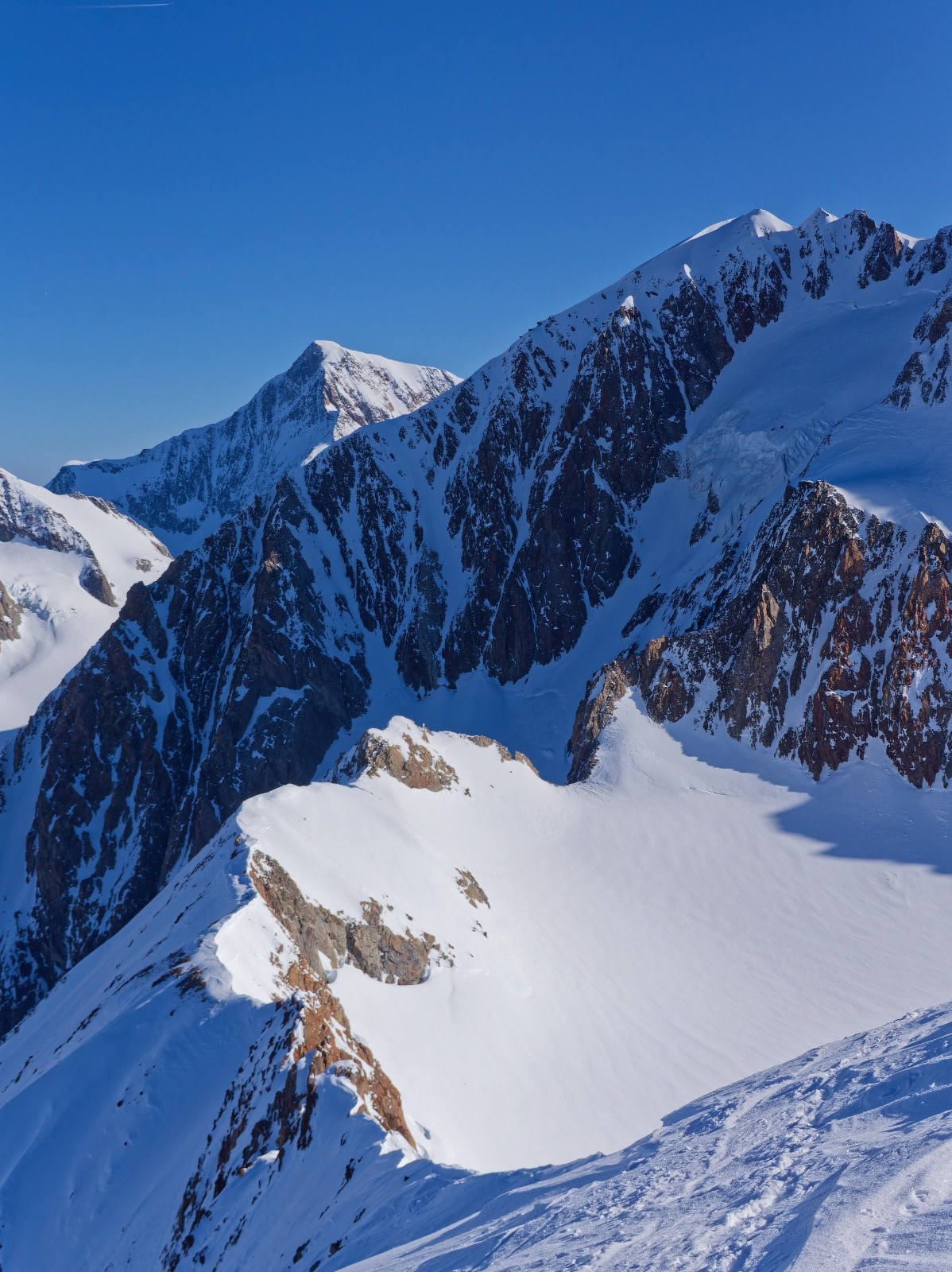 Reste une magnifique arête souvent effilée, parfois cornichée, toujours parfaitement esthétique, pour rejoindre l'épaule nord de la non moins splendide (dans un style plus imposant) aiguille des Glaciers, puis son dôme.
