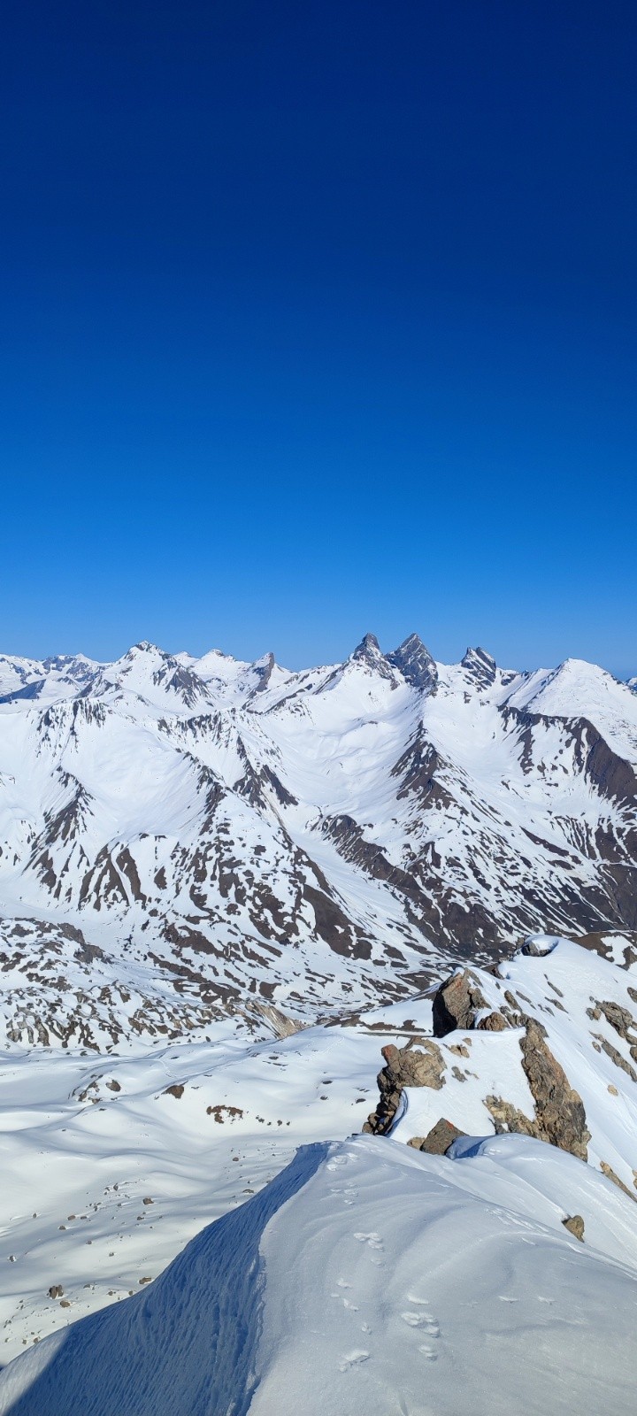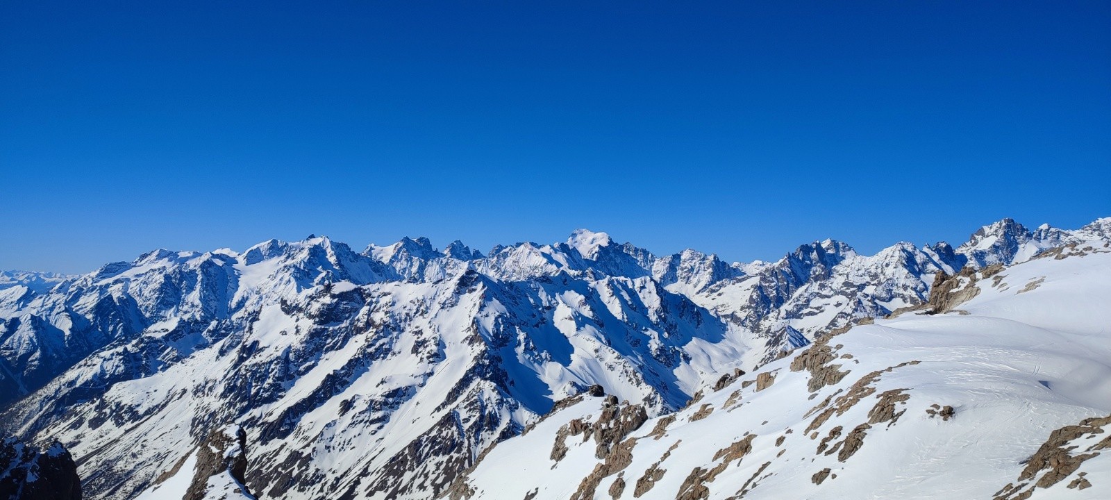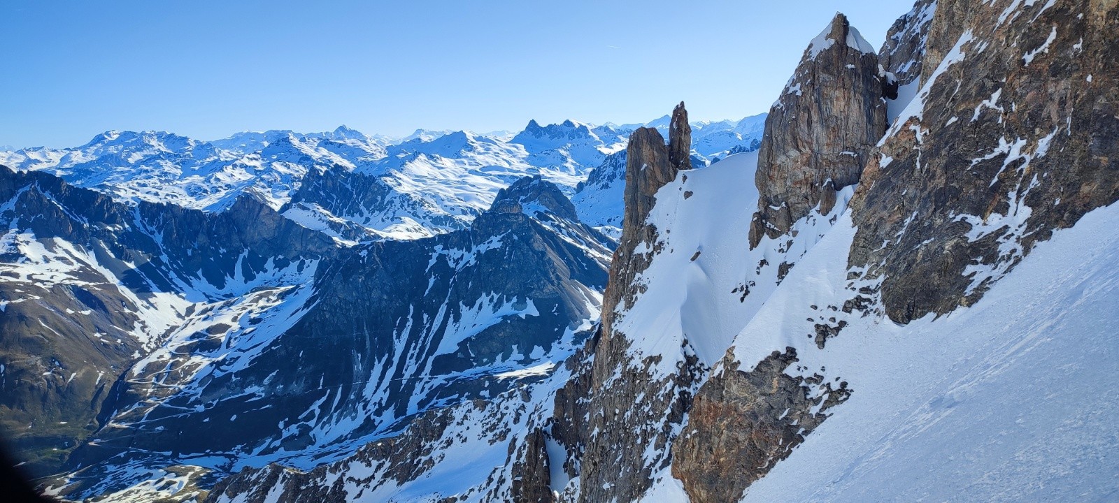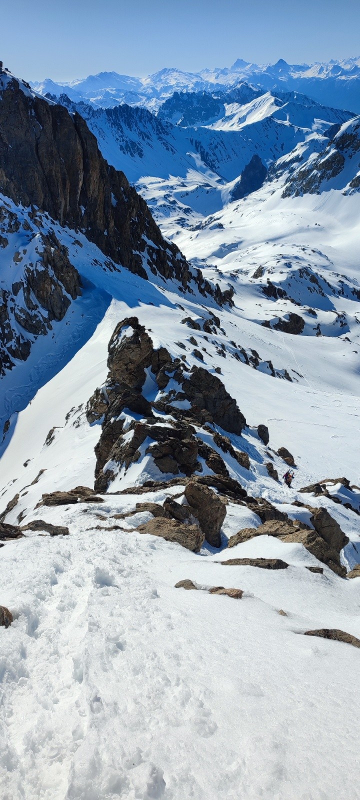 Grand Galibier par le couloir de la Clapière en AR. Le couloir avait déjà été tracé et il y avait une belle purge en bas. c'était bien rock'n roll à la descente. Le centre du couloir était bien chaotique, mieux sur les cotés. Pas mal de sluff et les parties qui prennent le soleil chauffe très vite. Pour un 1er Mai il ne fallait pas s'attendre a mieux.