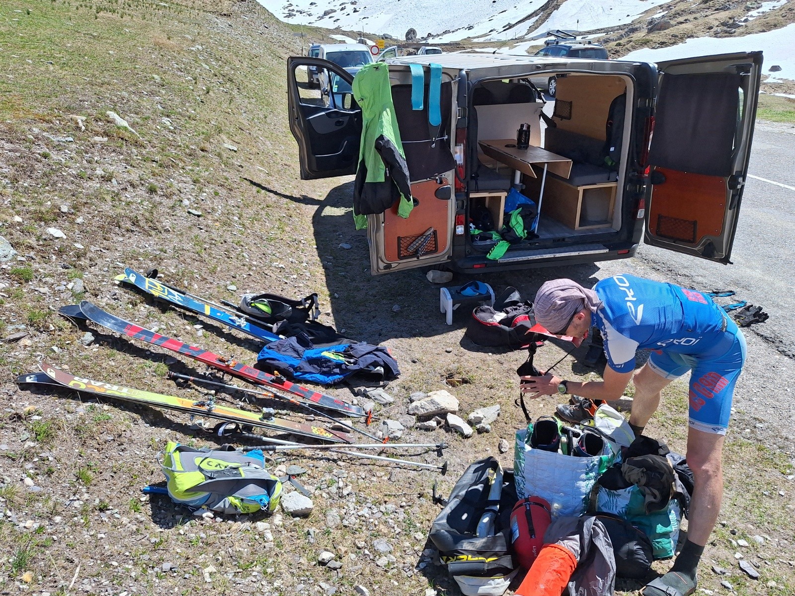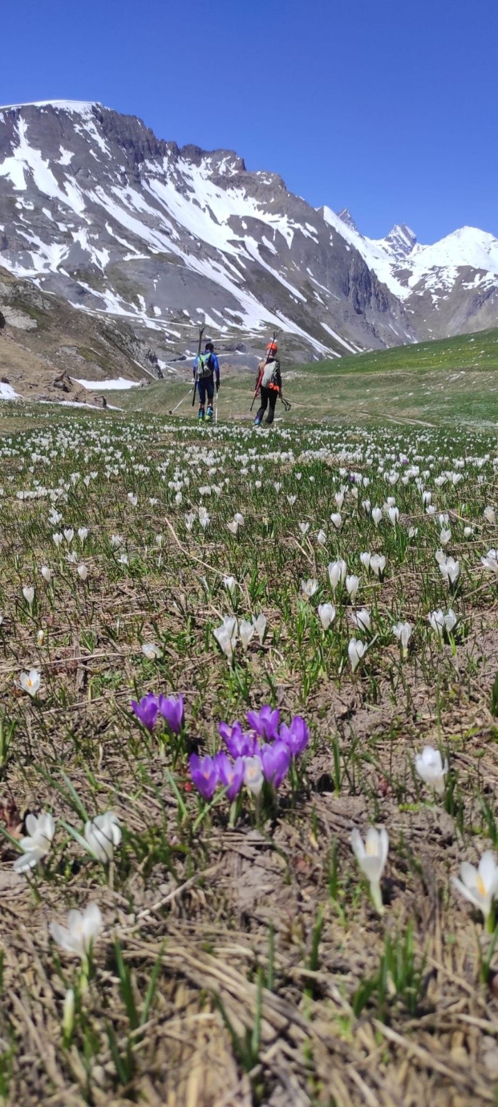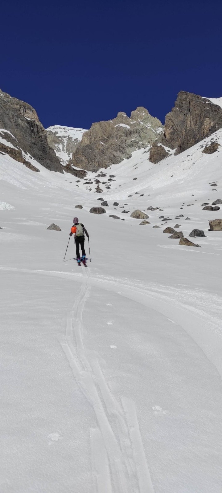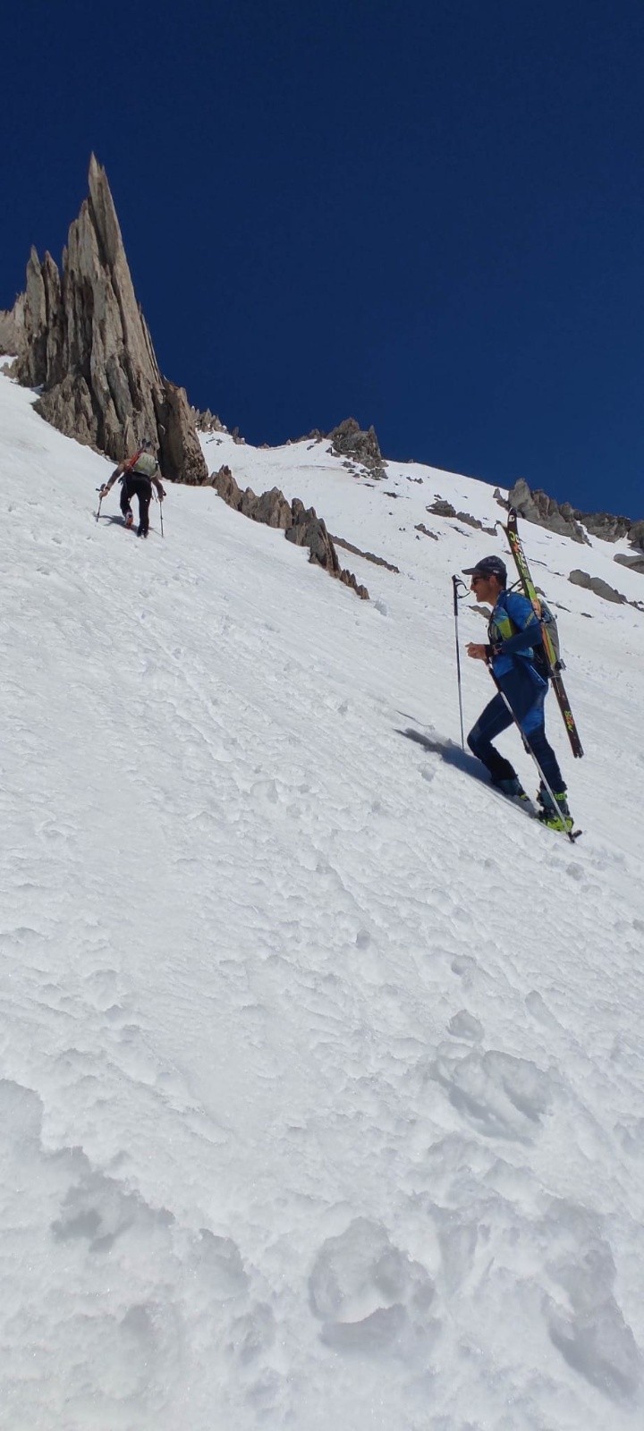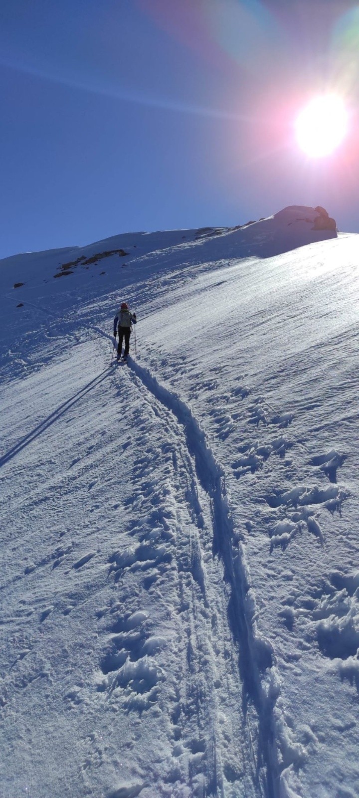 Béton comme la bascule en Sud depuis le sommet avant une descente extraordinaire en direction de Nevache. Il a bien fallut remonter ces 700m sous le cagna. Pour ce faire nous avons opté pour un magnifique couloir Est à plus de 45° débouchant non loin du sommet.