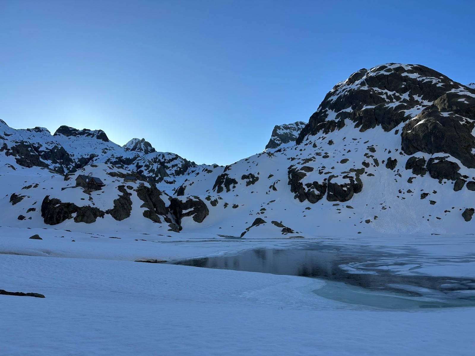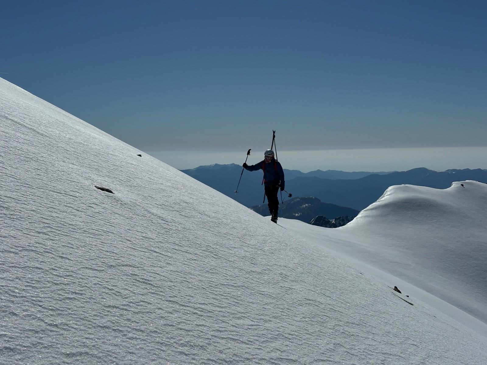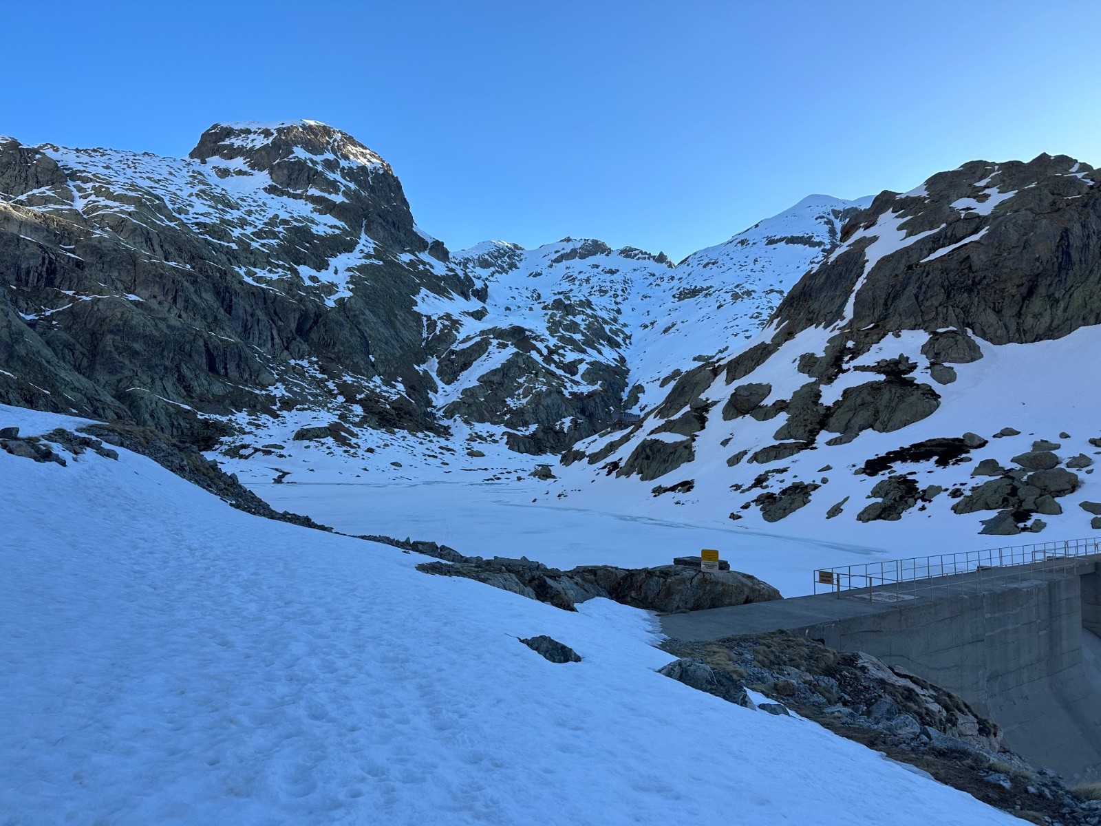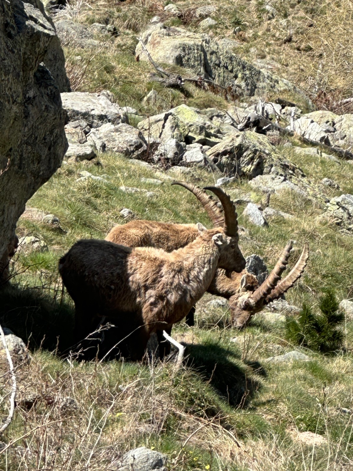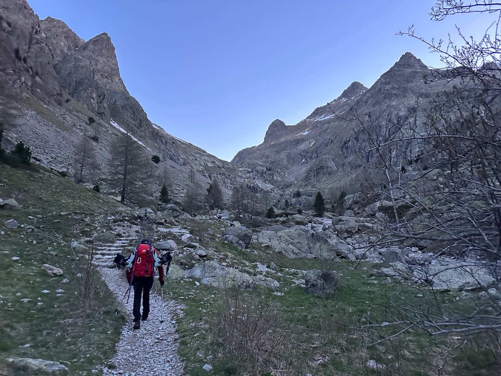 Il y en a pas mal qui ont trouvé des excuses pour ne pas venir avec Philippe et moi. Lever très matinal, portage d’une bonne heure à l’aller et au retour mais du bonheur quand même à parcourir cet itinéraire classique en Gordolasque. C’était d’ailleurs le projet principal : celui de faire une dernière sortie dans cette magnifique vallée cette saison. Les marmottes sont de sorties et pas mal de bouquetins et chamois également, par contre très peu de skieurs. Un seul croisé au sommet, d’où on n’a vu personne sur le Gelas. Son couloir est pourtant bien plein. Itinéraire suivi : classique en louvoyant sur les pentes terminales avec les crampons au pied.