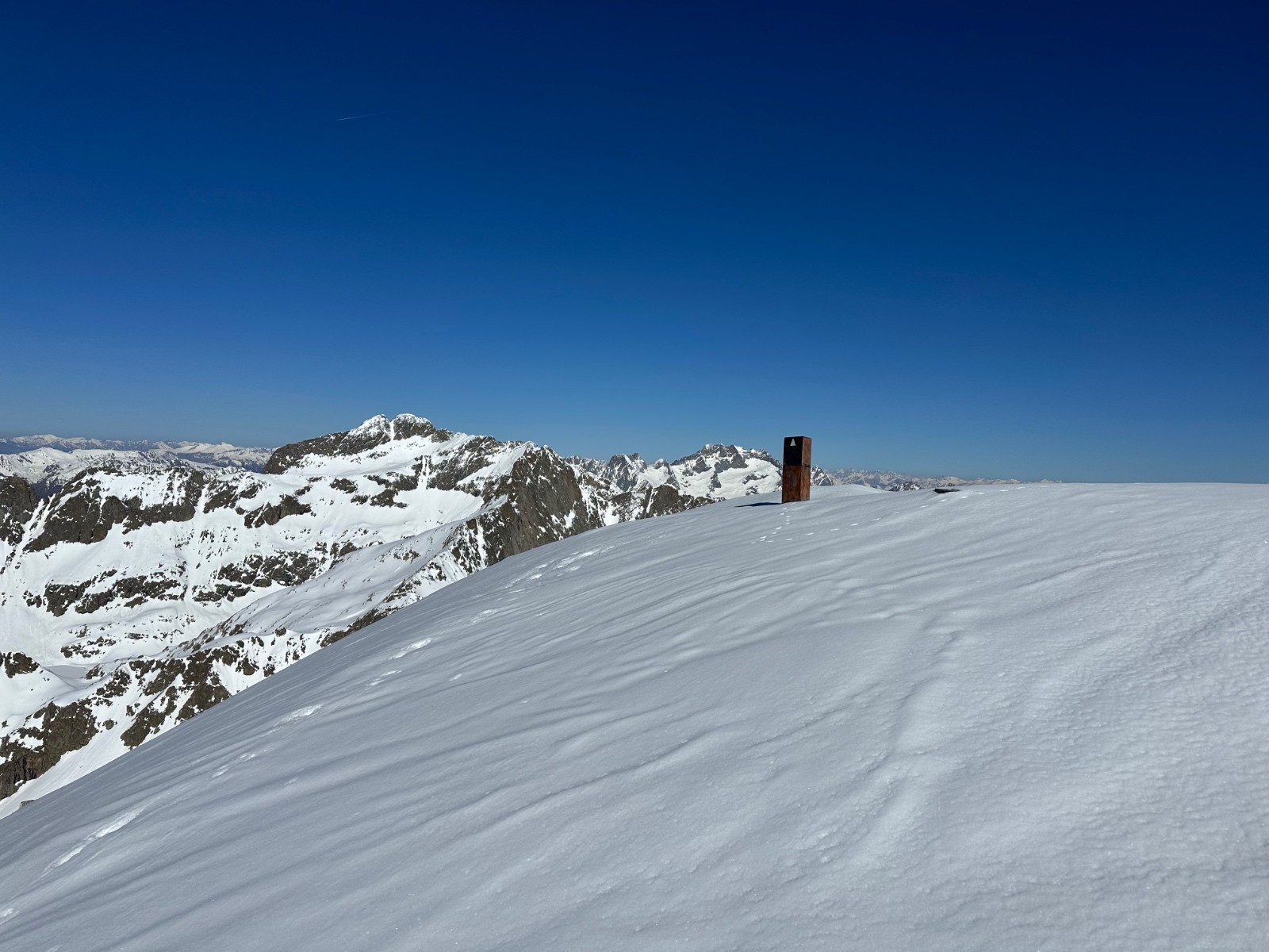 Conditions pour le ski : bon regel pour monter. De caillage tardif sous l’effet du vent sous le sommet et soupe ensuite.