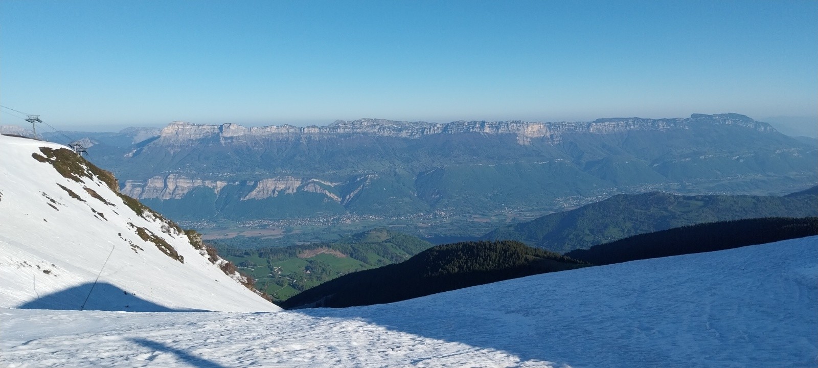Une fois en haut comme j'avais de l'avance je regarde un peu le couloir sud pour faire du rab, ça risque d'être trop galère à remonter à pied même si la descente à l'air d'être en moquette donc j'abandonne. Je m'intéresse donc à la face EST mais j'ai peur que la neige soit déjà passée. Comme il y avait deux personnes au sommet je me suis mis à discuter ce qui m'a finalement donné envie de rester au sommet pour attendre les autres.