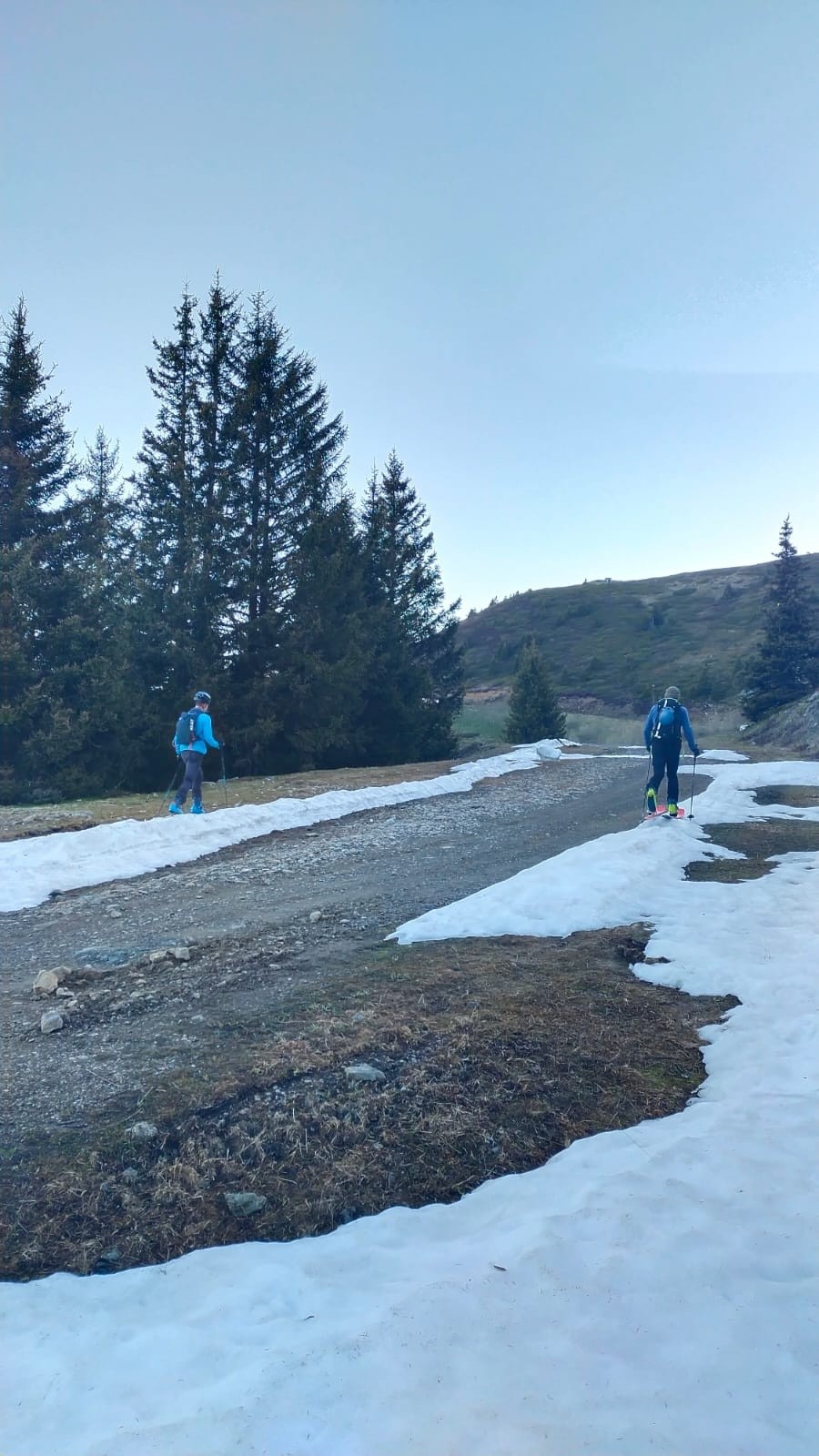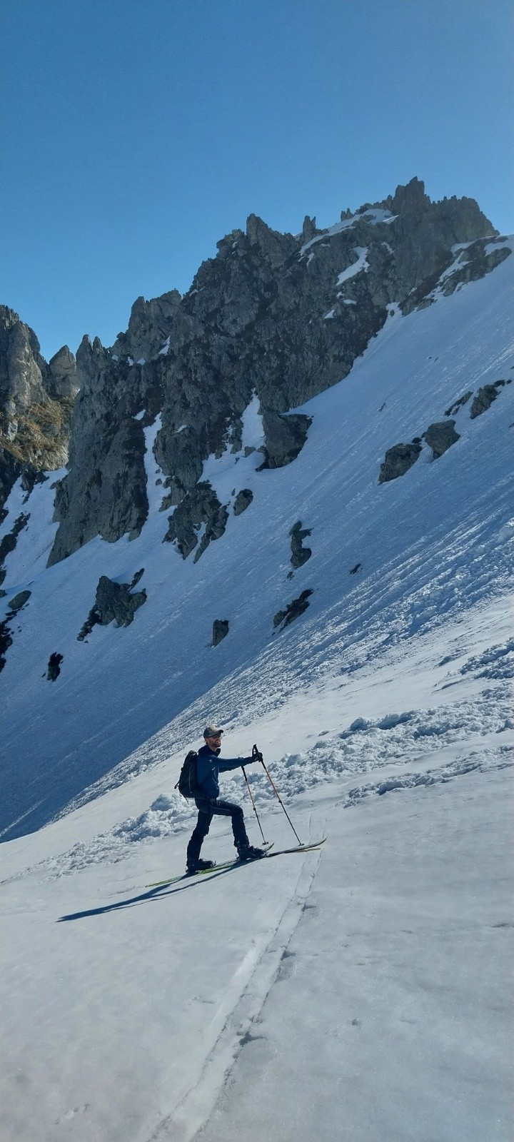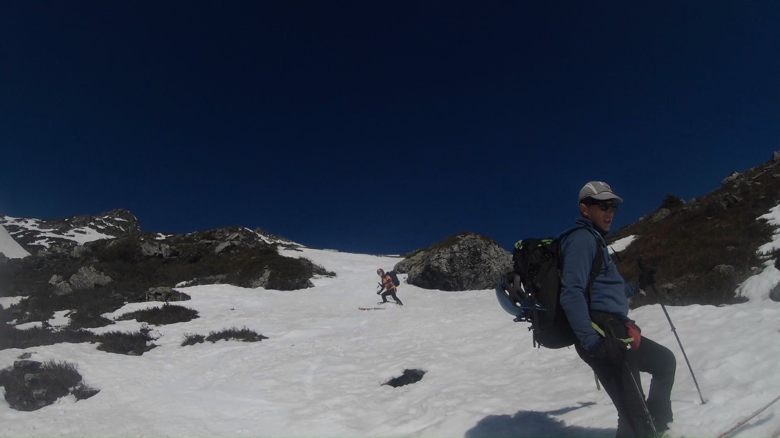 La descente de la Mataru était très agréable en neige de névé jusqu'en bas avec deux ou trois déchaussages comme à la montée. Ca a fondu à vue d'œil depuis ce matin, c'est impressionnant😬😯.