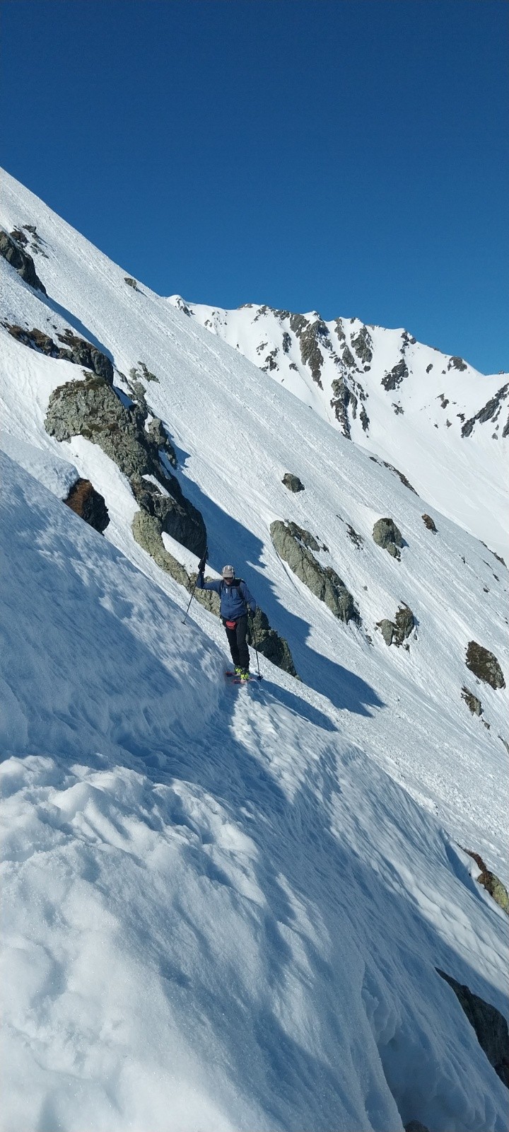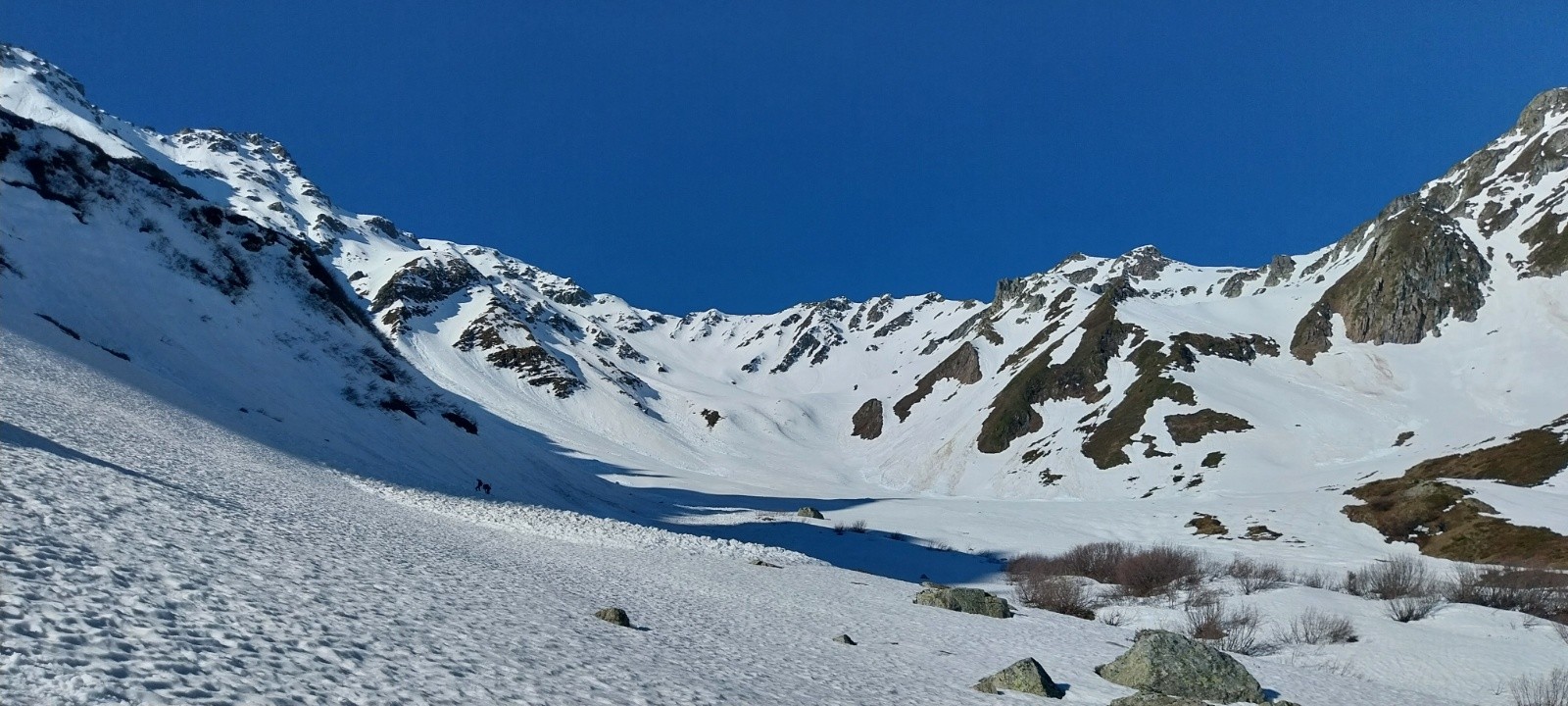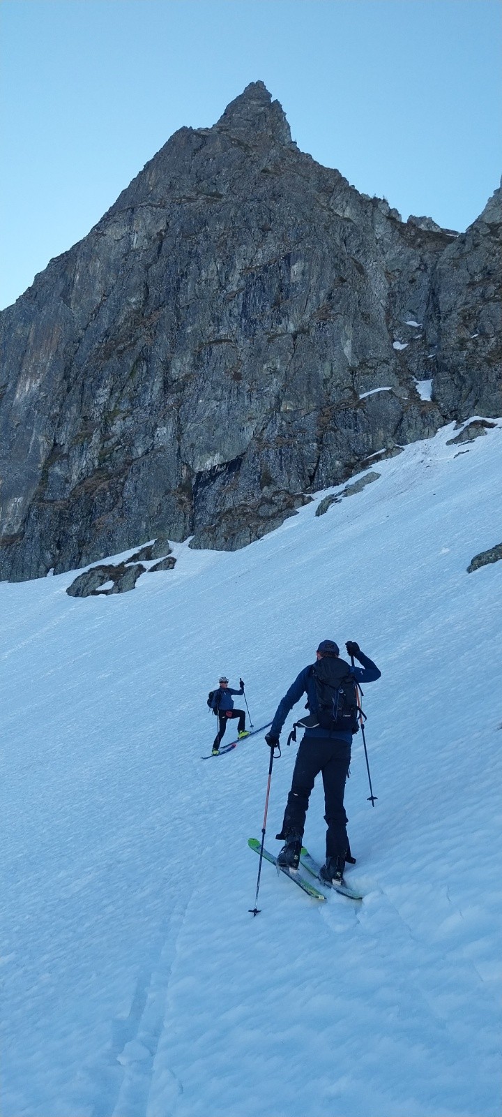 La descente de la Mataru était très agréable en neige de névé jusqu'en bas avec deux ou trois déchaussages comme à la montée. Ca a fondu à vue d'œil depuis ce matin, c'est impressionnant😬😯.