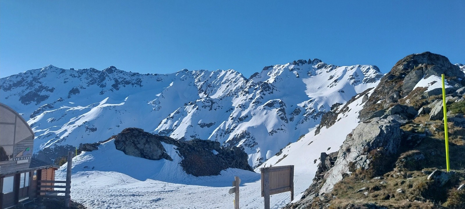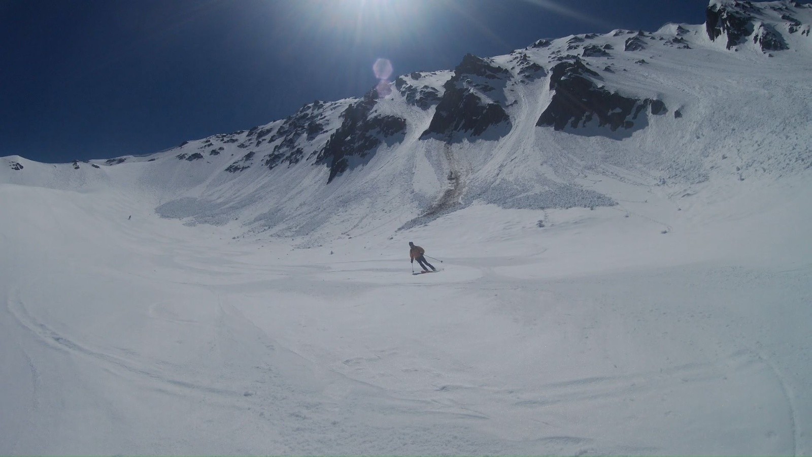 Conditions nivo et activité avalancheuse : Le soleil chauffe beaucoup les faces, en EST ça part tout sous les skis par petites quantités. Il y a des boulettes un peu partout en pente raide
