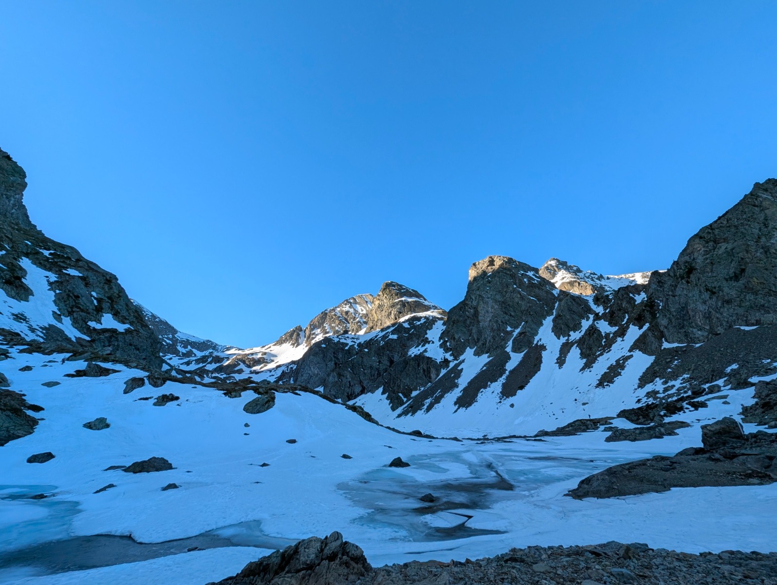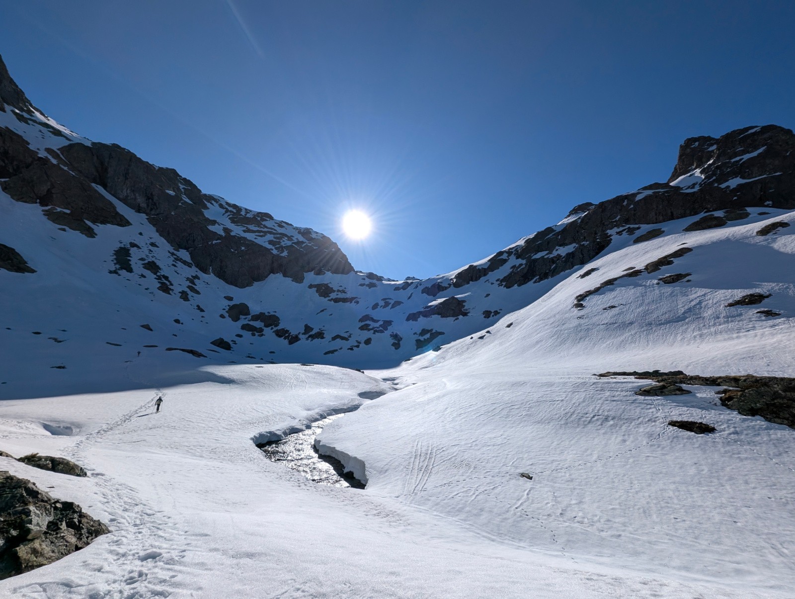Un peu de portage : coupures après le lac du Crozet et entre le refuge de la Pra et la moitié de la remontée S au Grand Colon.