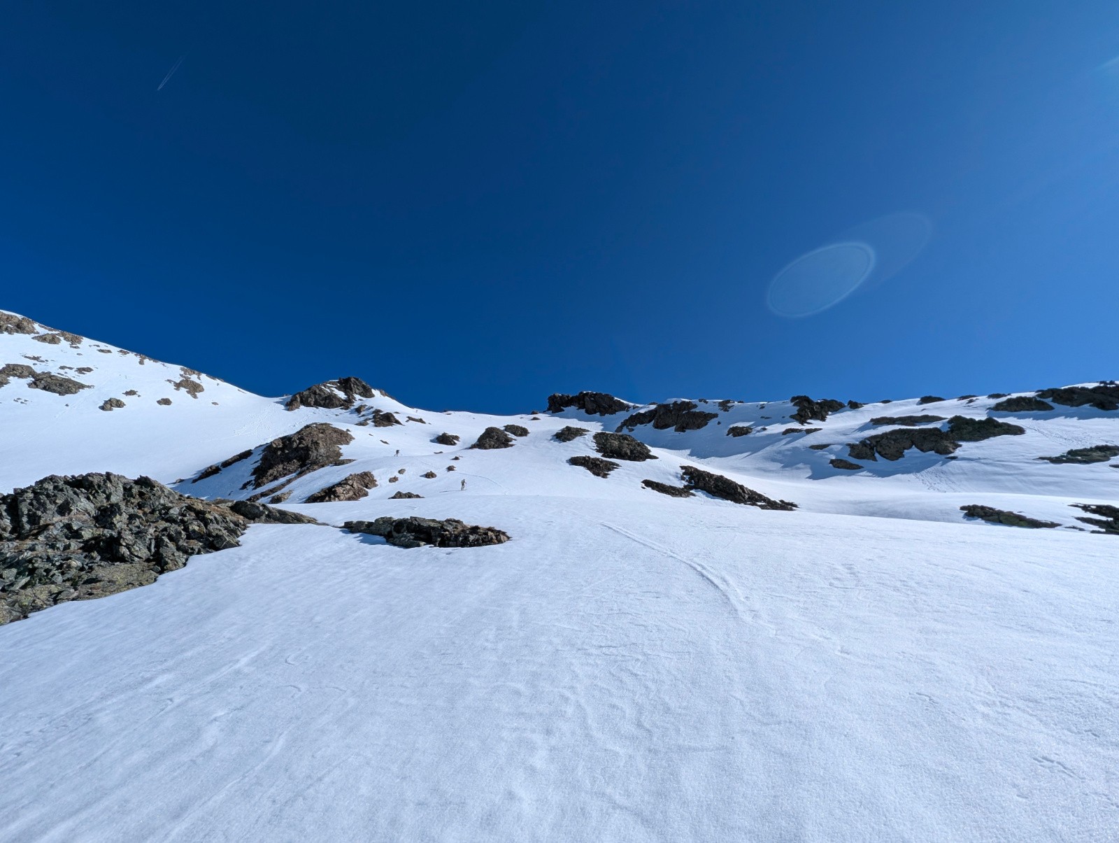 Conditions pour le ski : ski de printemps, moquette à tous les étages pour les descentes. Neige dure pour les montées aux lances, commençant à ramollir pour la Grande Lauzière et molle pour le grand Colon