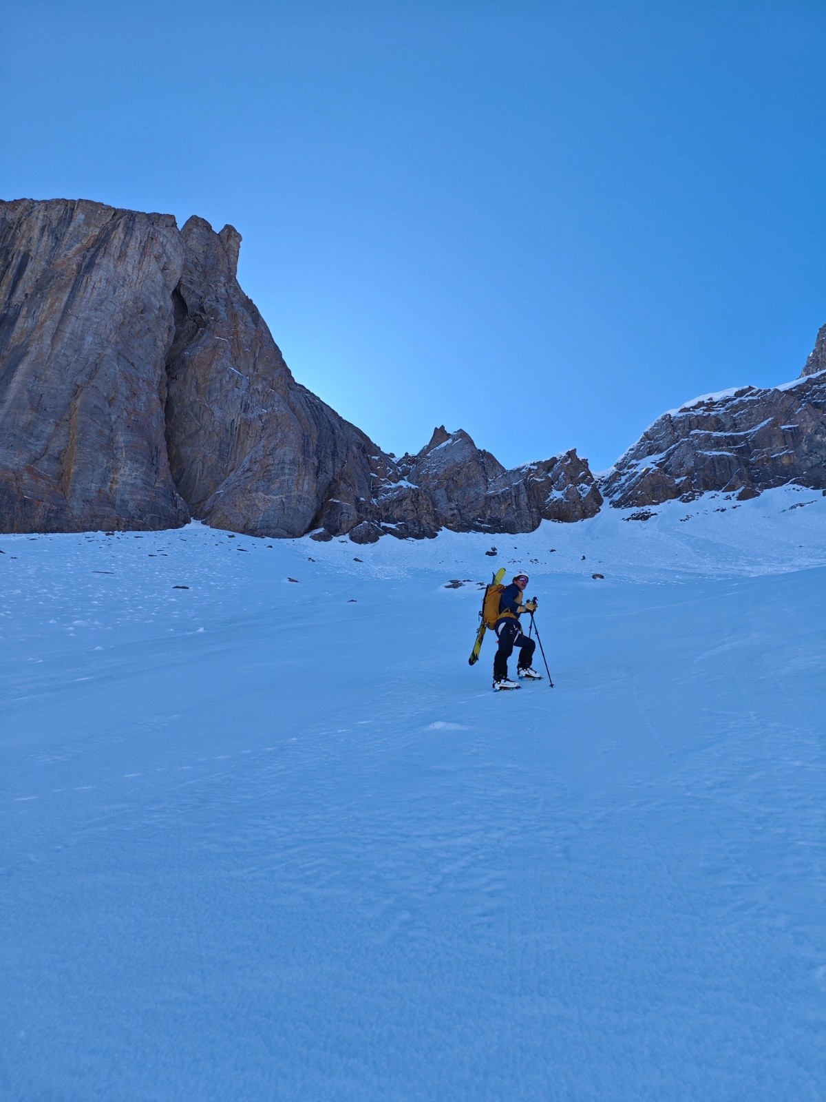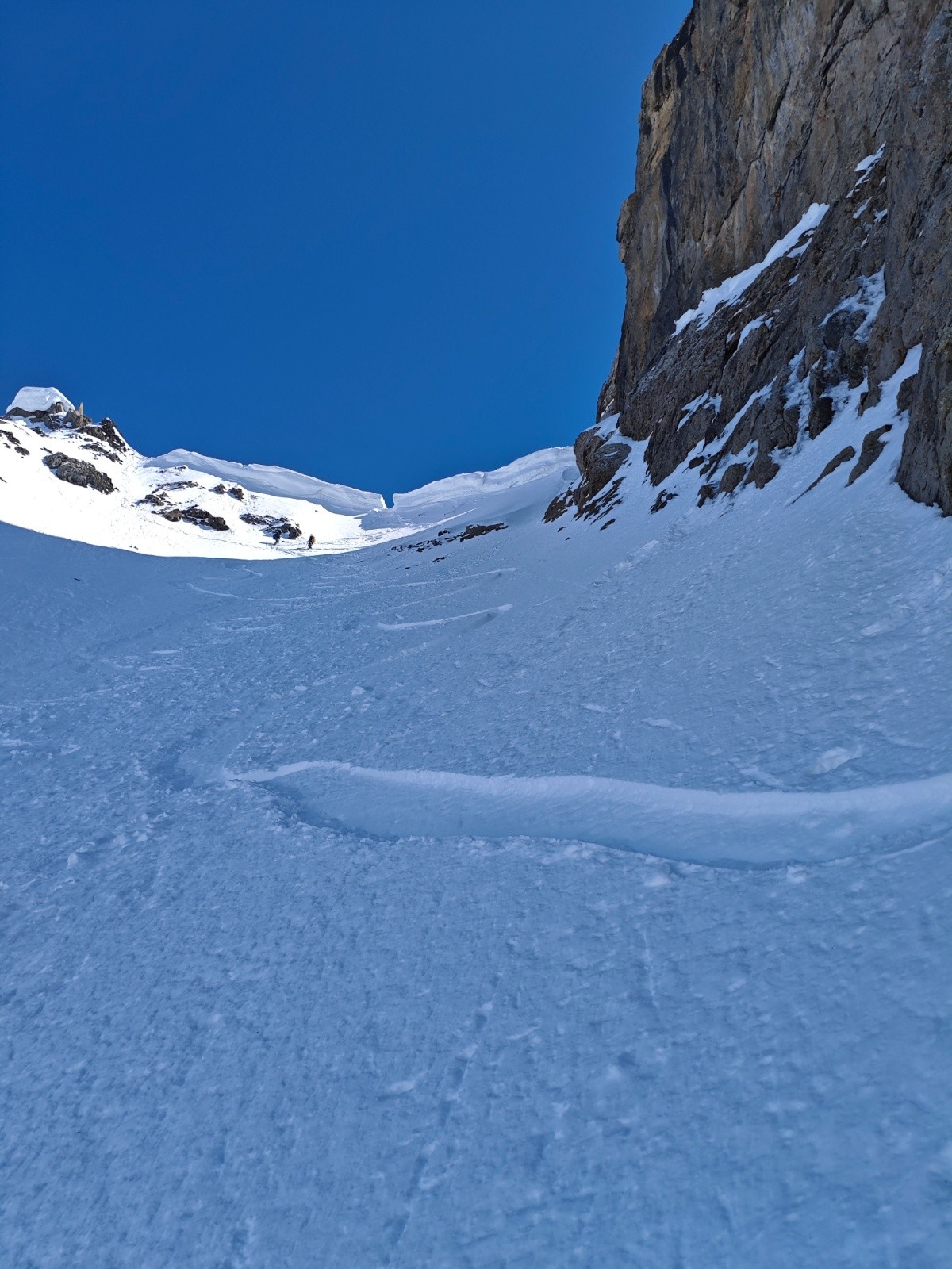 Monté dans le couloir, ca passe bien même si c'est raide, les boots s'enfonce bien dans la neige