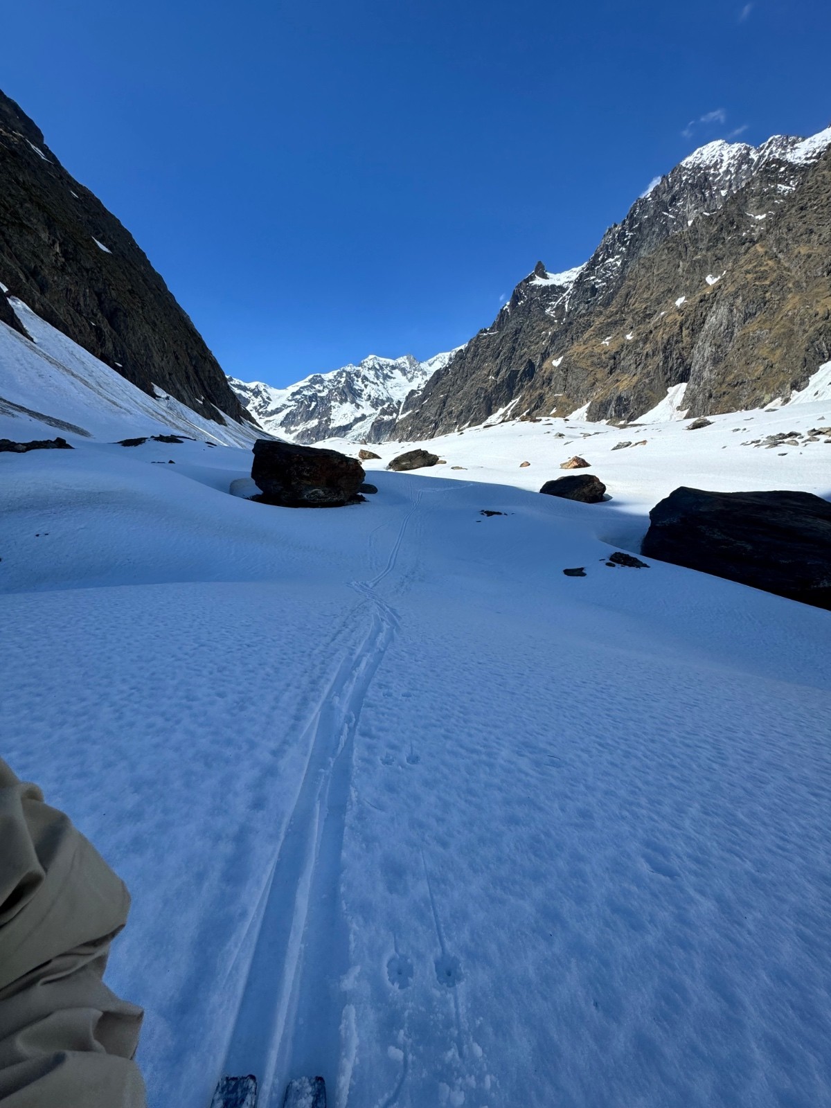 Conditions pour le ski : Variable, pas printemps malgré grosse chaleur, décaillant de manière inégale et sur fond glace, béton ou froid. Du vrai ski quand même surtout sur la 2e partie en meilleure neige