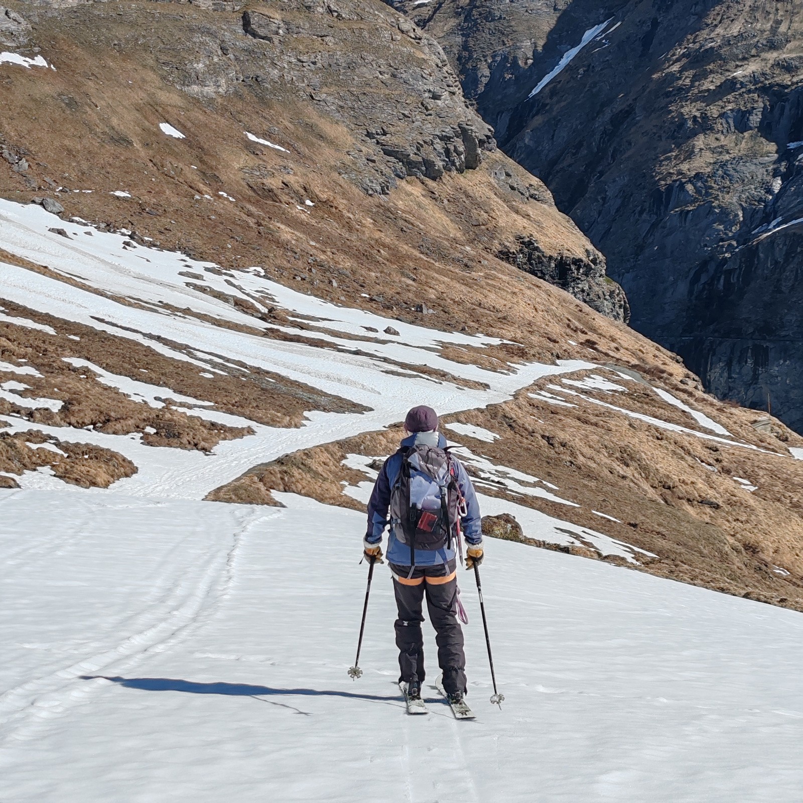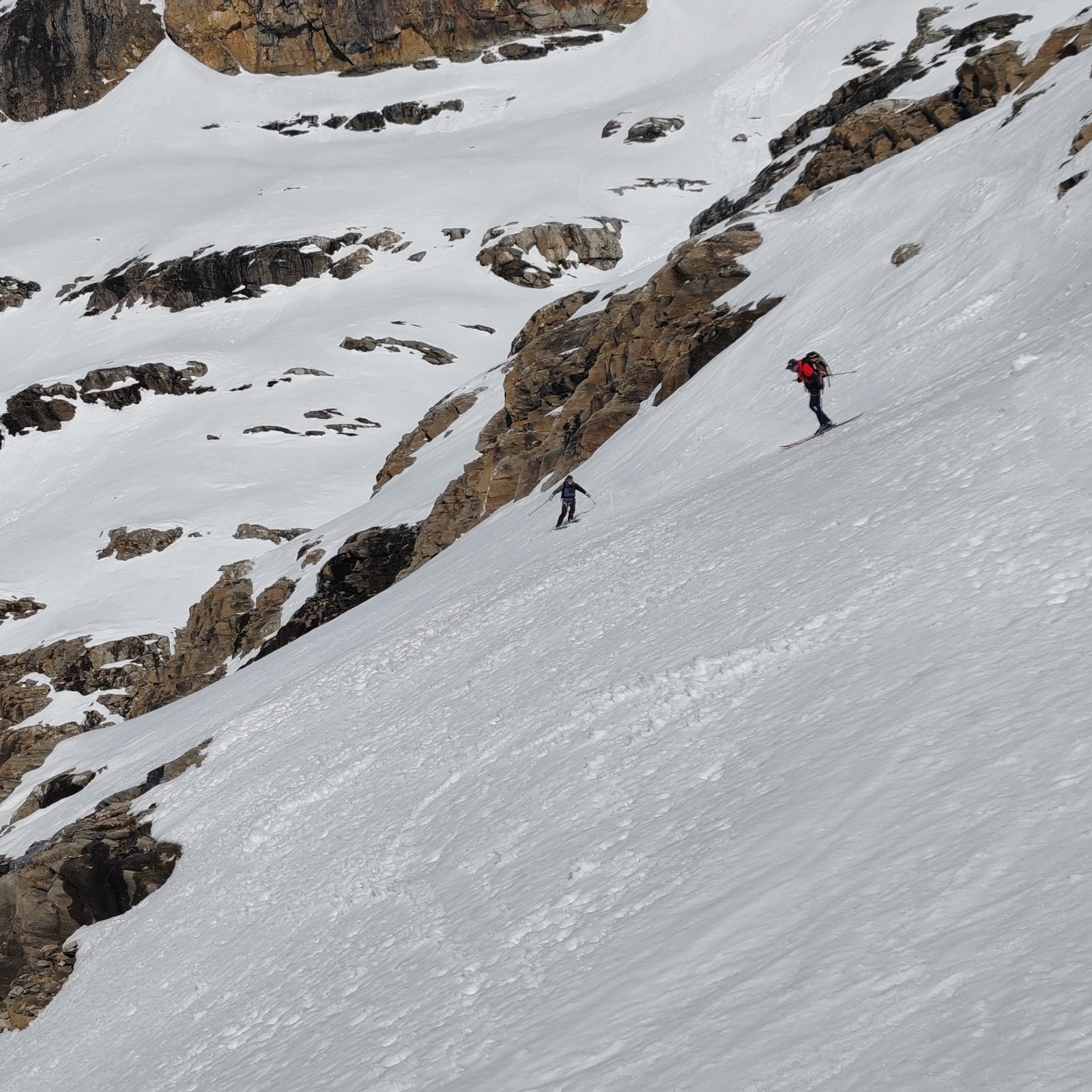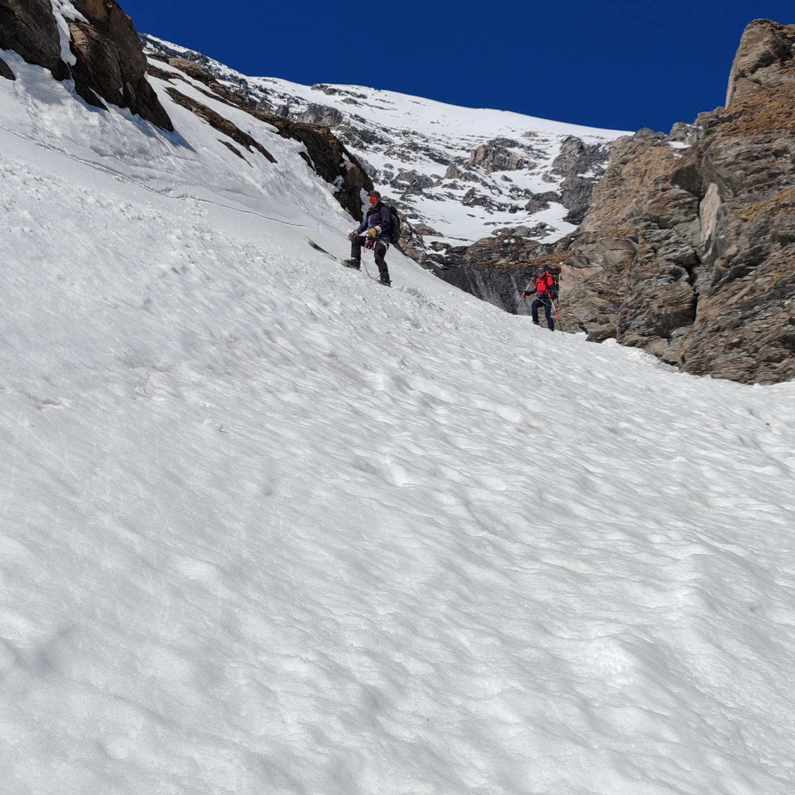 Conditions pour le ski : parfaites conditions si on respecte le timing, ça chauffe vite sur les versants E, on skie encore jusqu'au barrage et on utilise les galeries d'hiver pour sortir de la zone du barrage.