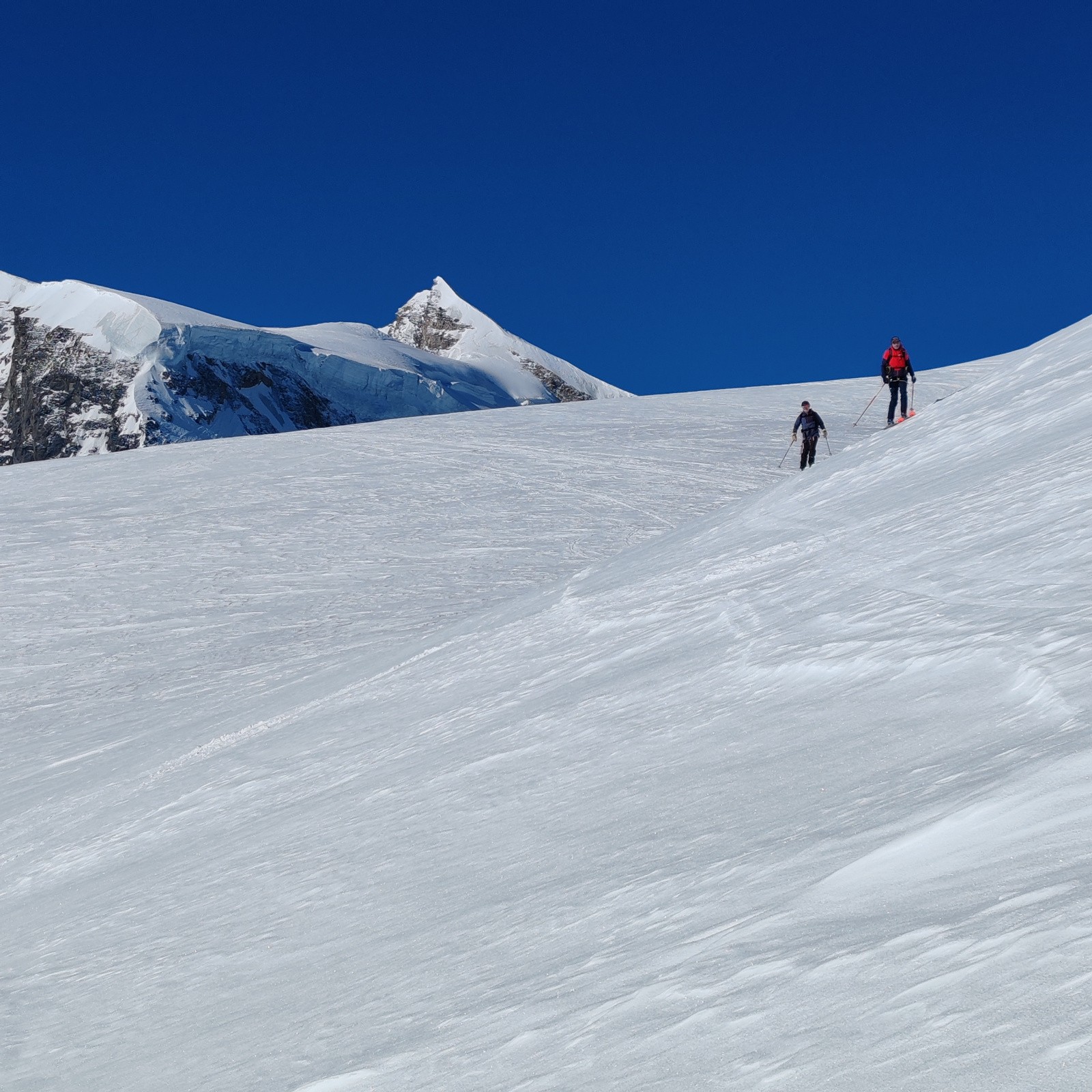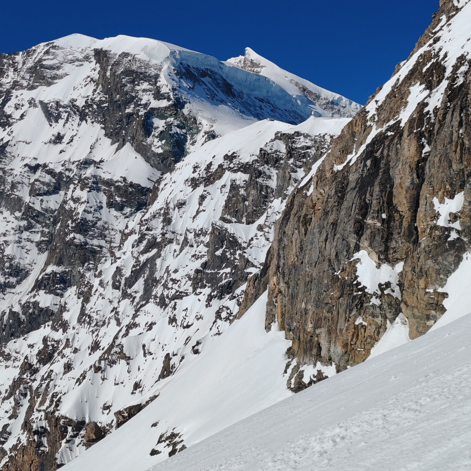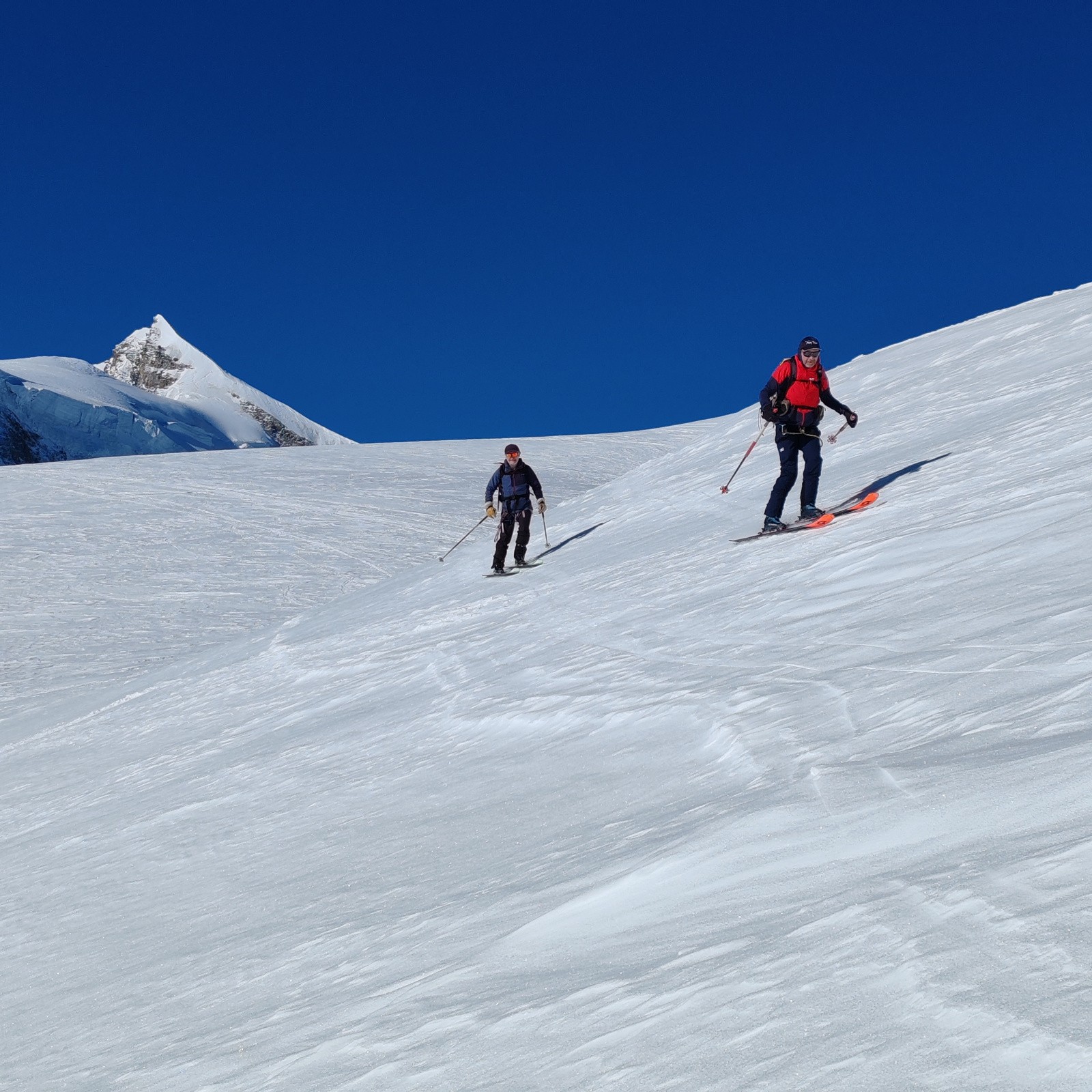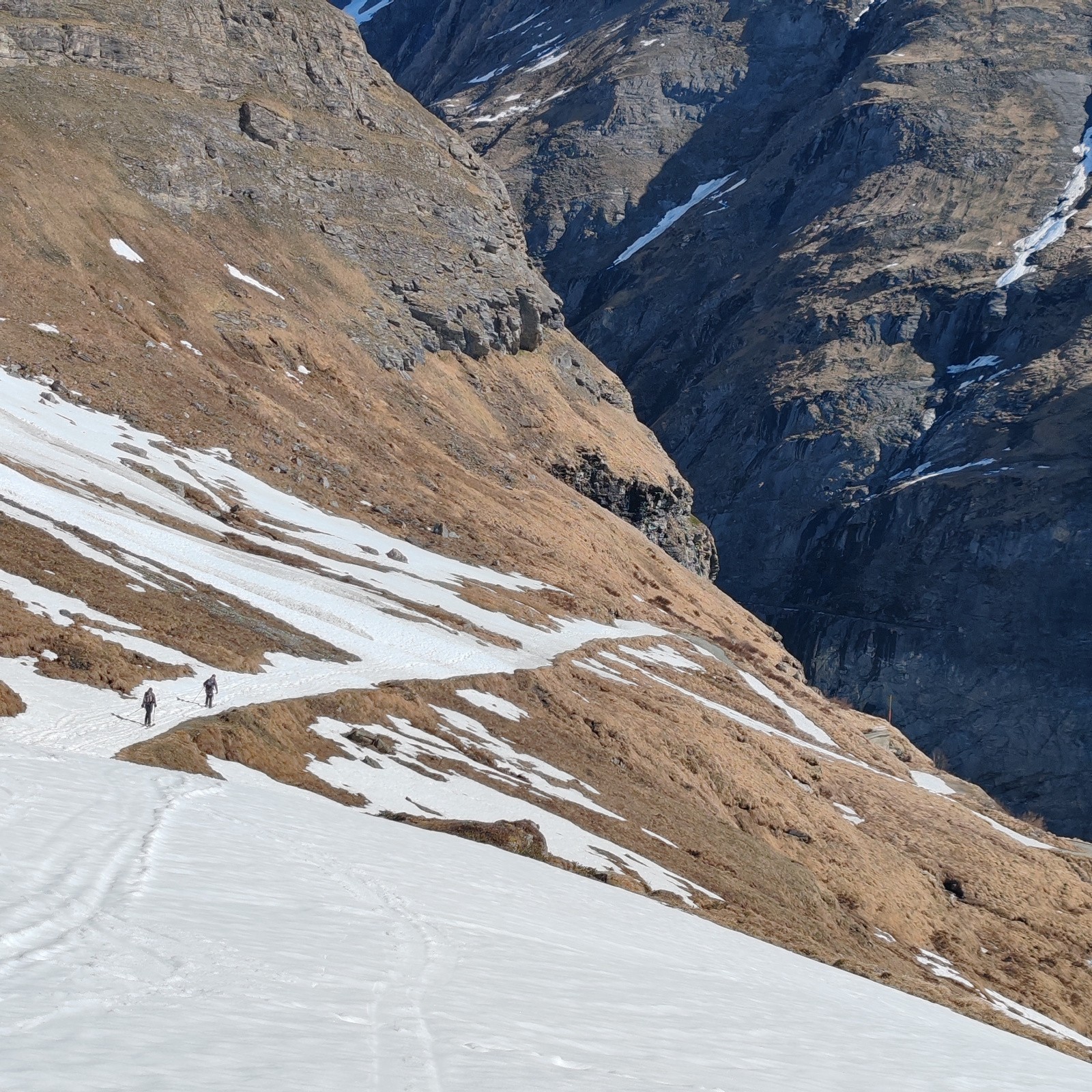 Conditions pour le ski : parfaites conditions si on respecte le timing, ça chauffe vite sur les versants E, on skie encore jusqu'au barrage et on utilise les galeries d'hiver pour sortir de la zone du barrage.