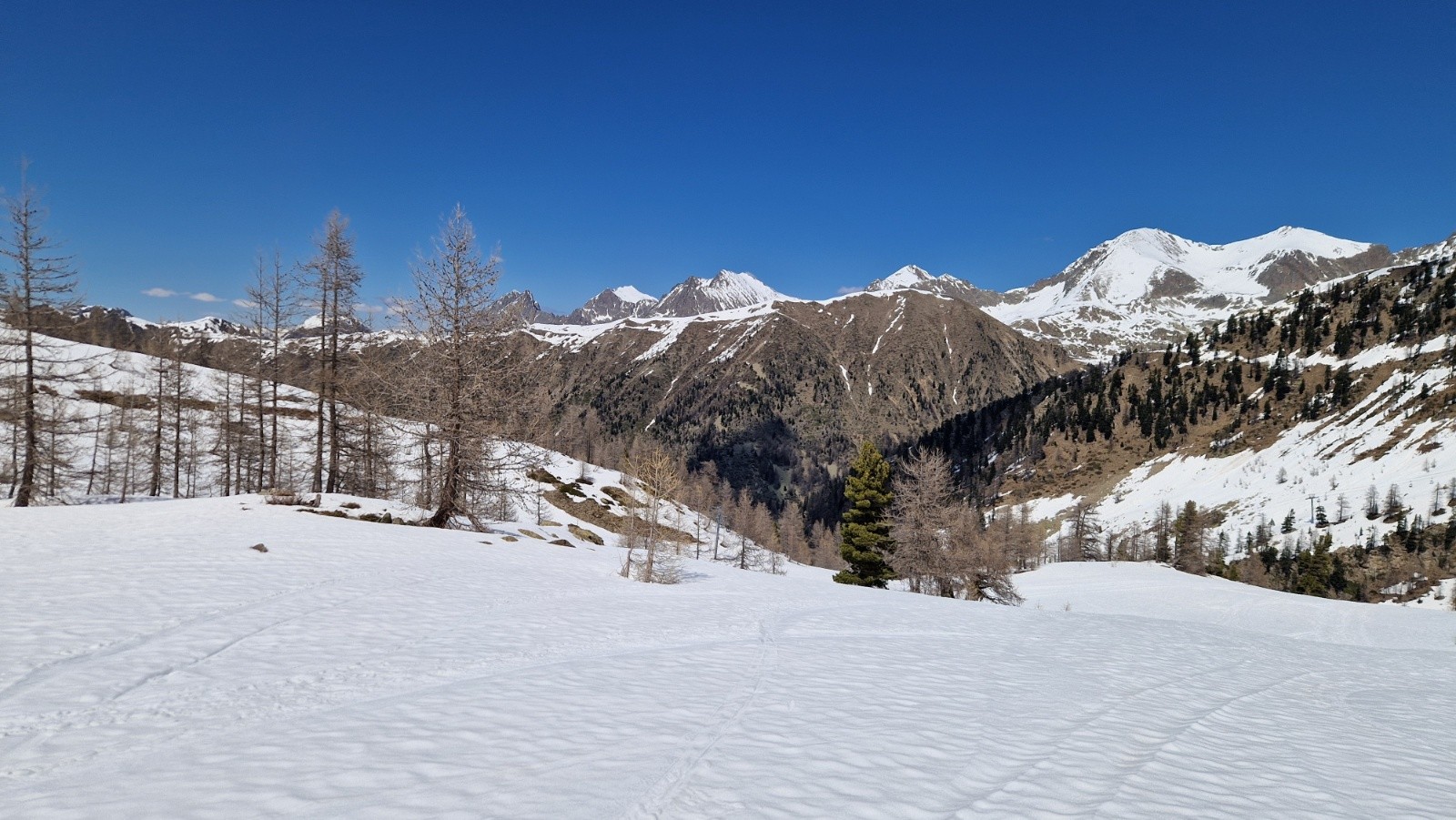Tres belle journee, ni trop chaude, ni trop froide... en solo, pour vraiment profiter de la montagne, tres peu frequentee dans l'apres midi. Petite brise rafraichissante sur les sommets. Neige moquette de bas en haut, et de haut en bas et ainsi de suite, jusqu'a pres de 5h...Juste descente sud de Sistron un peu mollasse.
