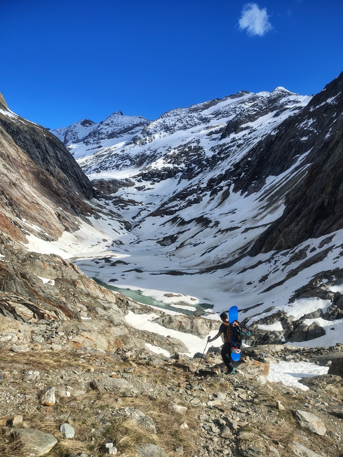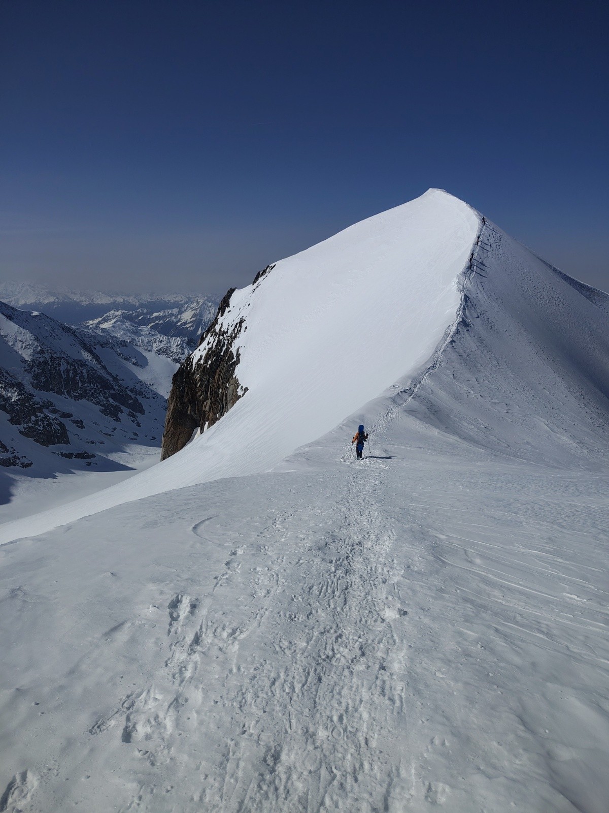 Horaires : départ 7h30 du refuge, et c'était trop tôt. Bien qu'il fasse chaud, c'était très mauvais à skier à 11h. Descendre plus tard...ou attendre la prochaine chute de neige