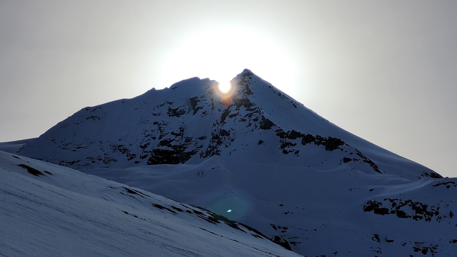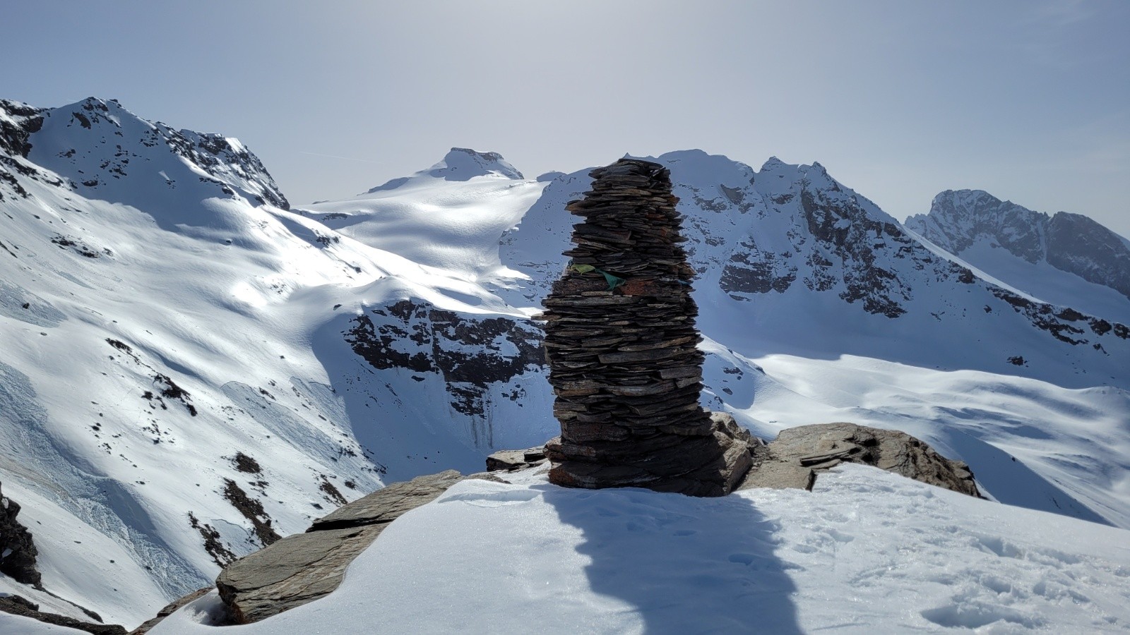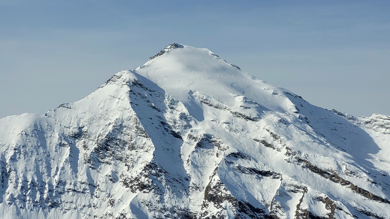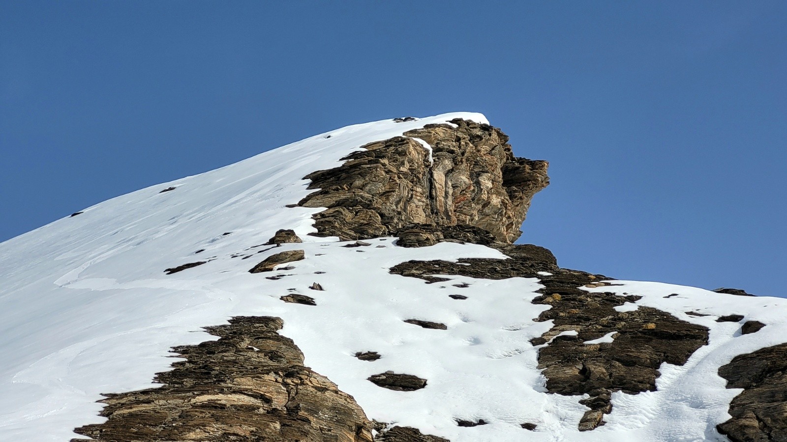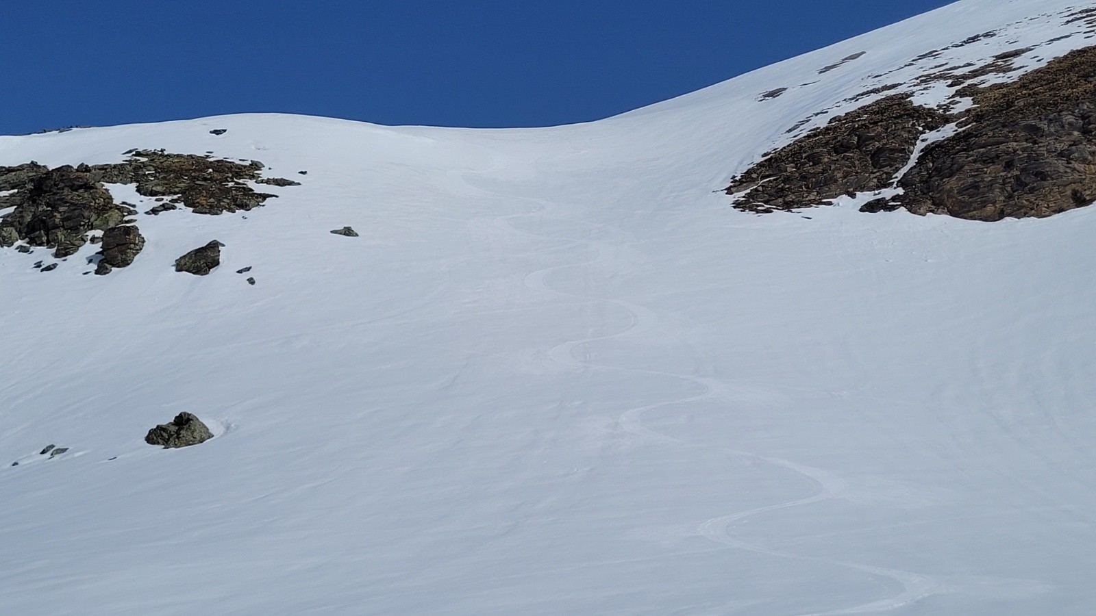 Conditions pour le ski : Très bonnes avec une neige dure à la montée. Début de descente en neige dure lisse très agréable sur le bloc sommital et de la bonne moquette plus bas.
