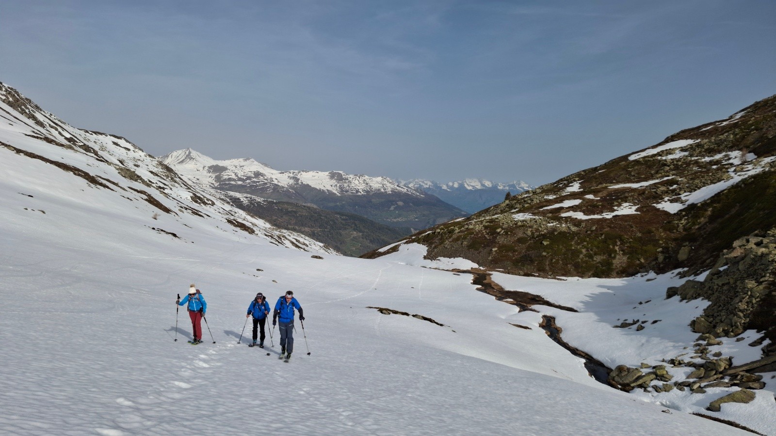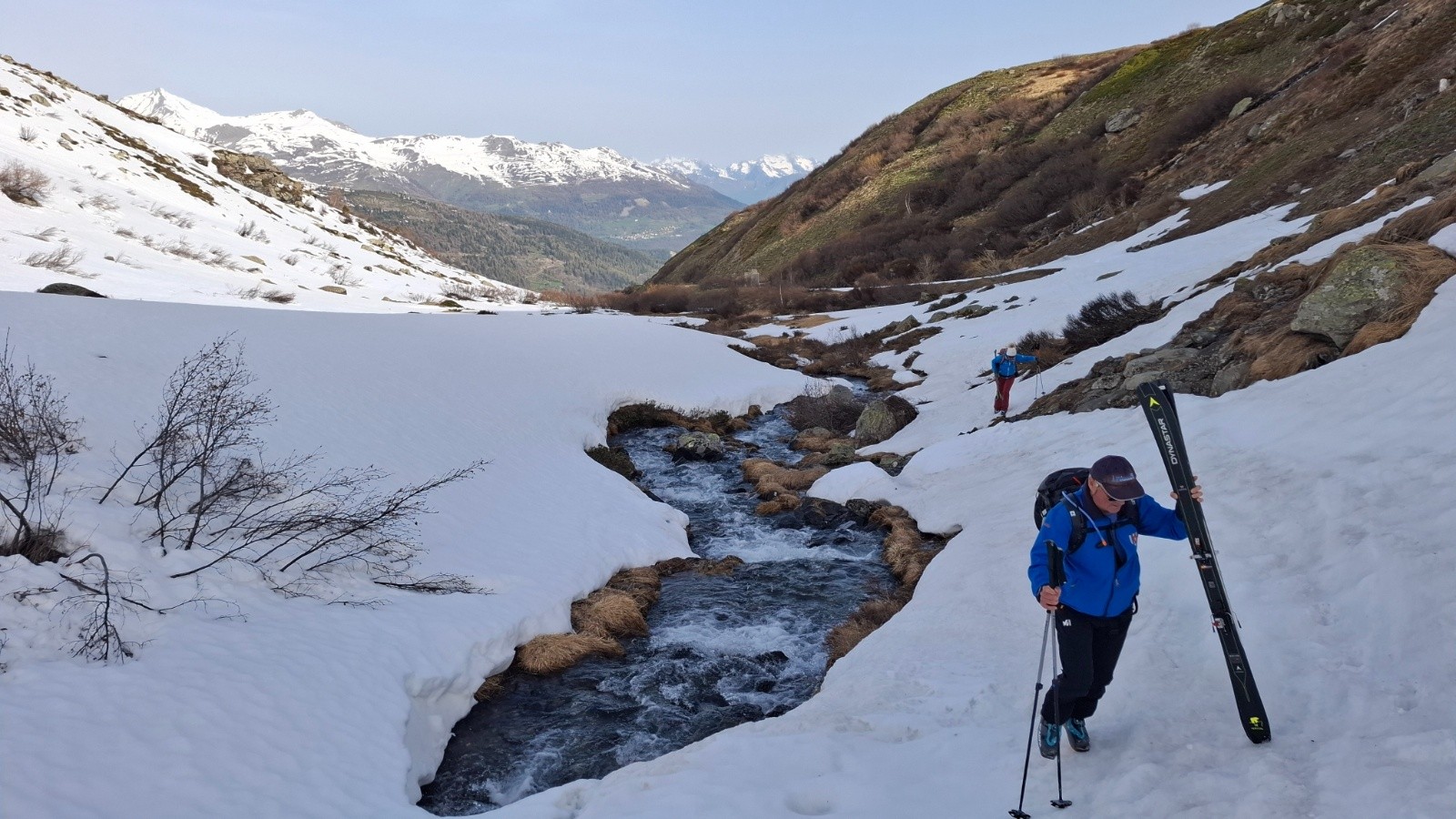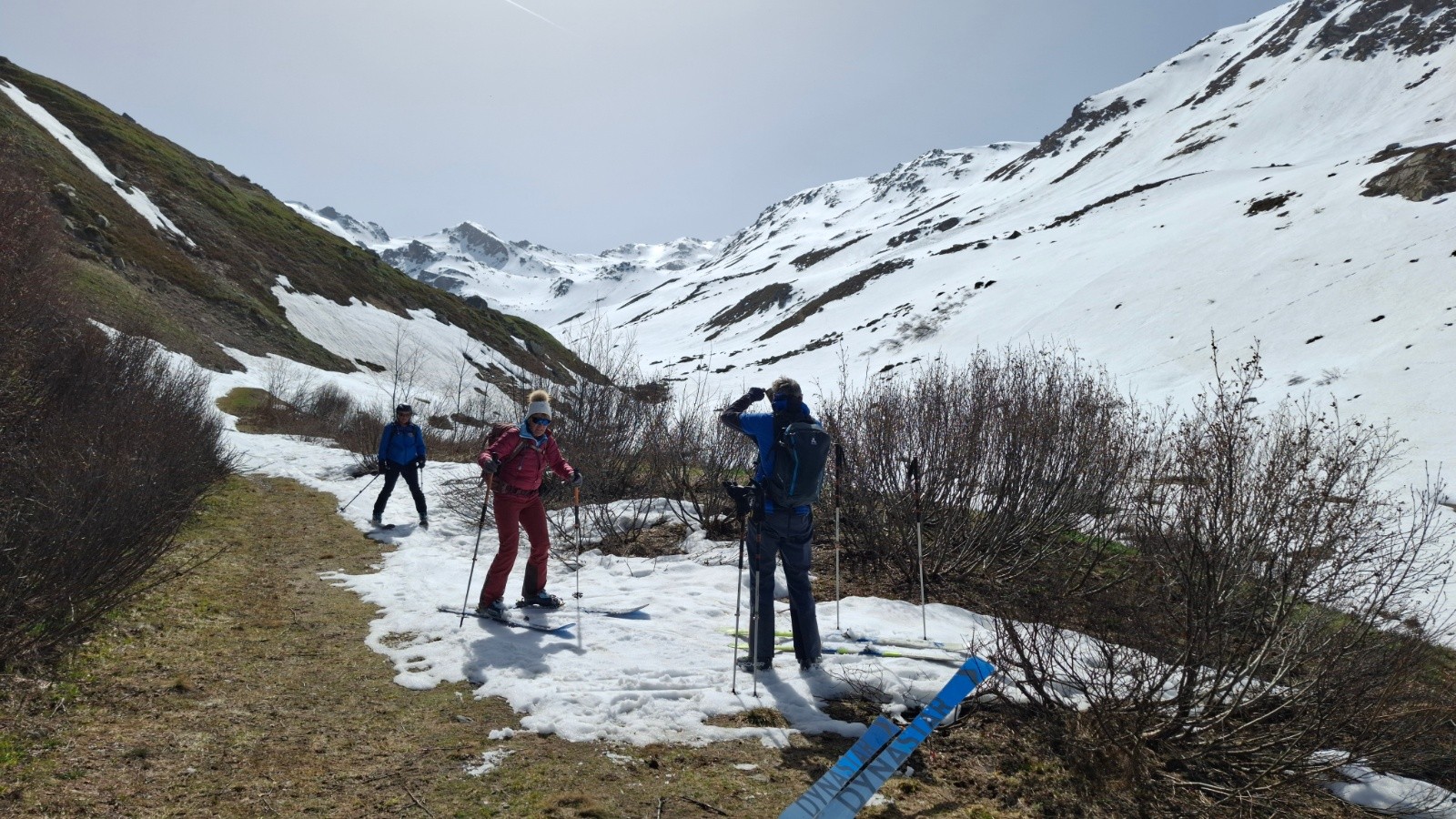 Altitude de chaussage/déchaussage : sur la piste juste derrière les immeubles, 1870m, un court déchaussage pour entrer dans le vallon vers 2050m, 400m linéaire, 40m d+, et un autre de qq pas pour franchir le ruisseau du col des marches (ça passait encore bien il y a 2 jours)