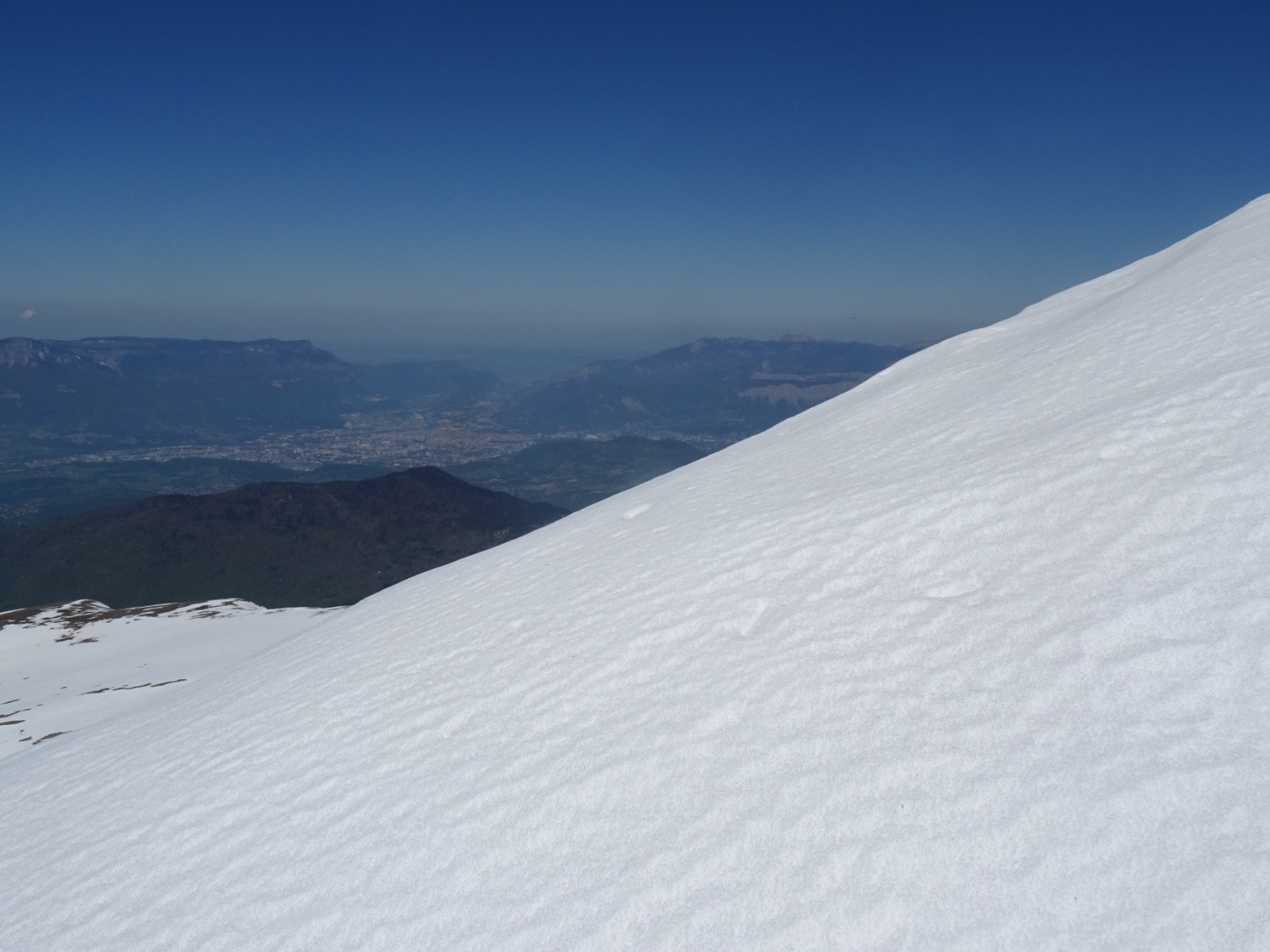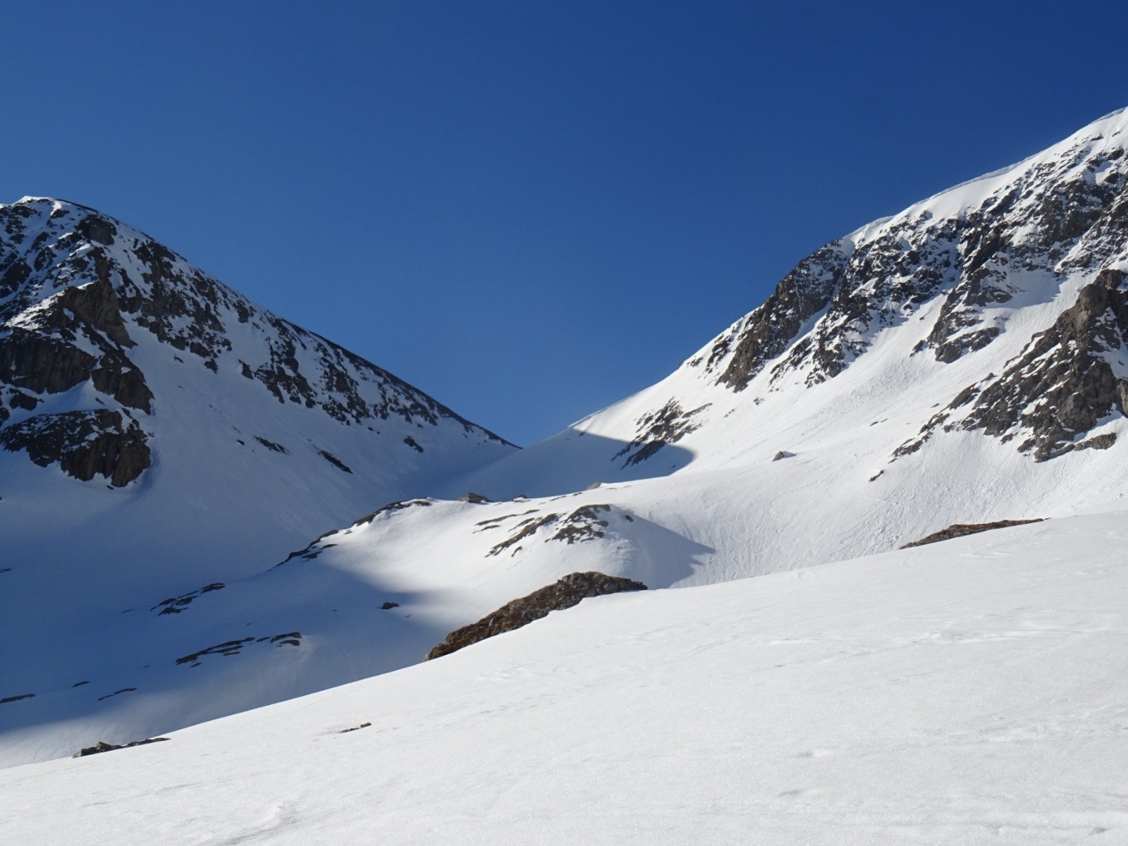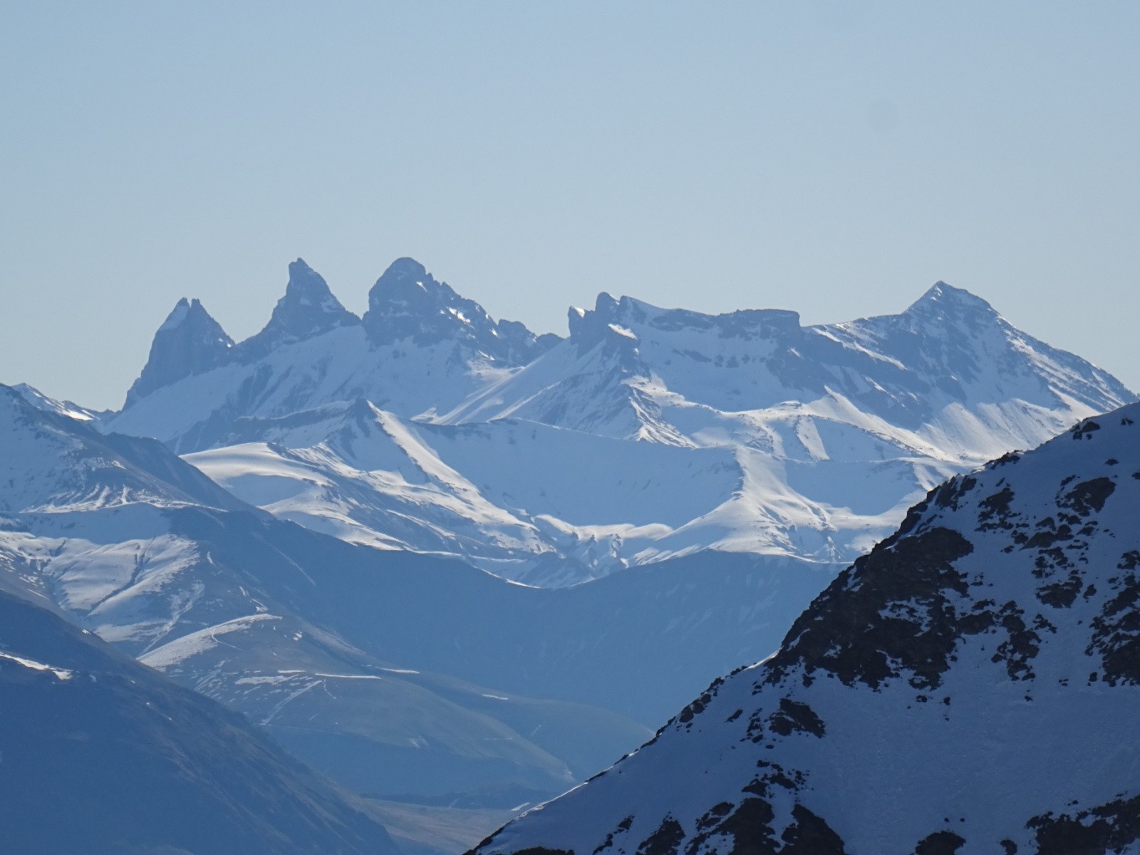 SDX est un loustic exigeant : il lui faut toujours un couloir, pas de répétition récente, de la bonne neige - et là il fallait rester à proximité, sans trop de portage... plus pénible qu'une Greloute moyenne ou un Pédro dans ses bons jours ;-). Bon, allez, après plusieurs options refusées par SDX, on opte pour un retour vers le Taillefer : le cahier des charges fut rempli, il n'a pas râlé !