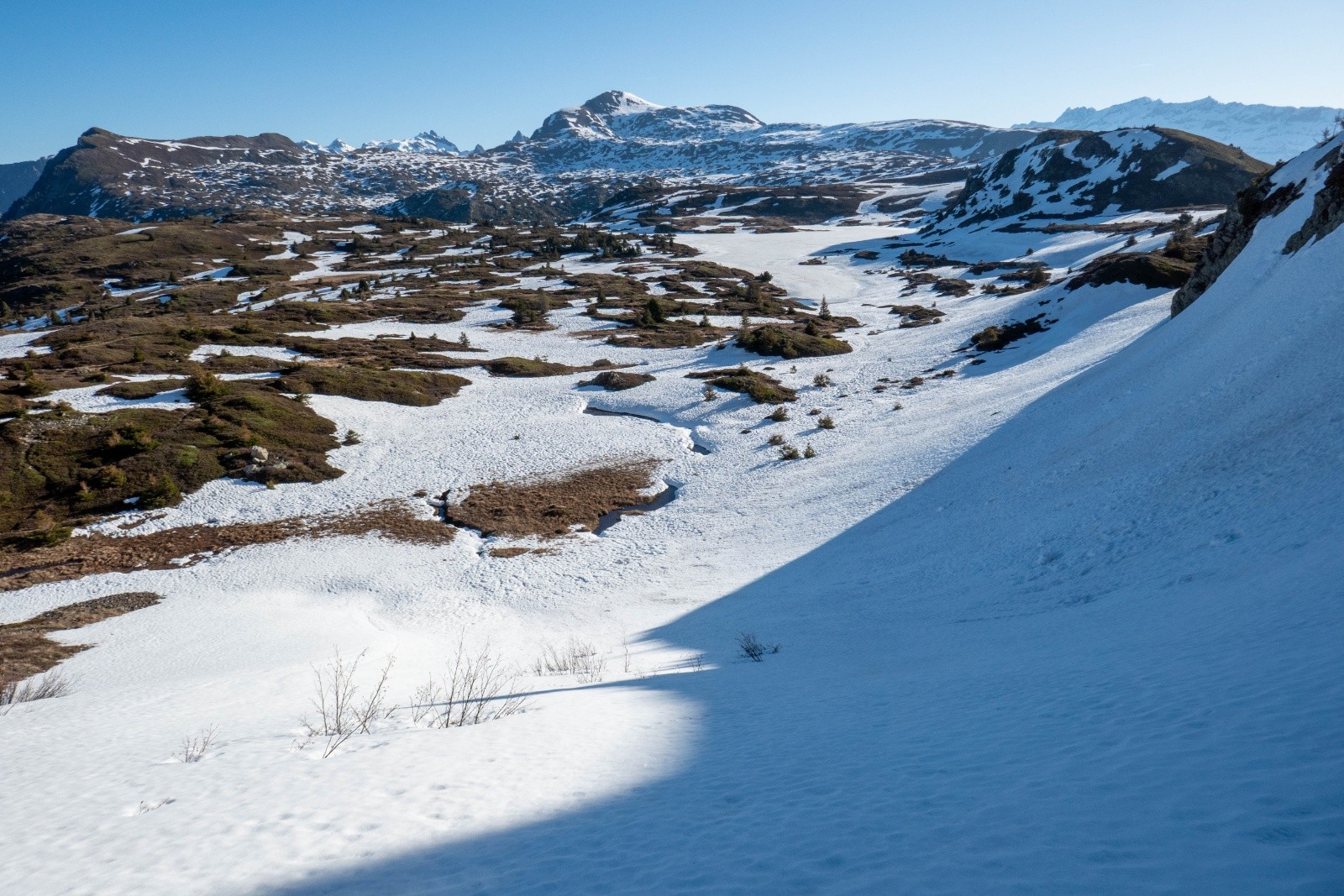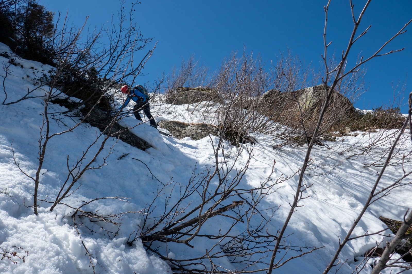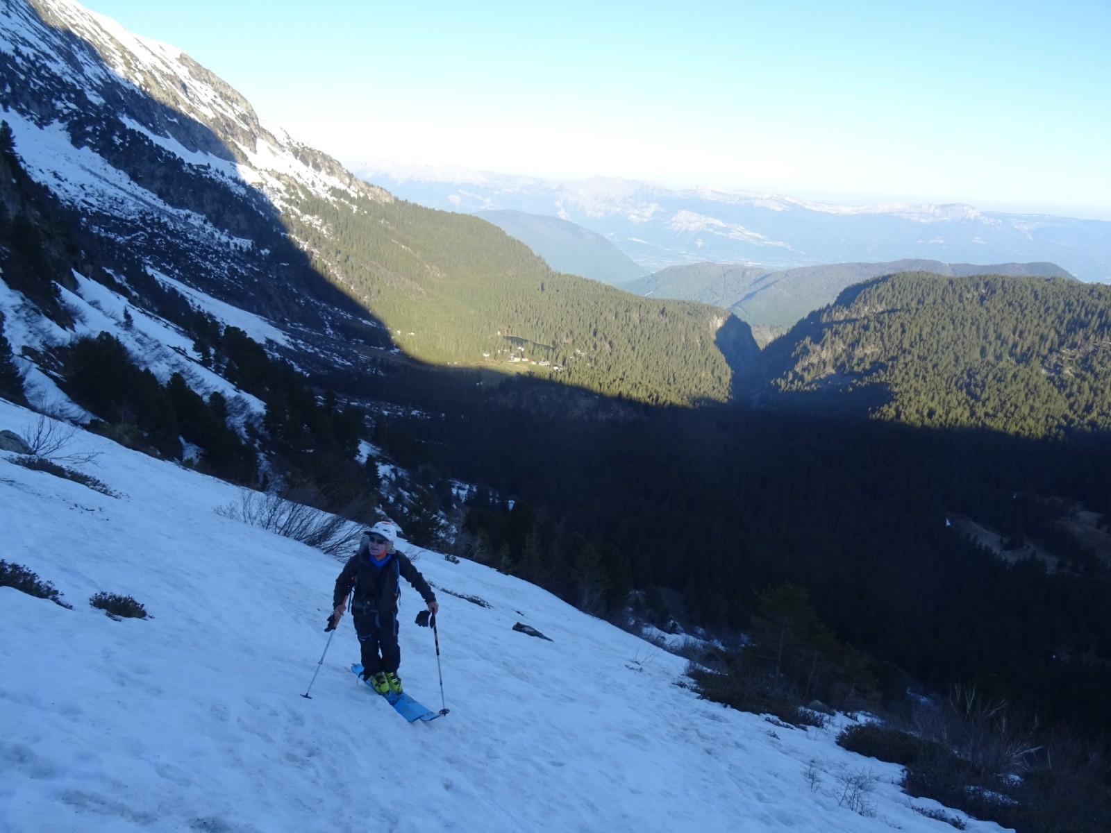 En phase avec Loic67 sur la sortie basse du couloir Nord sous le lac Courbe pour rejoindre l'axe du couloir parallèle : entre "sanglier et "accrobranche", ludique si on aime 'gueniller' un peu dans les vernes ;-), pour finir dans les boulettes molles de l'avalanches (les passages à ski commencent à dessiner un 'border-cross' convenable).