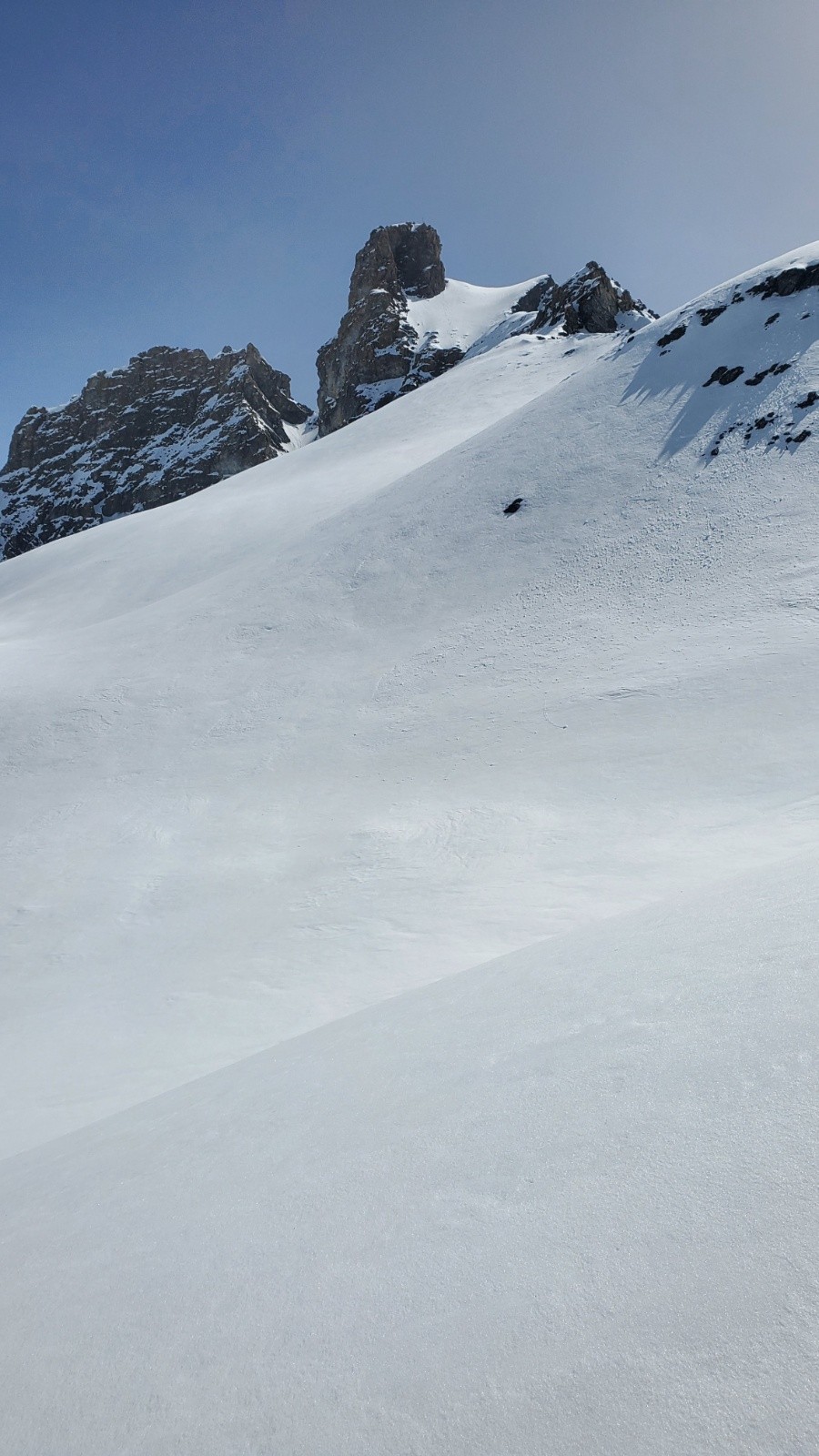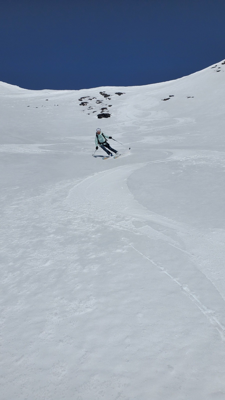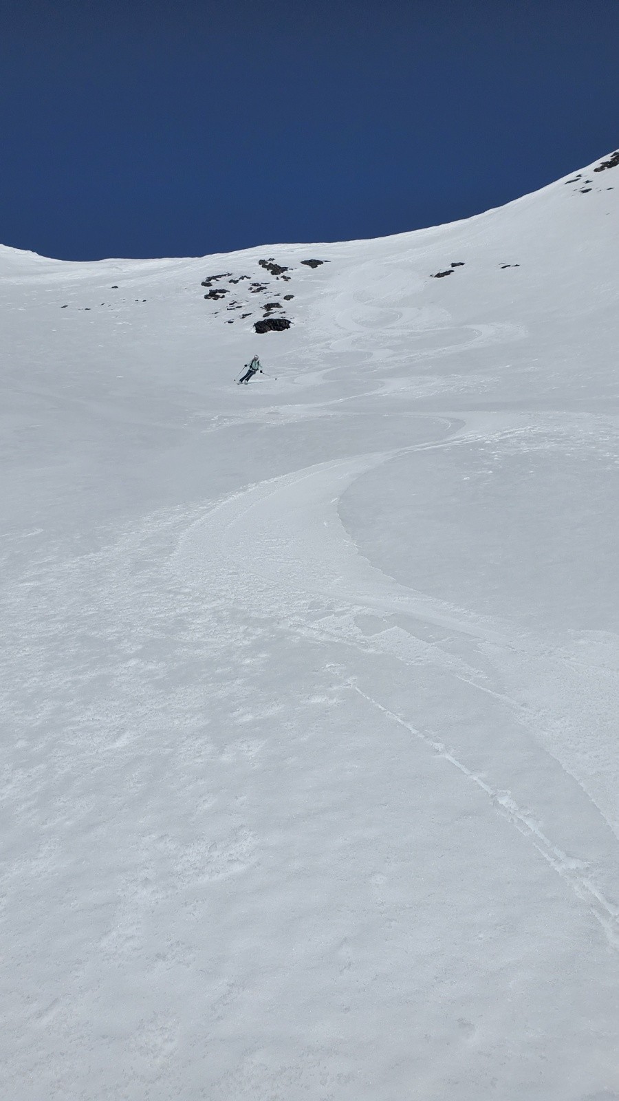Conditions nivo et activité avalancheuse : bon regel et le manteau est bien tassé sur les faces ensoleillées. On pensait être un peu tard au plan des Cavales (un peu avant 11h) mais non c'est là que la moquette était la meilleure (6* évidemment !!)...