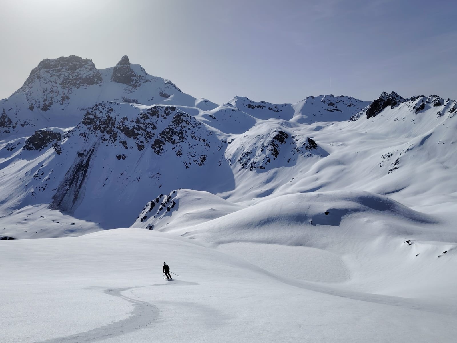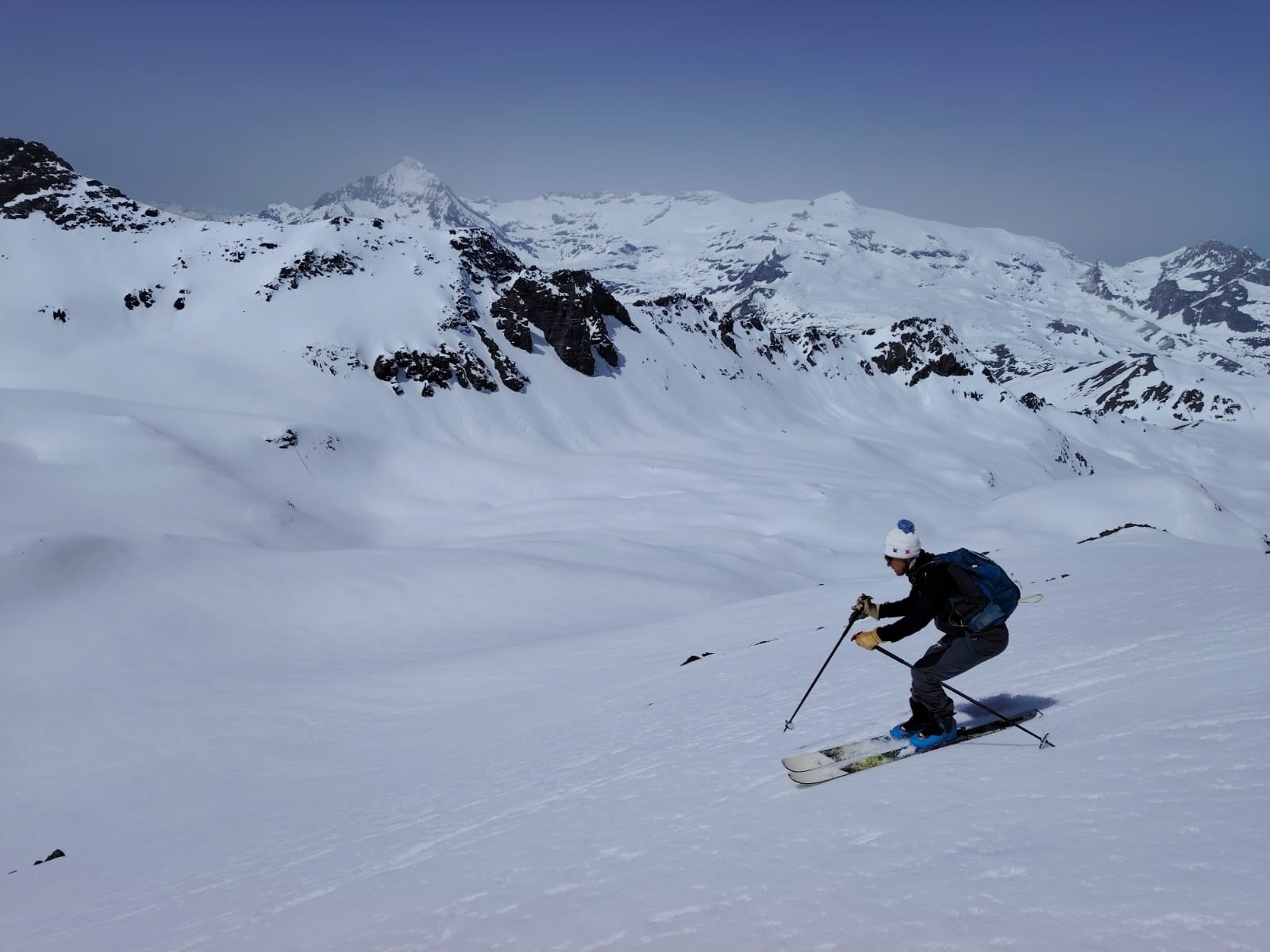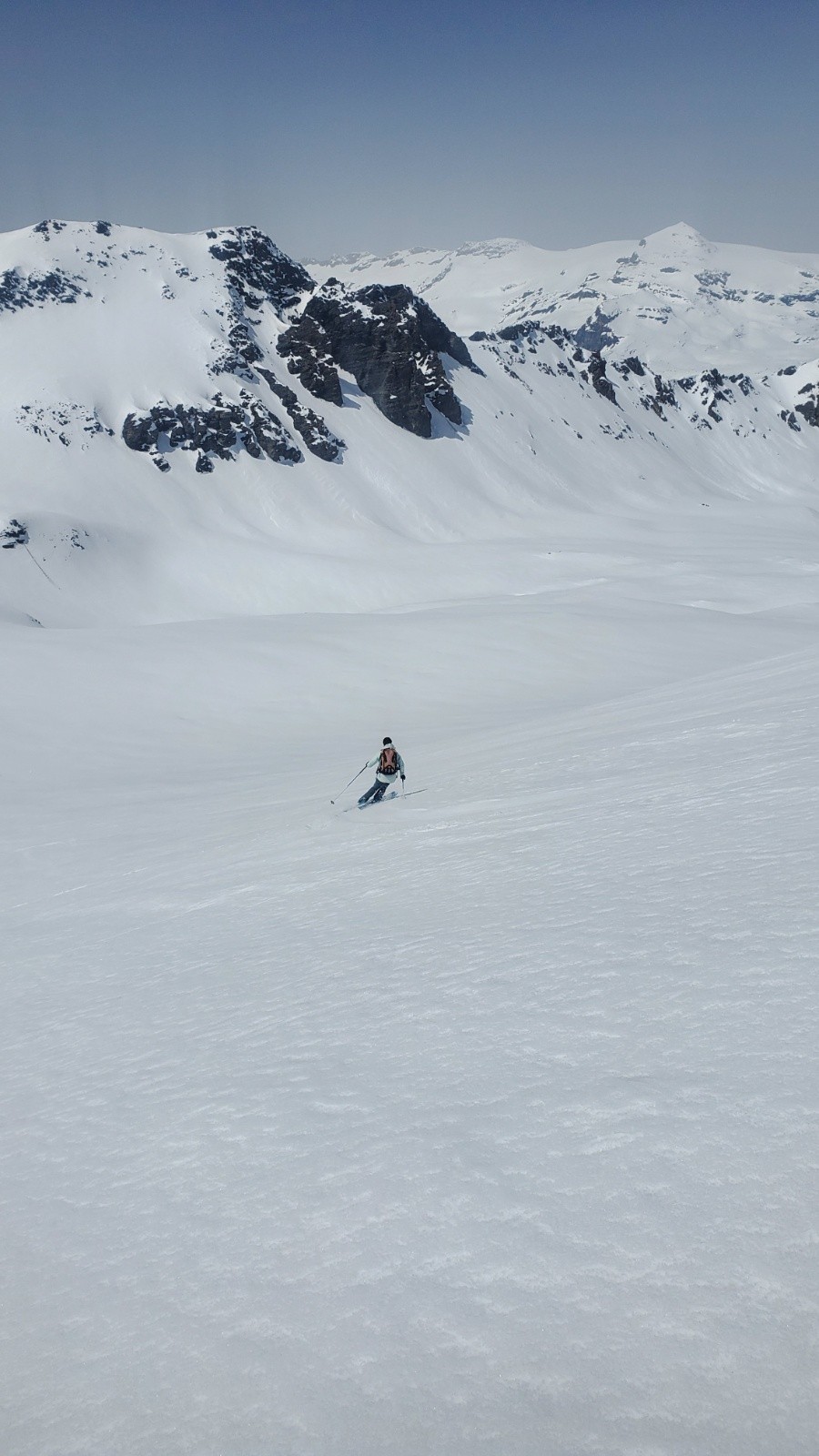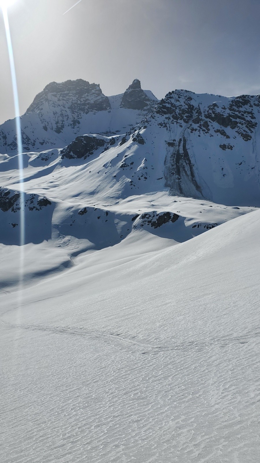 Conditions nivo et activité avalancheuse : bon regel et le manteau est bien tassé sur les faces ensoleillées. On pensait être un peu tard au plan des Cavales (un peu avant 11h) mais non c'est là que la moquette était la meilleure (6* évidemment !!)...
