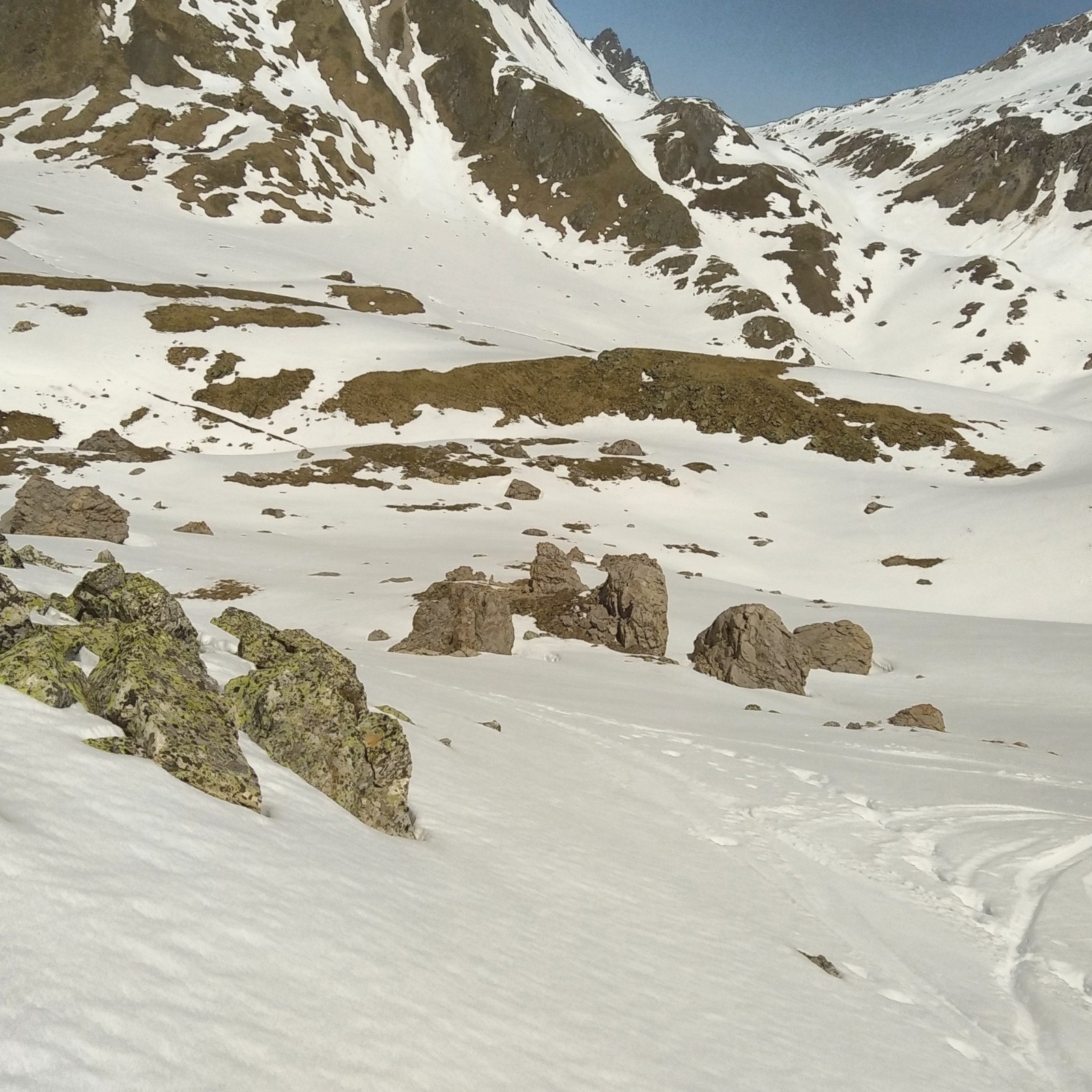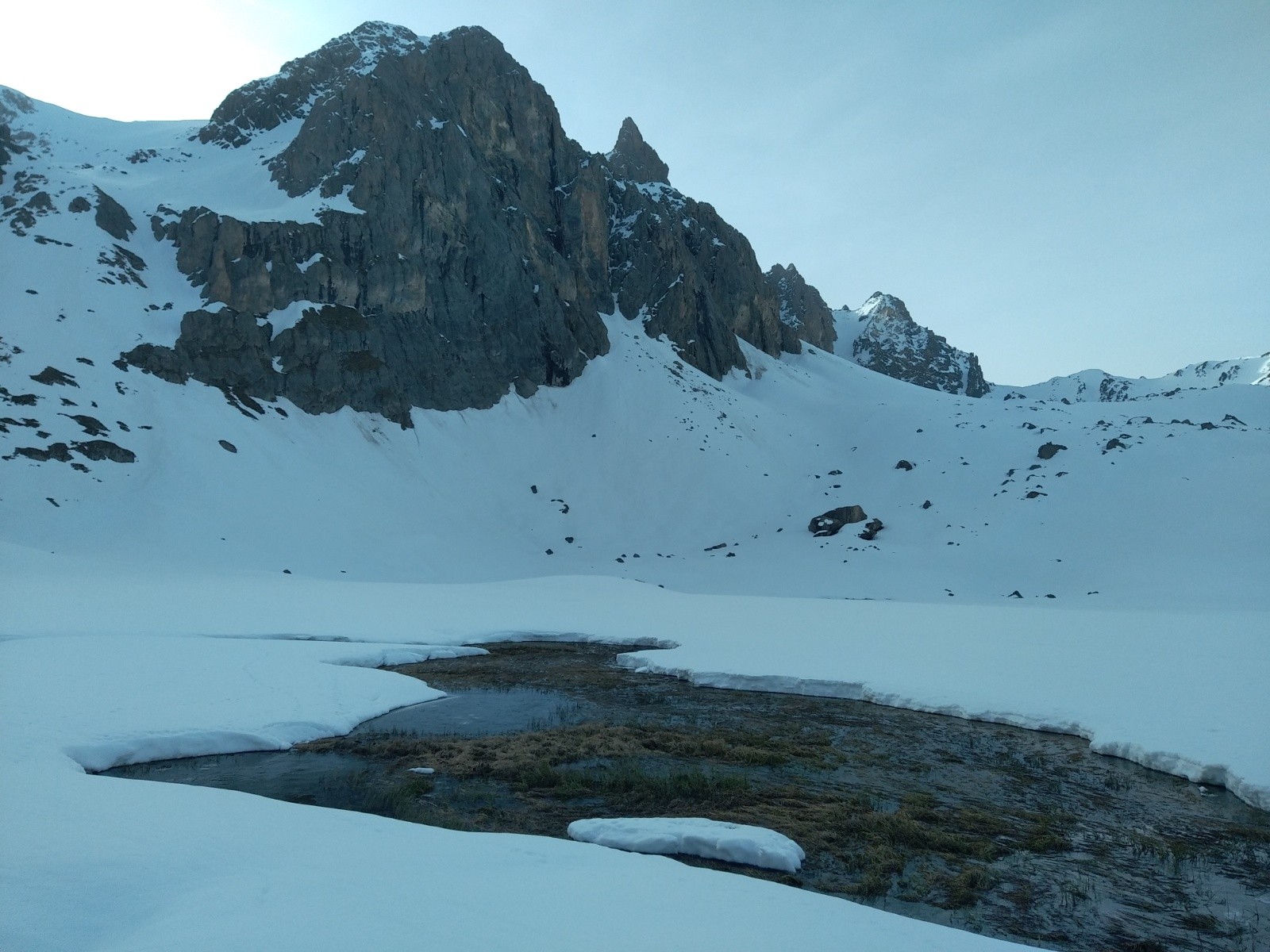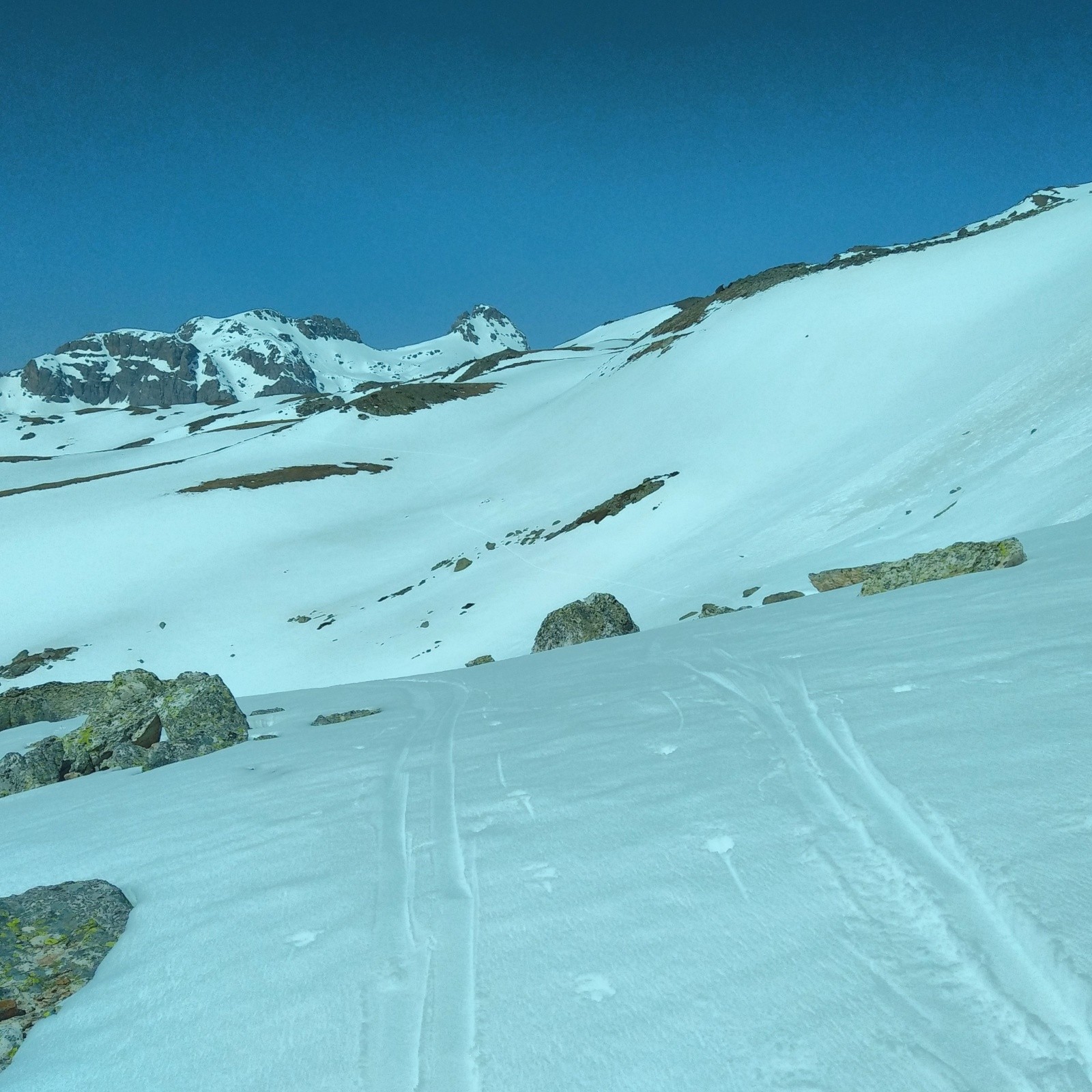 Conditions pour le ski : excellente en face sud le matin, juste décaillée vers 10h30, moquette à poil raz..bonne sous les crêtes de la ponsonniere , correcte en bas.