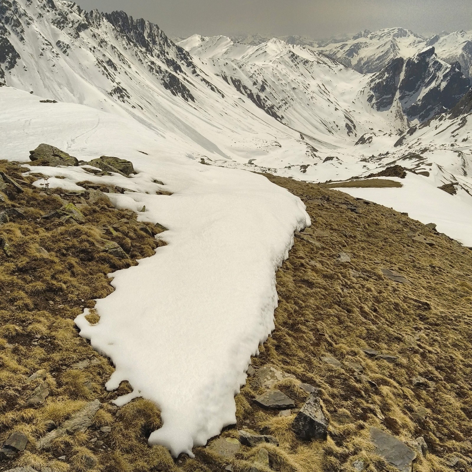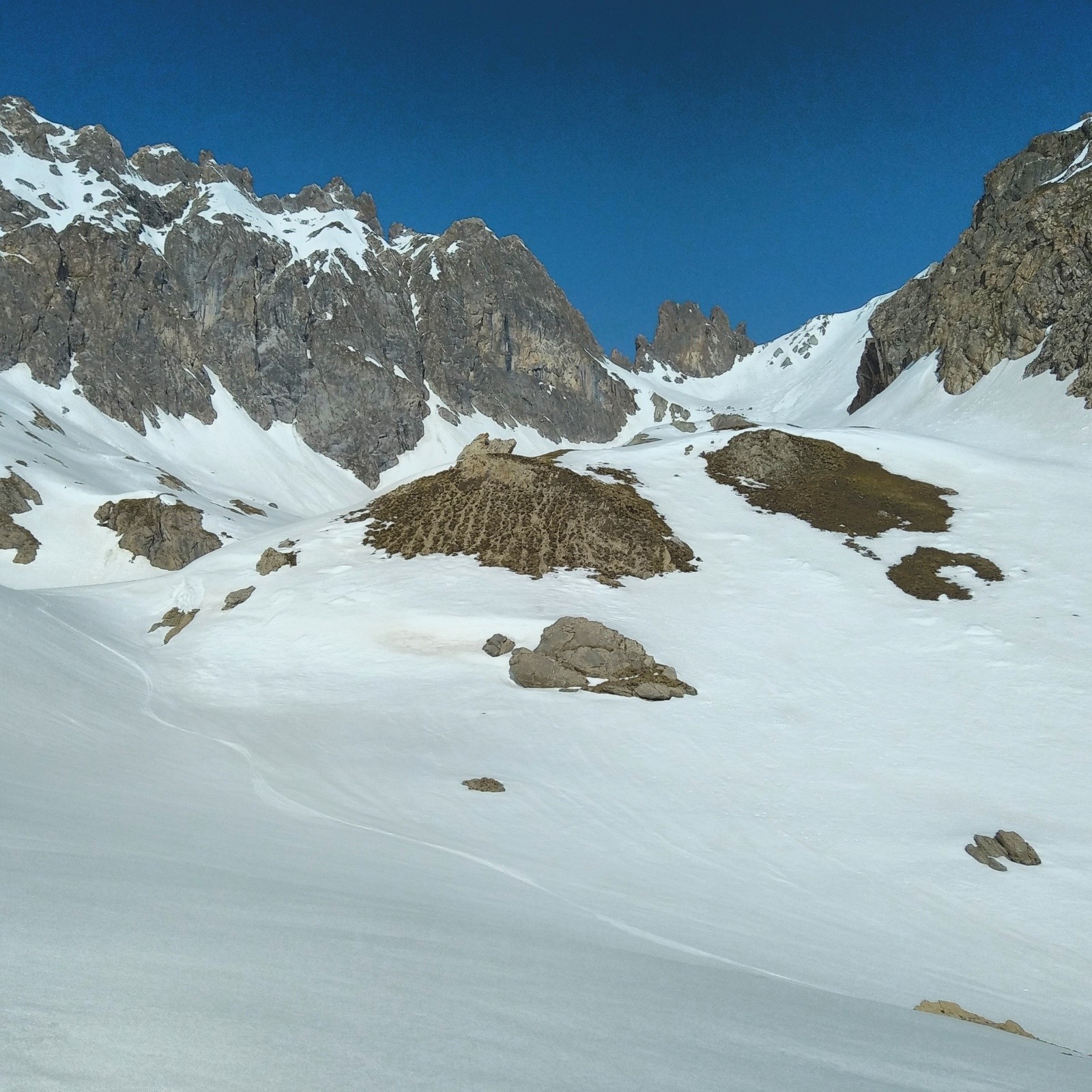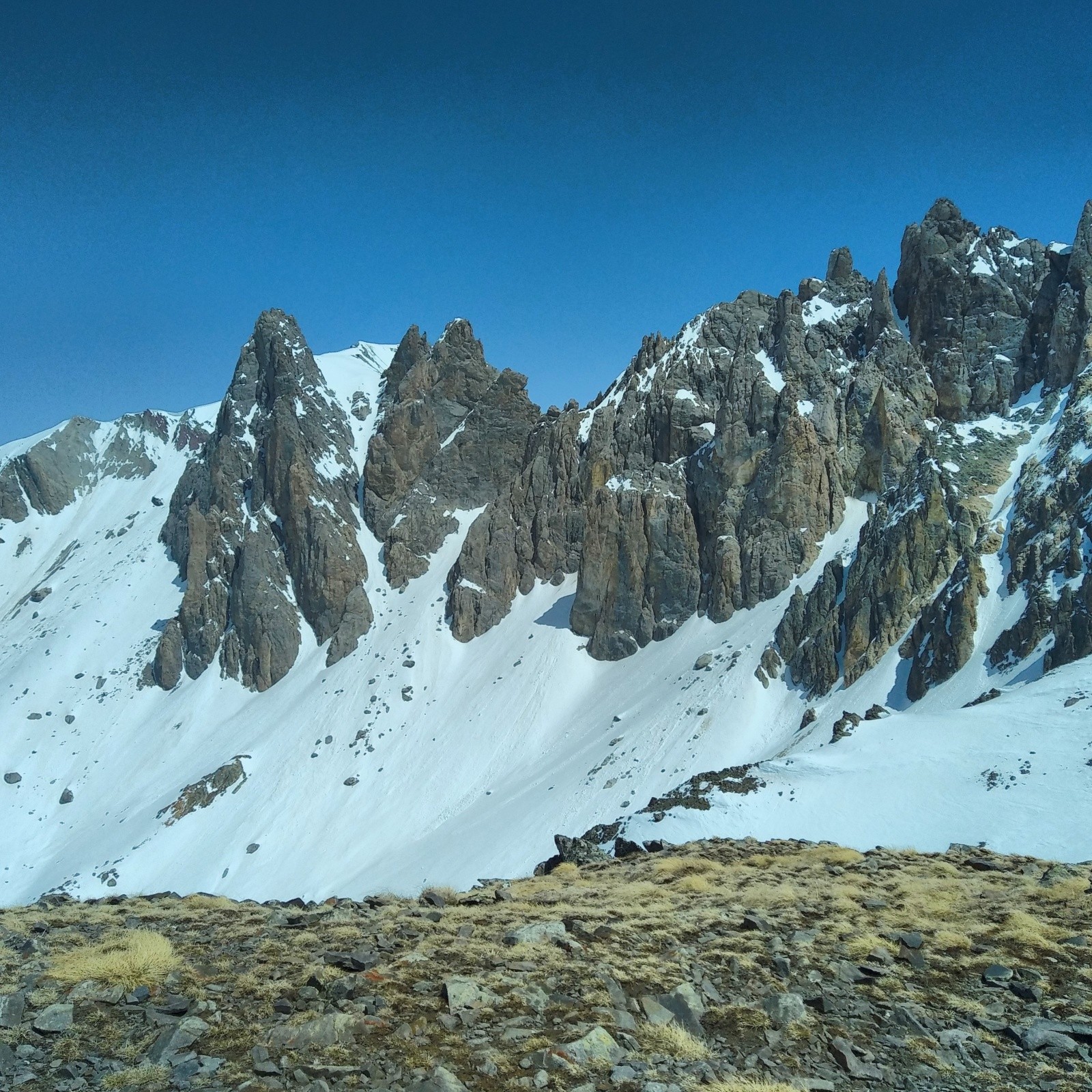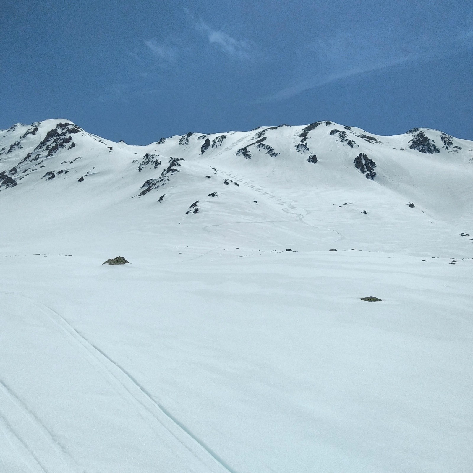 Mouliniere à partir du Col des Beraudes..et descendre le couloir Nord de la mouliniere...mais ce couloir est ravagé par les coulées et les pierres et la partie sud a une énorme corniche qui surplombe le couloir...pas de regret.