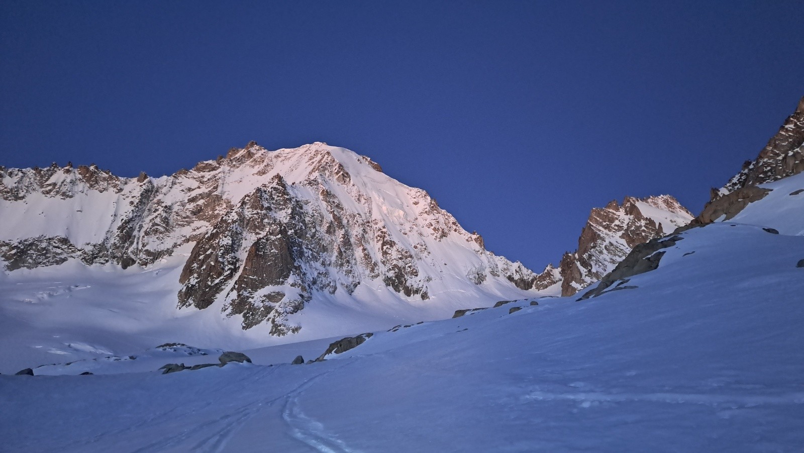Conditions pour le ski : Face Nord skiable mais pas top condis, encore beaucoup de glace noire sur Le haut et de rochers dans le milieu. Barbey encore bien rempli mais chauffe très vite.