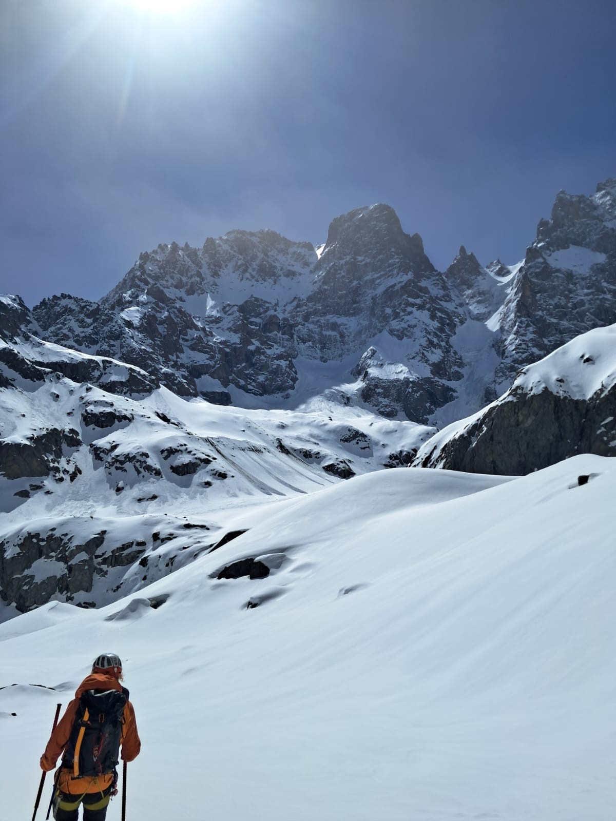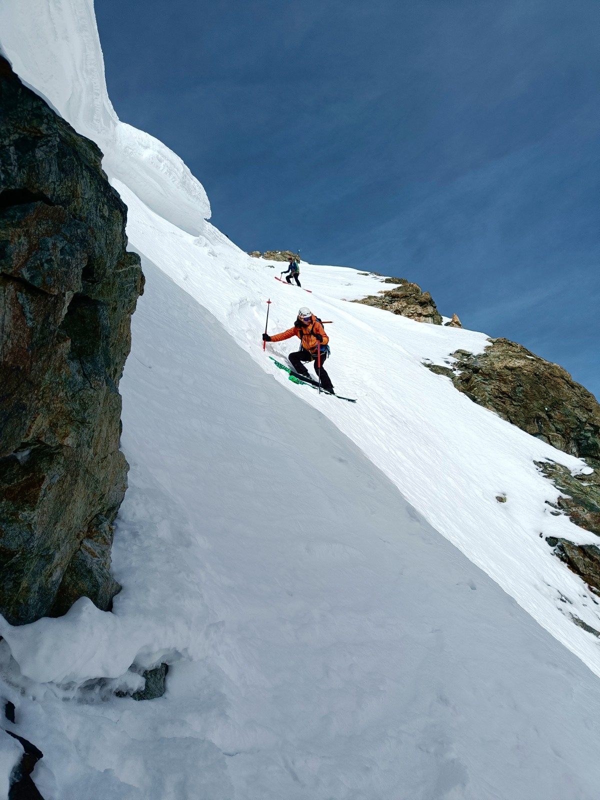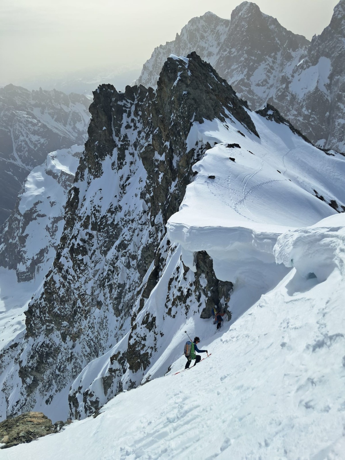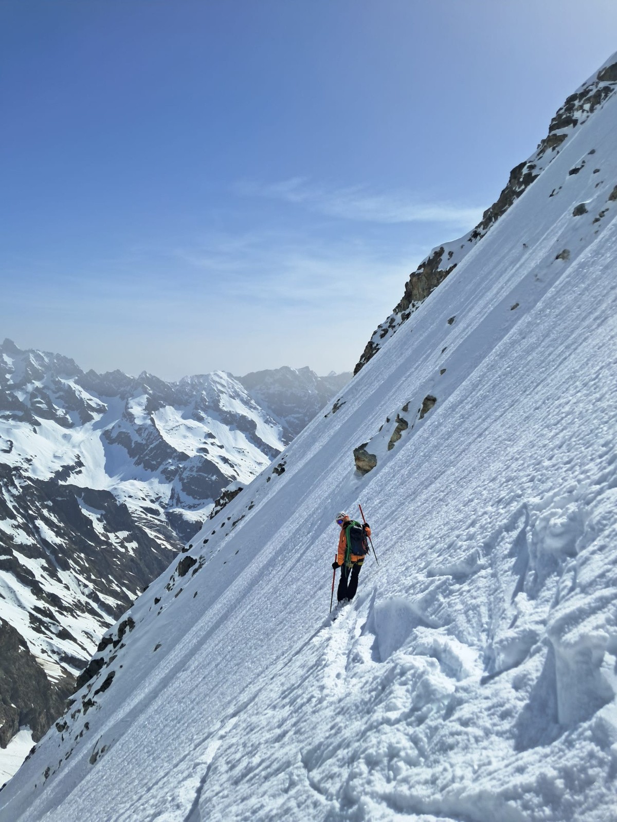 Quelle sortie! L'itinéraire emprunté est complet, avec du raid, de l'exposition, de l'engagement, des manips, mais aussi du kiffe dans de la bonne neige. Pour ma part je suis aussi contente de briser la malédiction de ce printemps 2025 :)