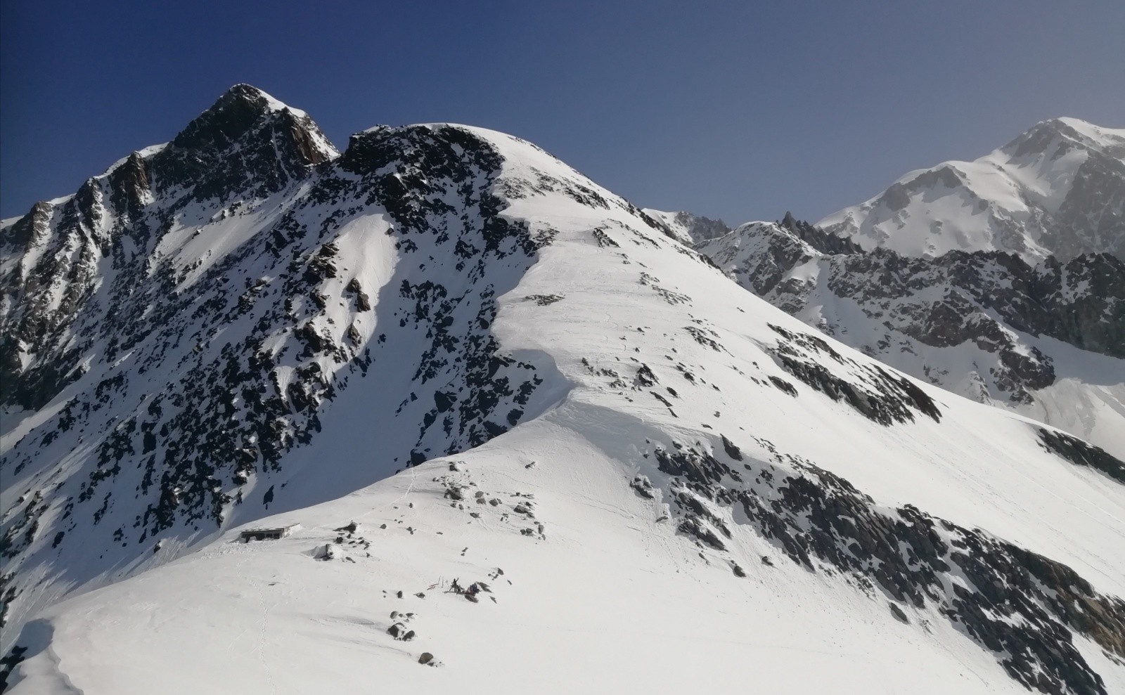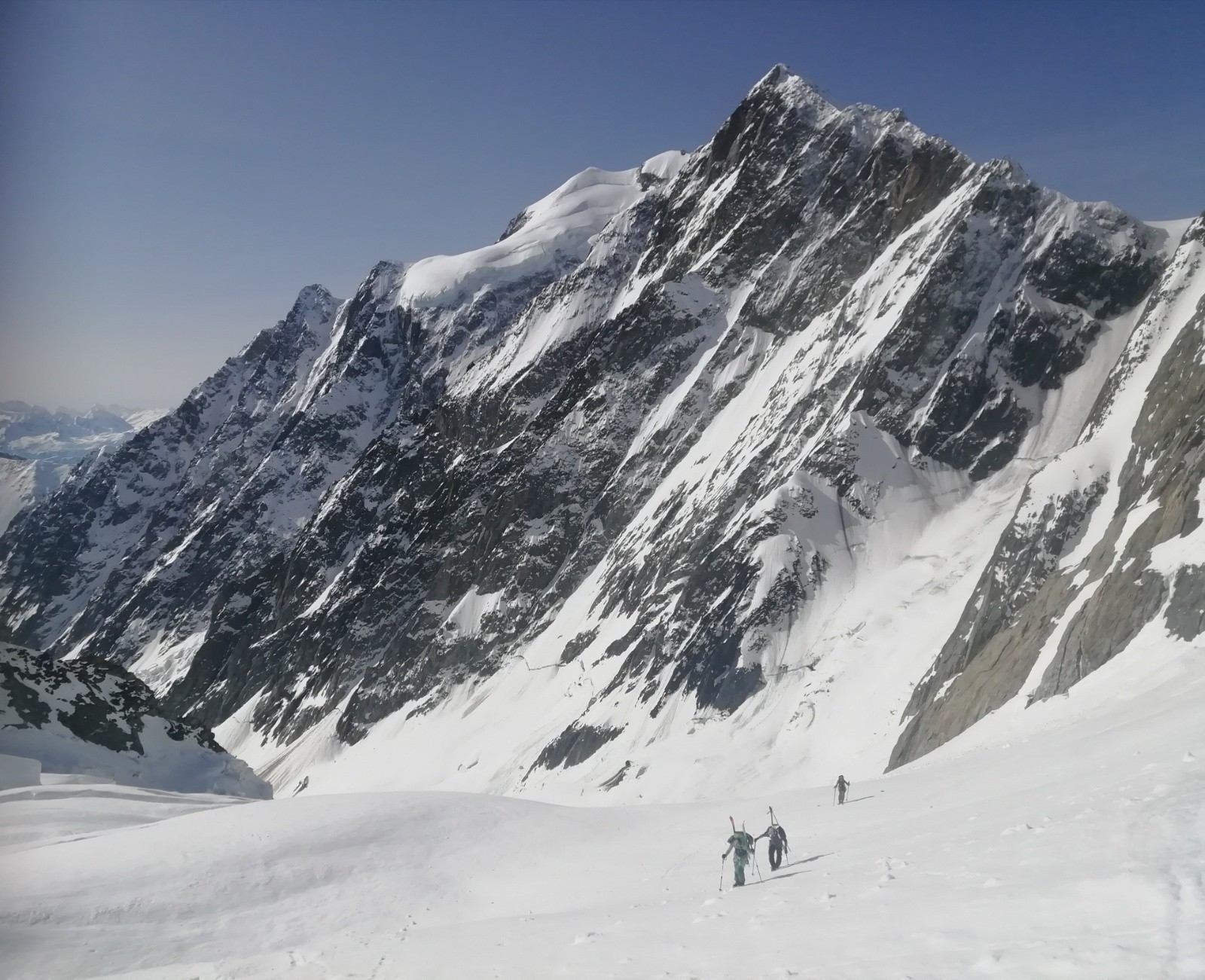 J2 : Conscrits > col infranchissable > haut du glacier de Miage > Durier > couloir W > les Hoches puis stop rapide et efficace jusqu'à Cugnon